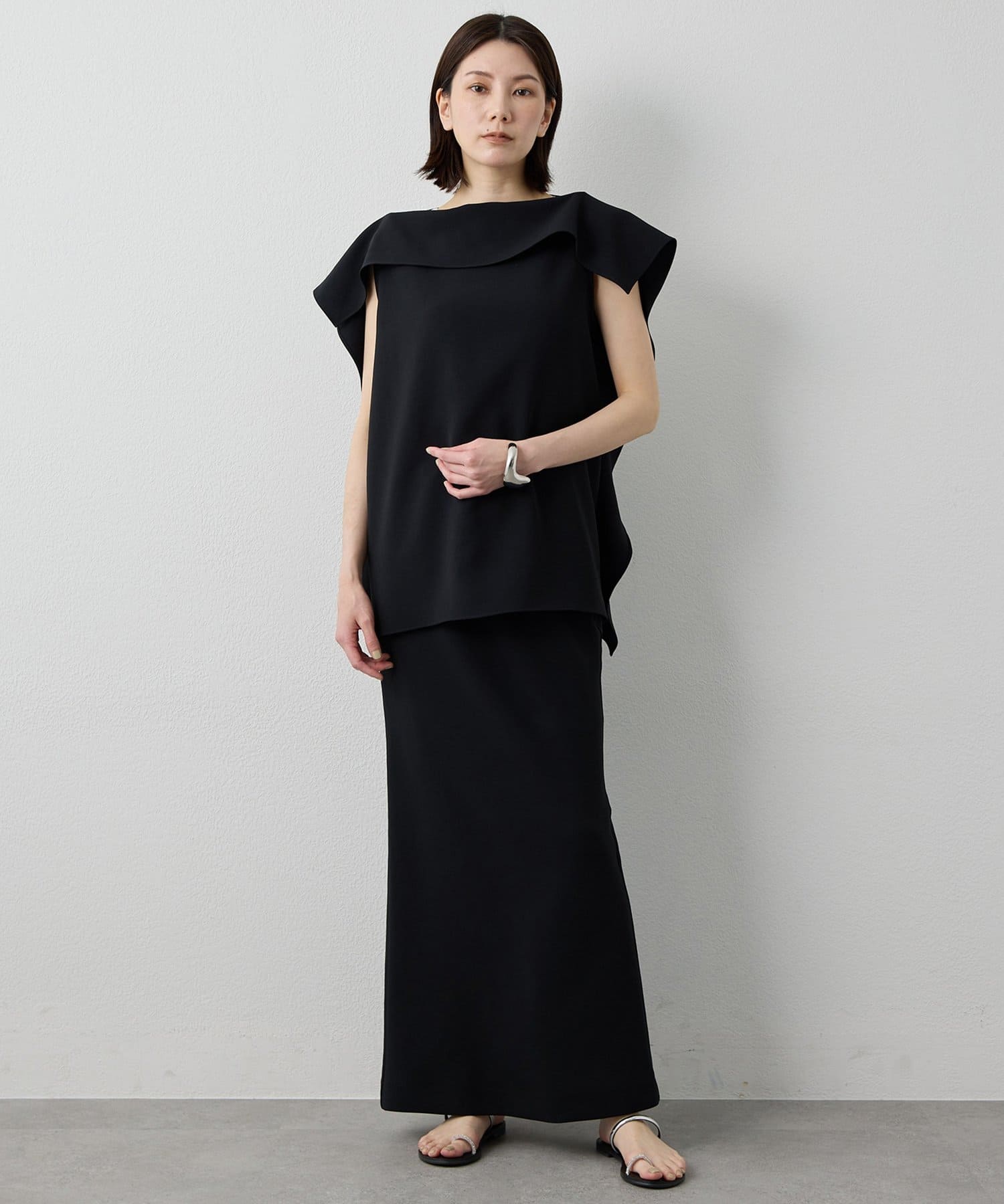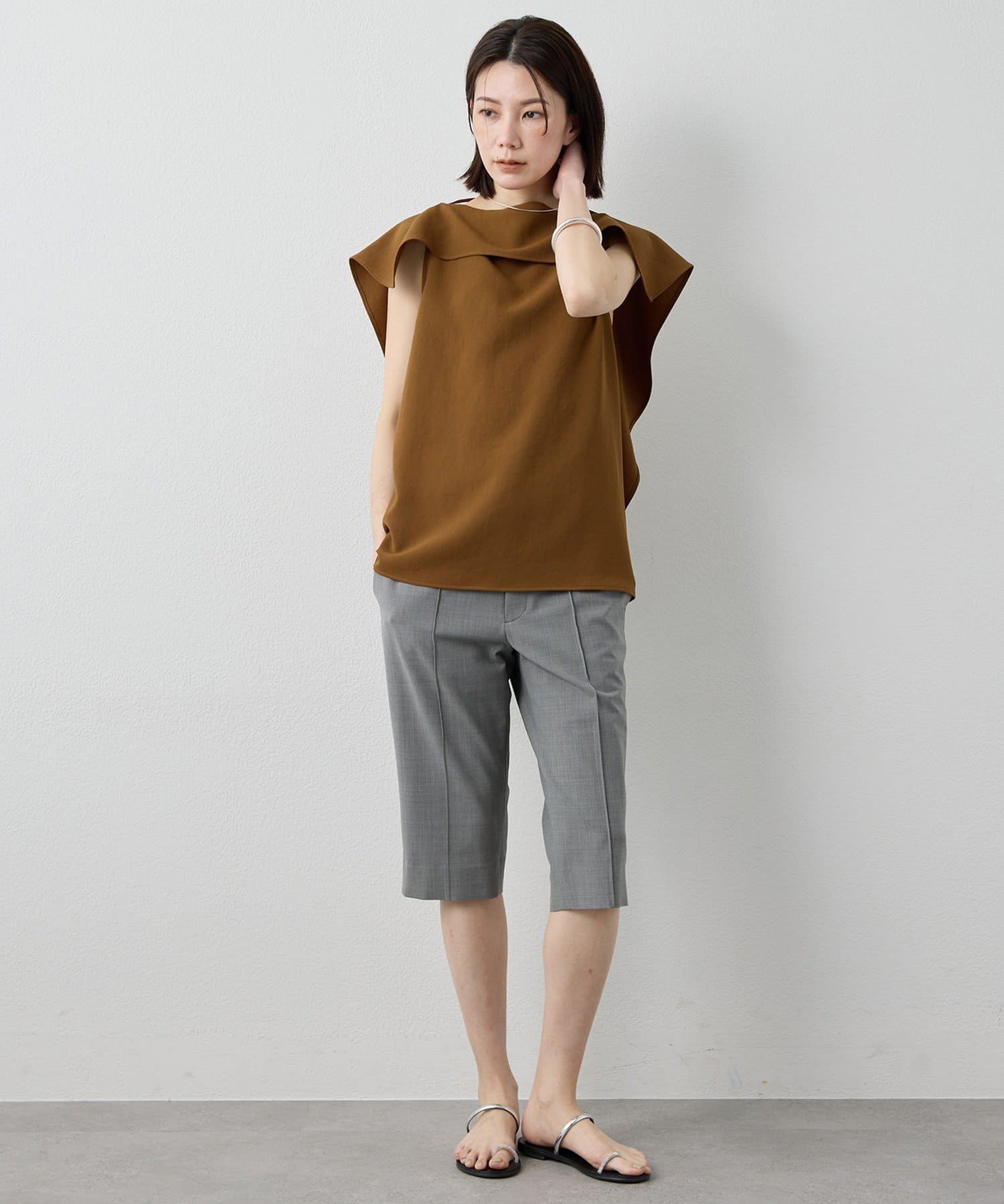 ■潔くベアトップと着るのはもちろん、タンクトップやノースリーブTシャツを中に重ねても◎。
