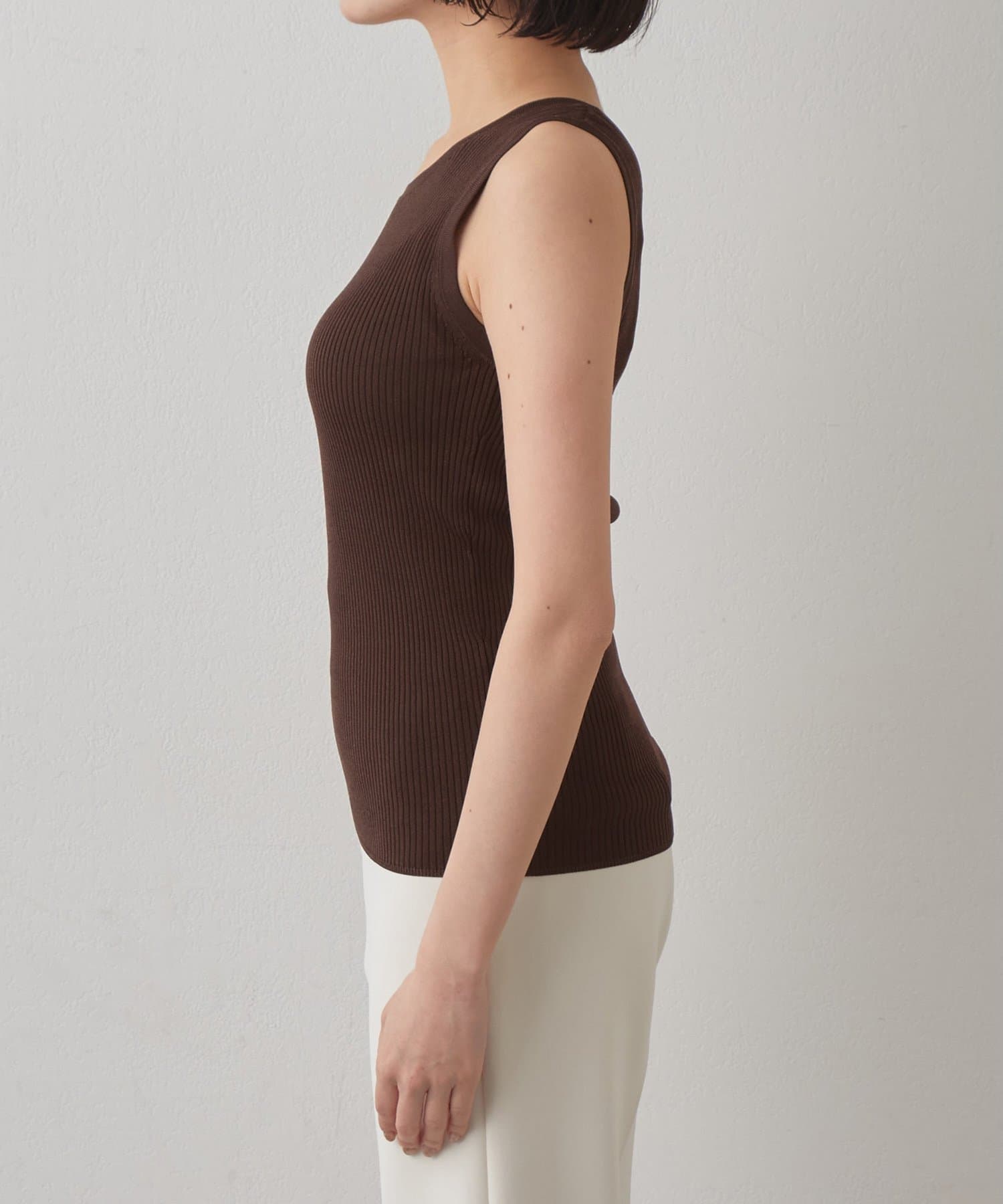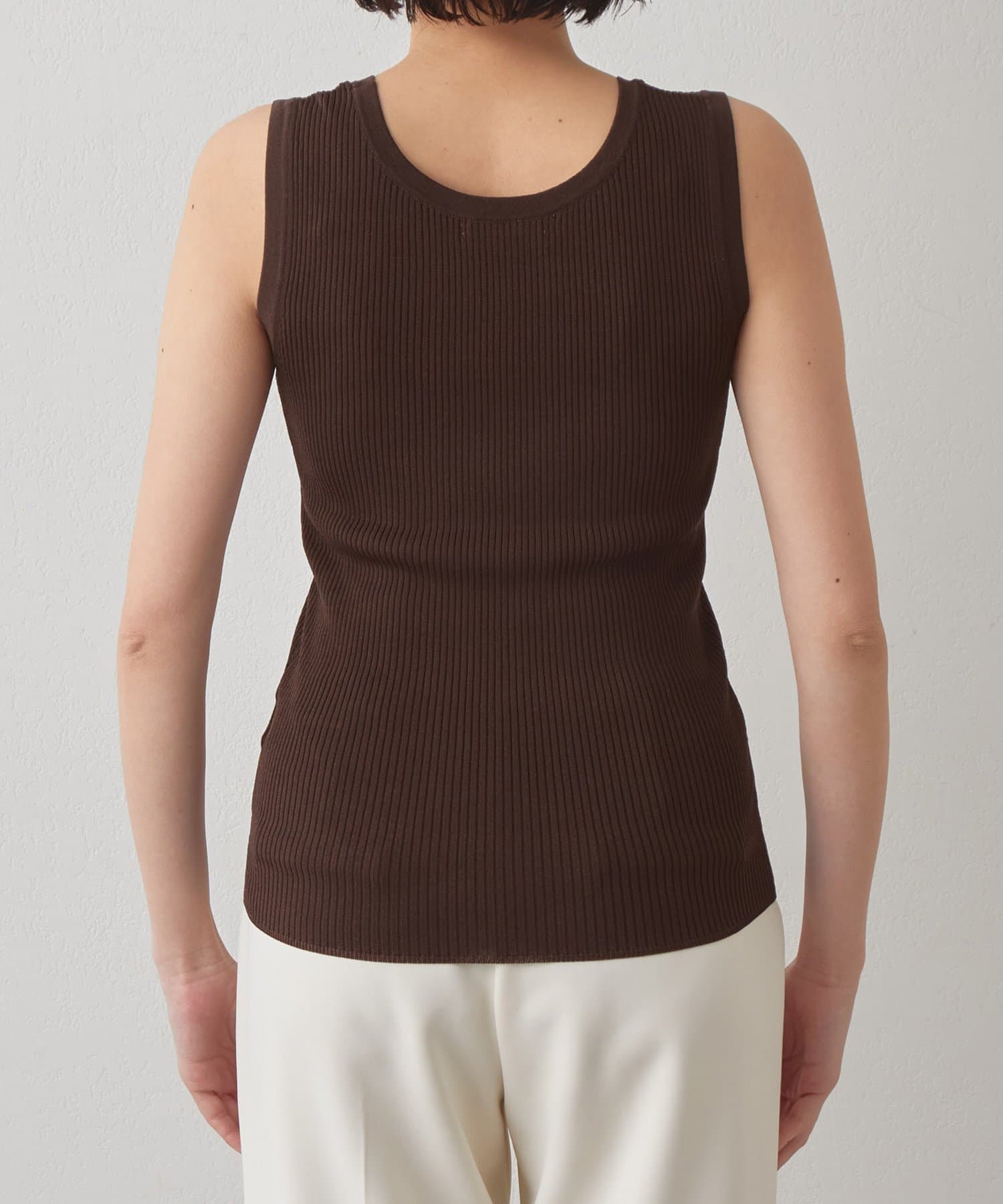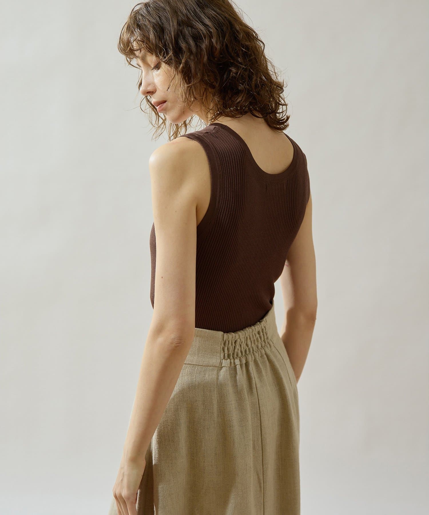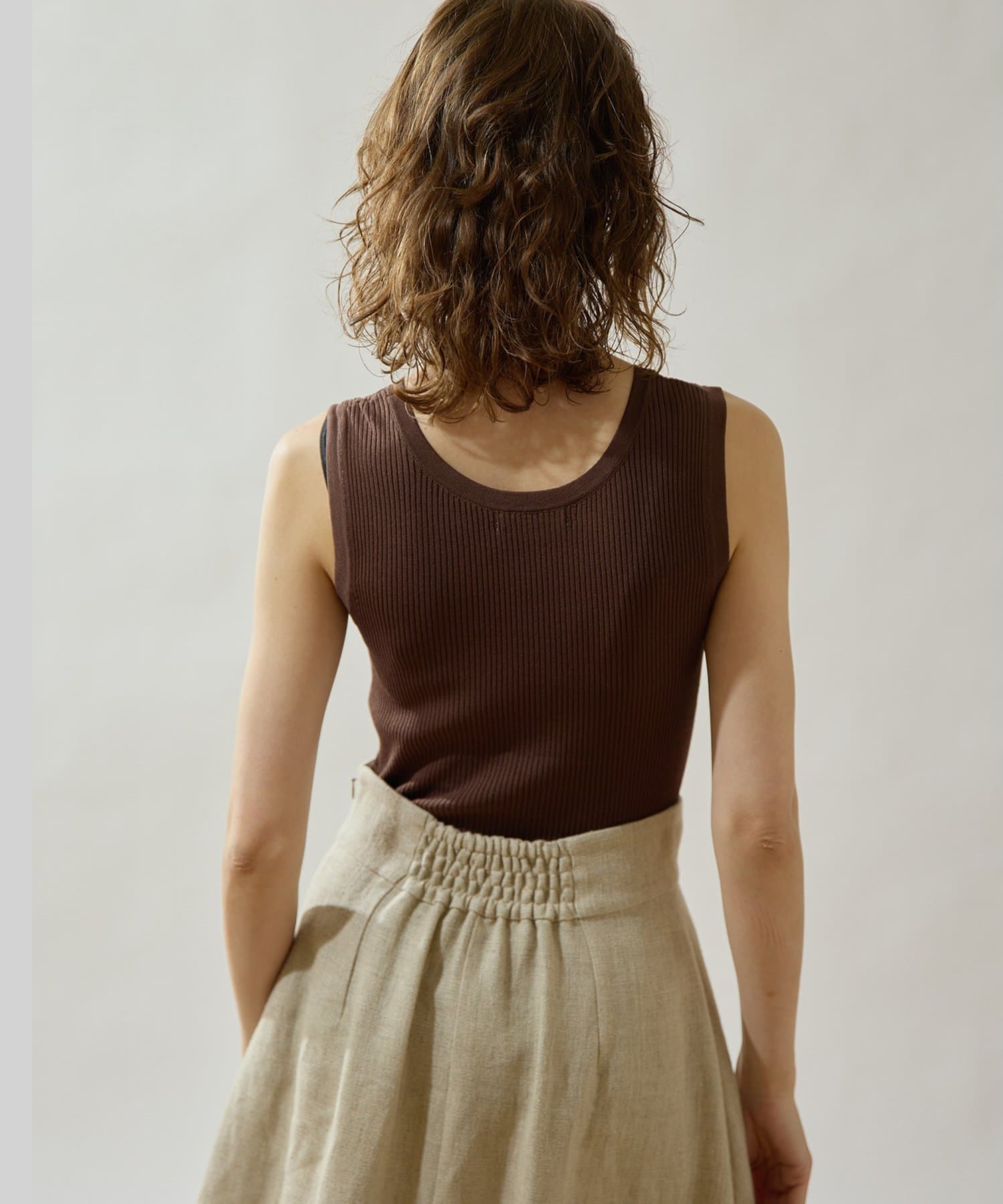 ■ミニマルなデザインのリブニットタンクトップ。