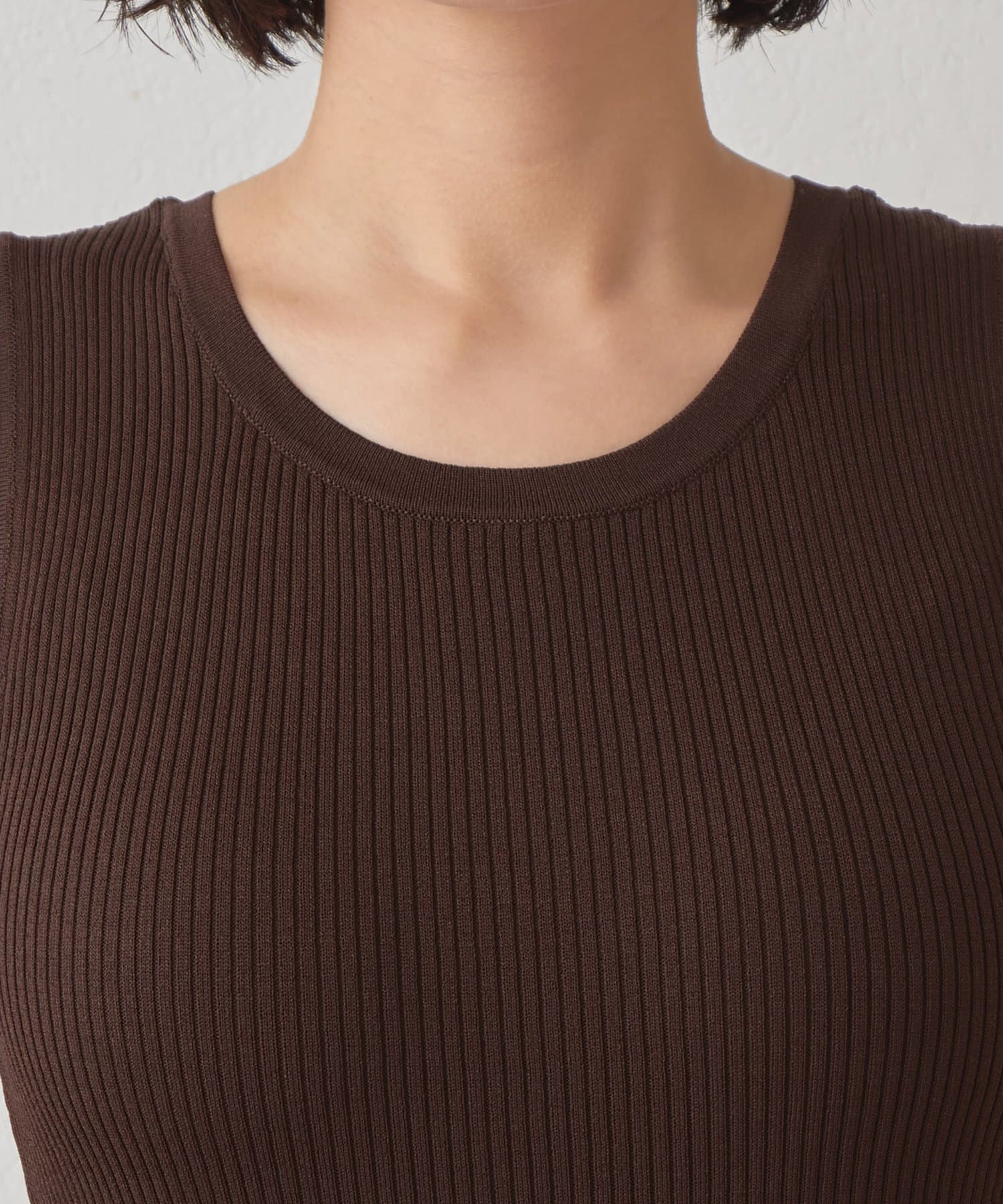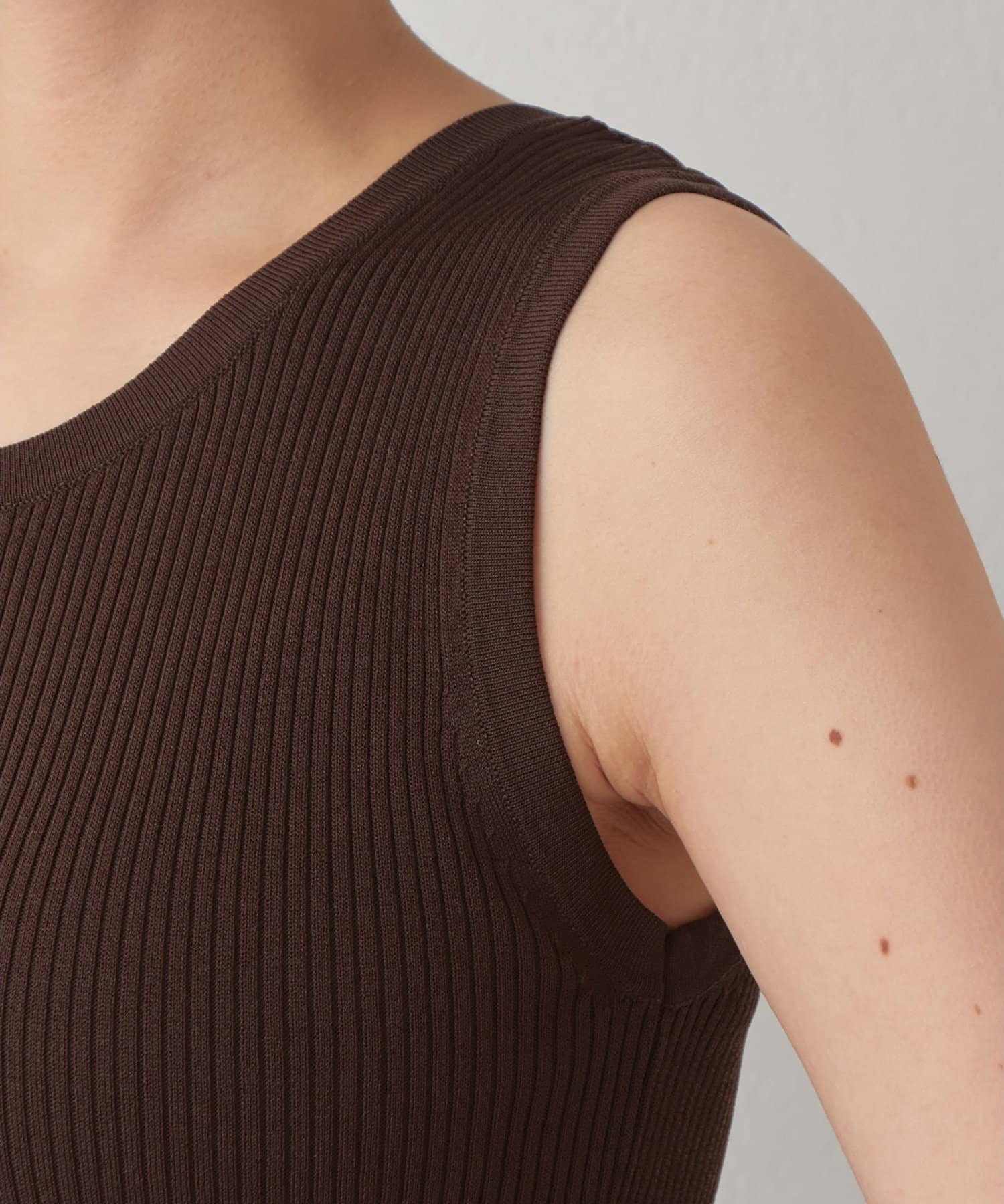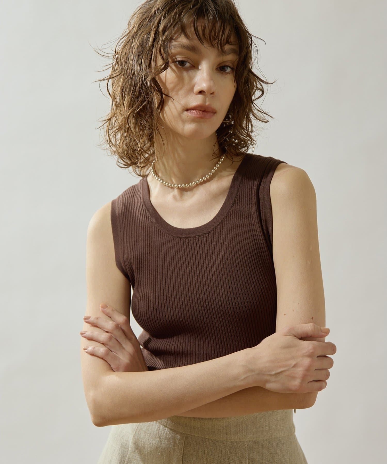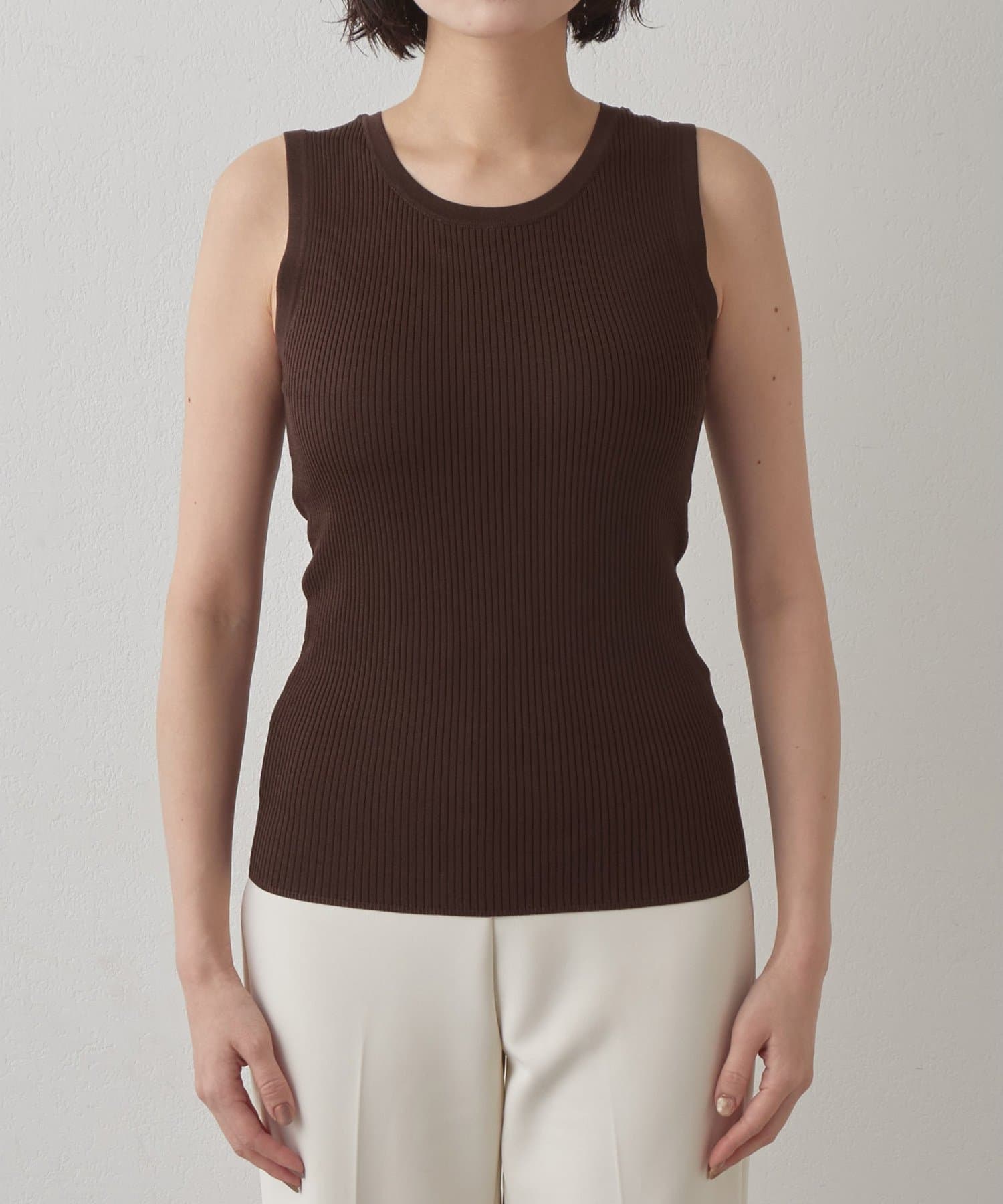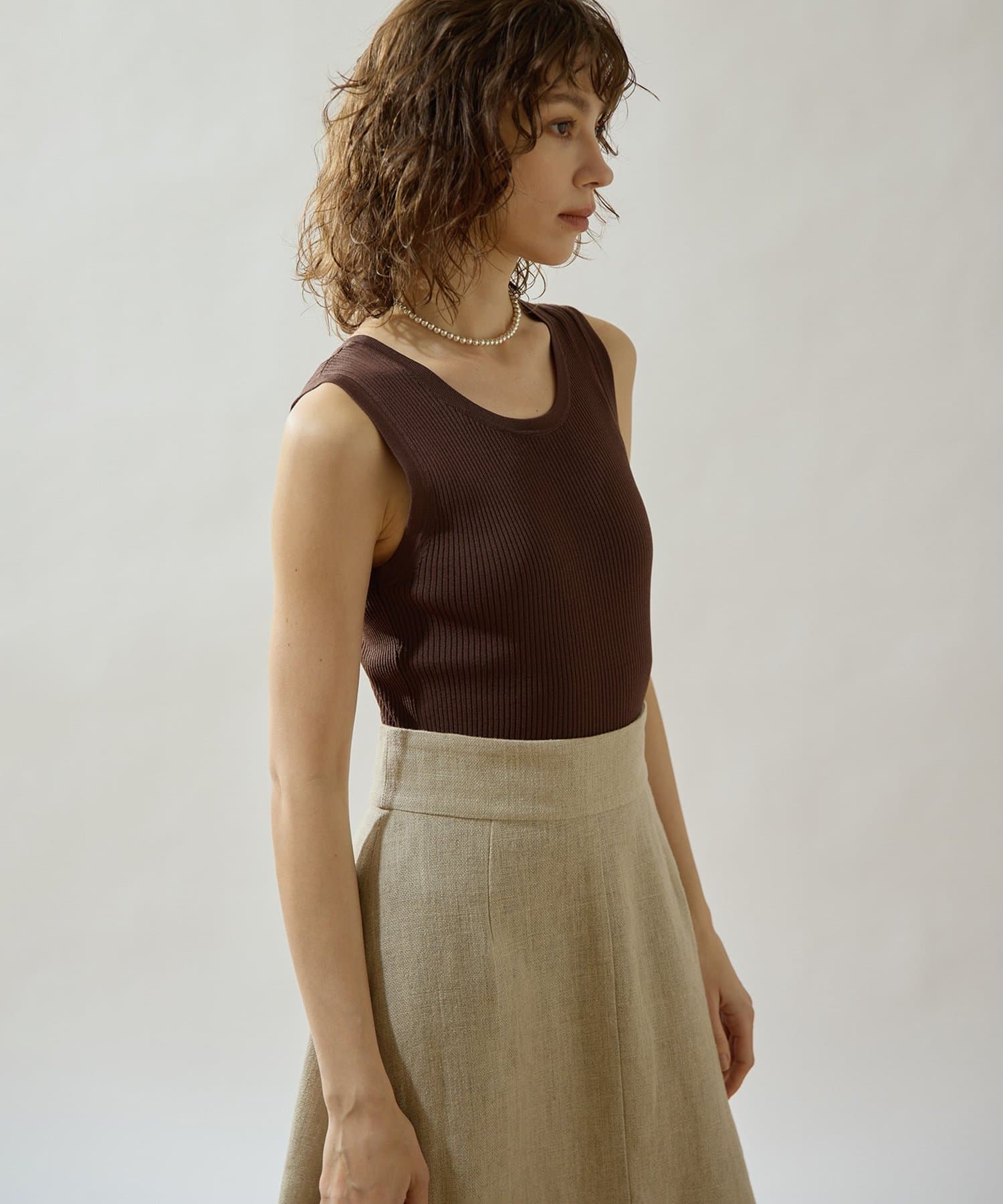 ■ミニマルなデザインのリブニットタンクトップ。