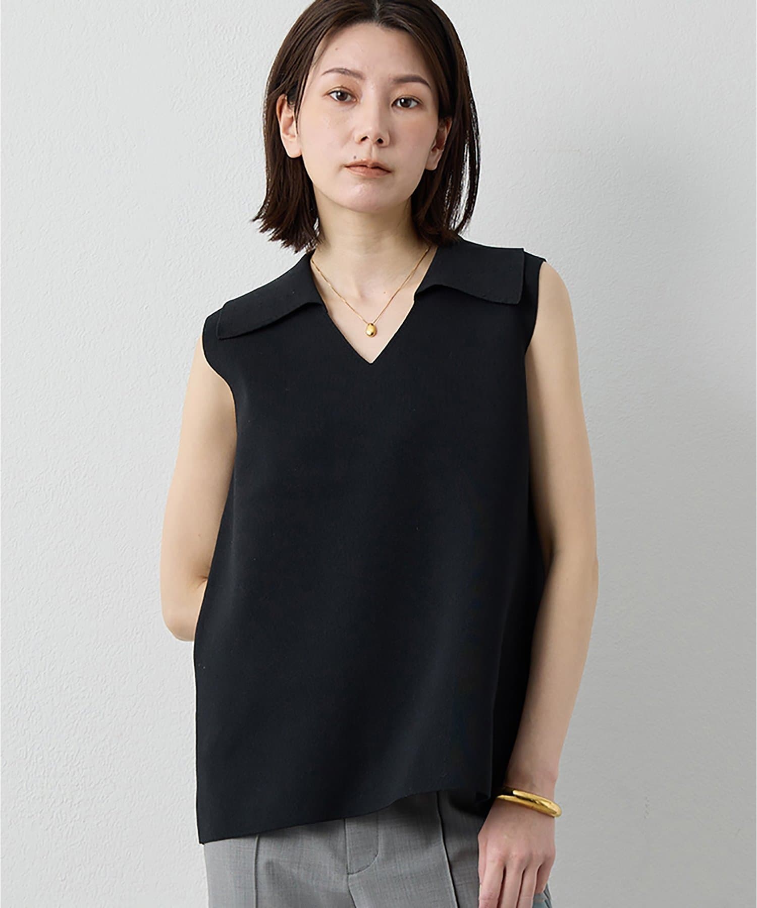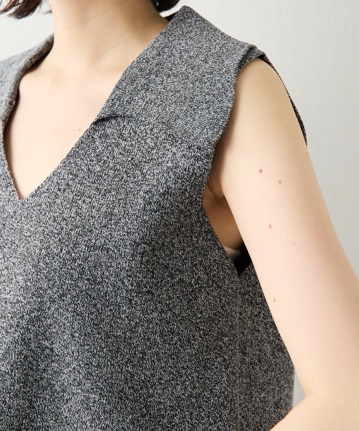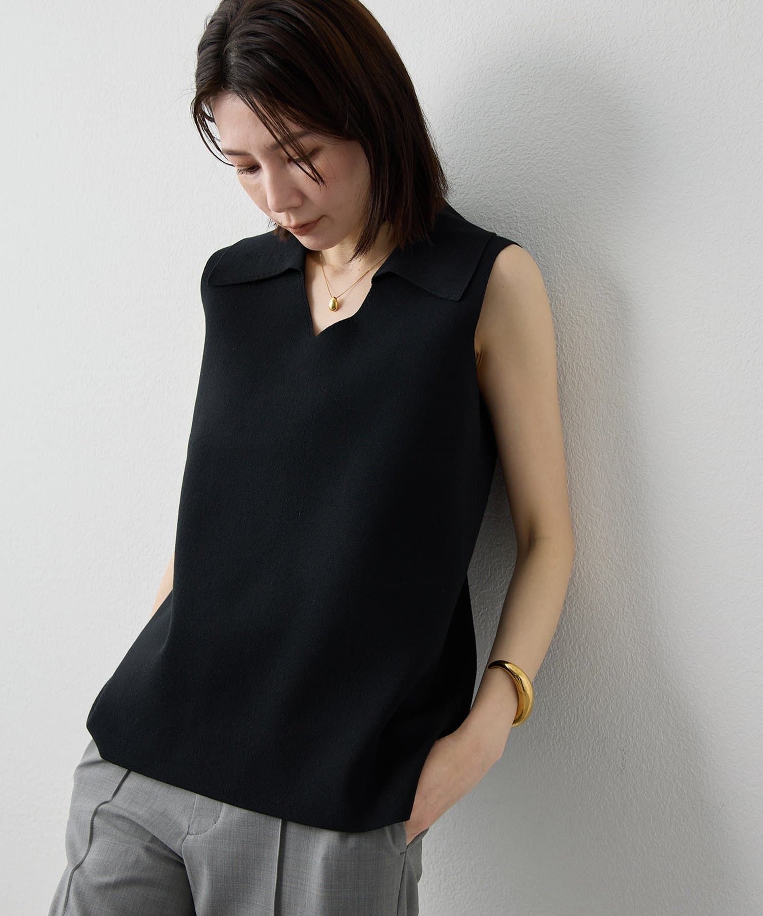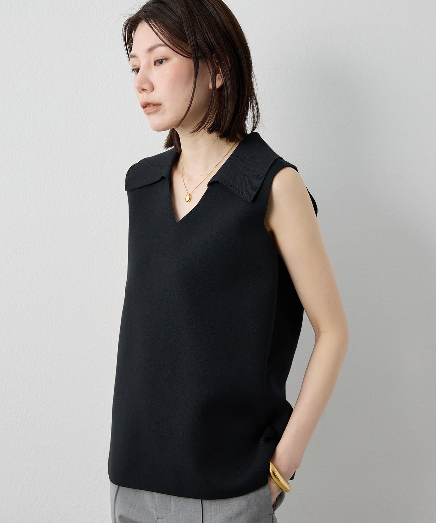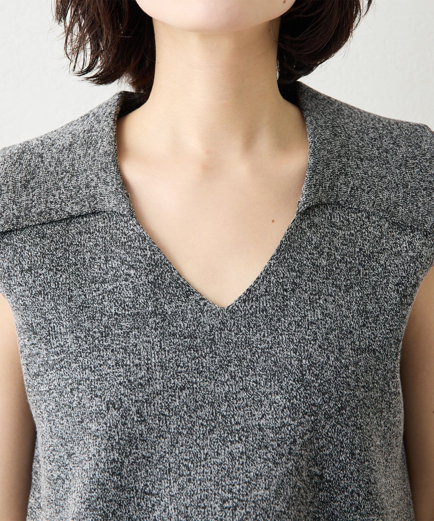 ■ポロカラーがポイントになったノースリーブニットプルオーバー。