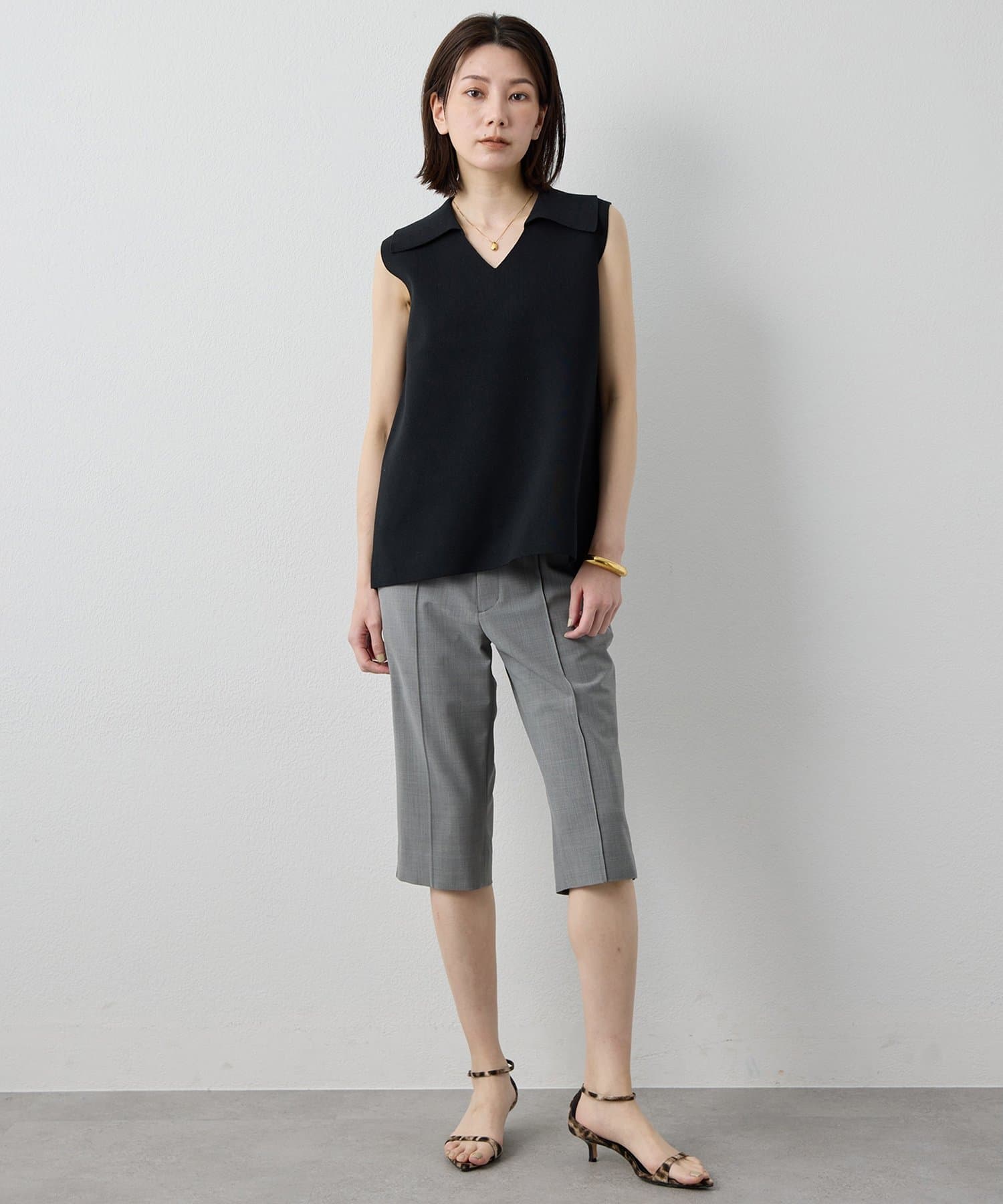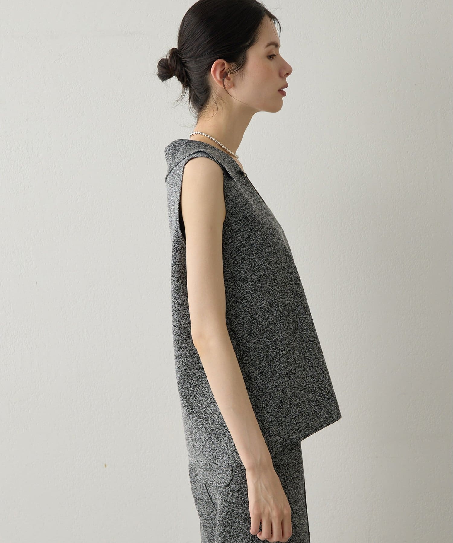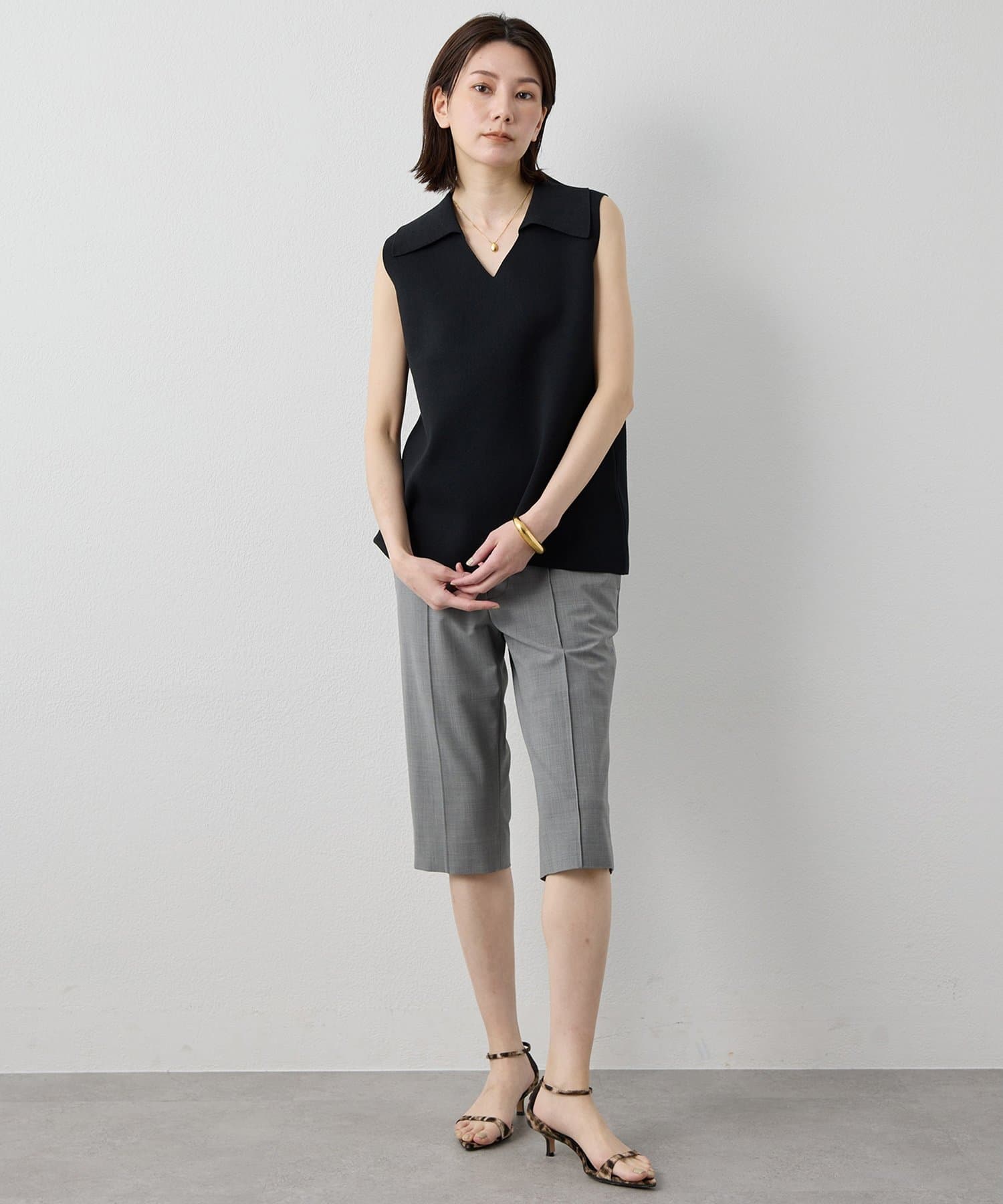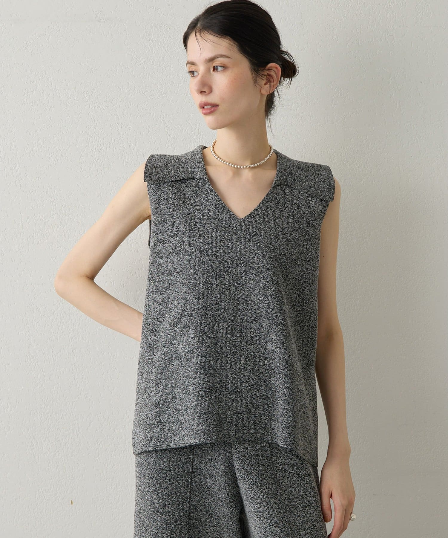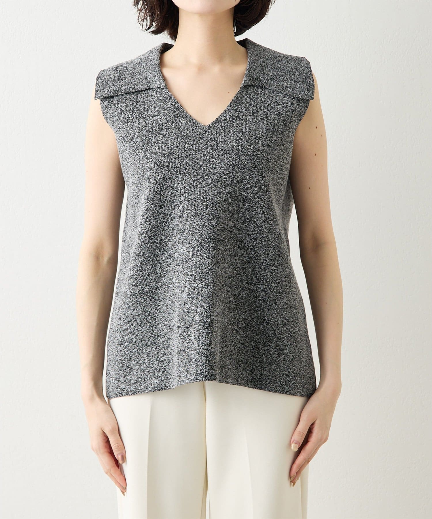 ■ポロカラーがポイントになったノースリーブニットプルオーバー。