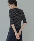 昨年も人気だったハーフスリーブニット。ドローイングのオリジナル柄です。肘まで隠れる袖丈と開きすぎない首周りが上品でオフィス使いされる方もいらっしゃいます!ジャケットも楽々羽織れますよ。ゆるすぎず、ピッタリすぎず着心地もサラッとしていて良いです!