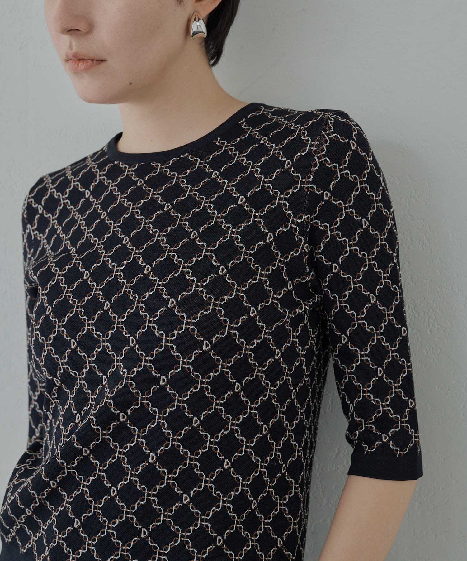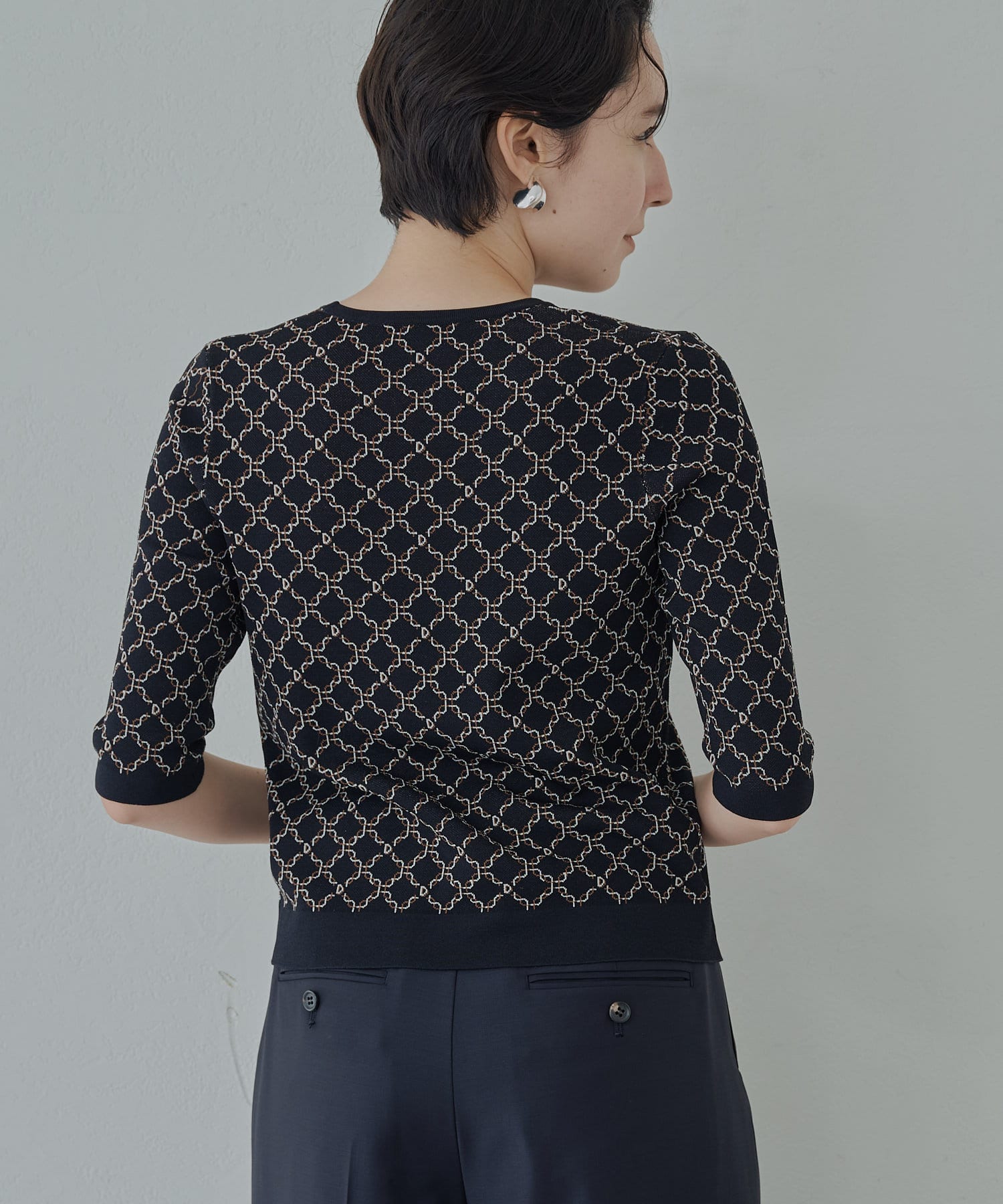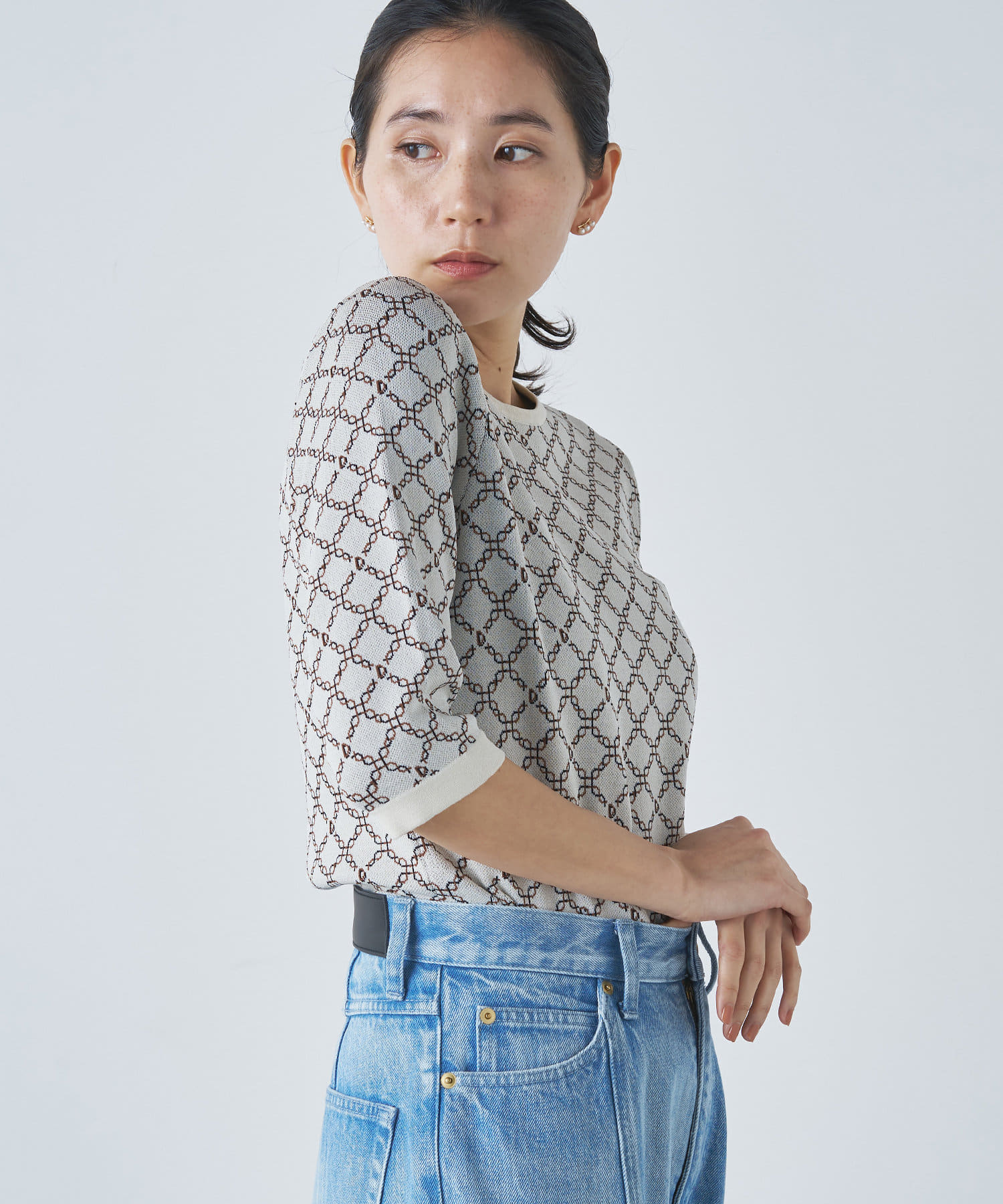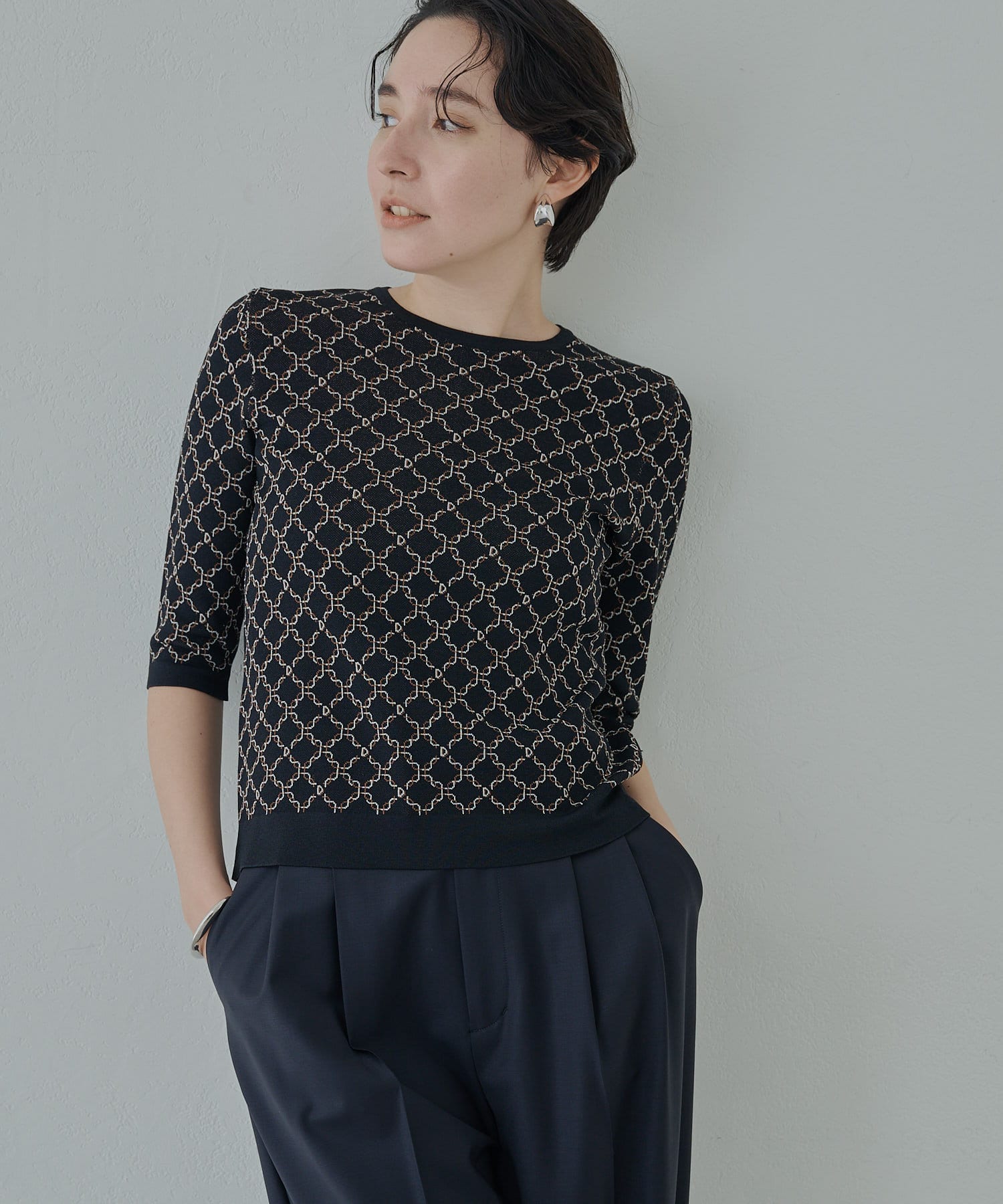 トラッドなムードを纏える、オリジナル柄ハーフスリーブニット