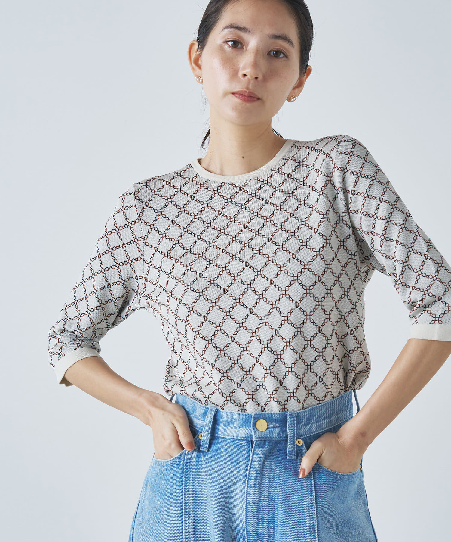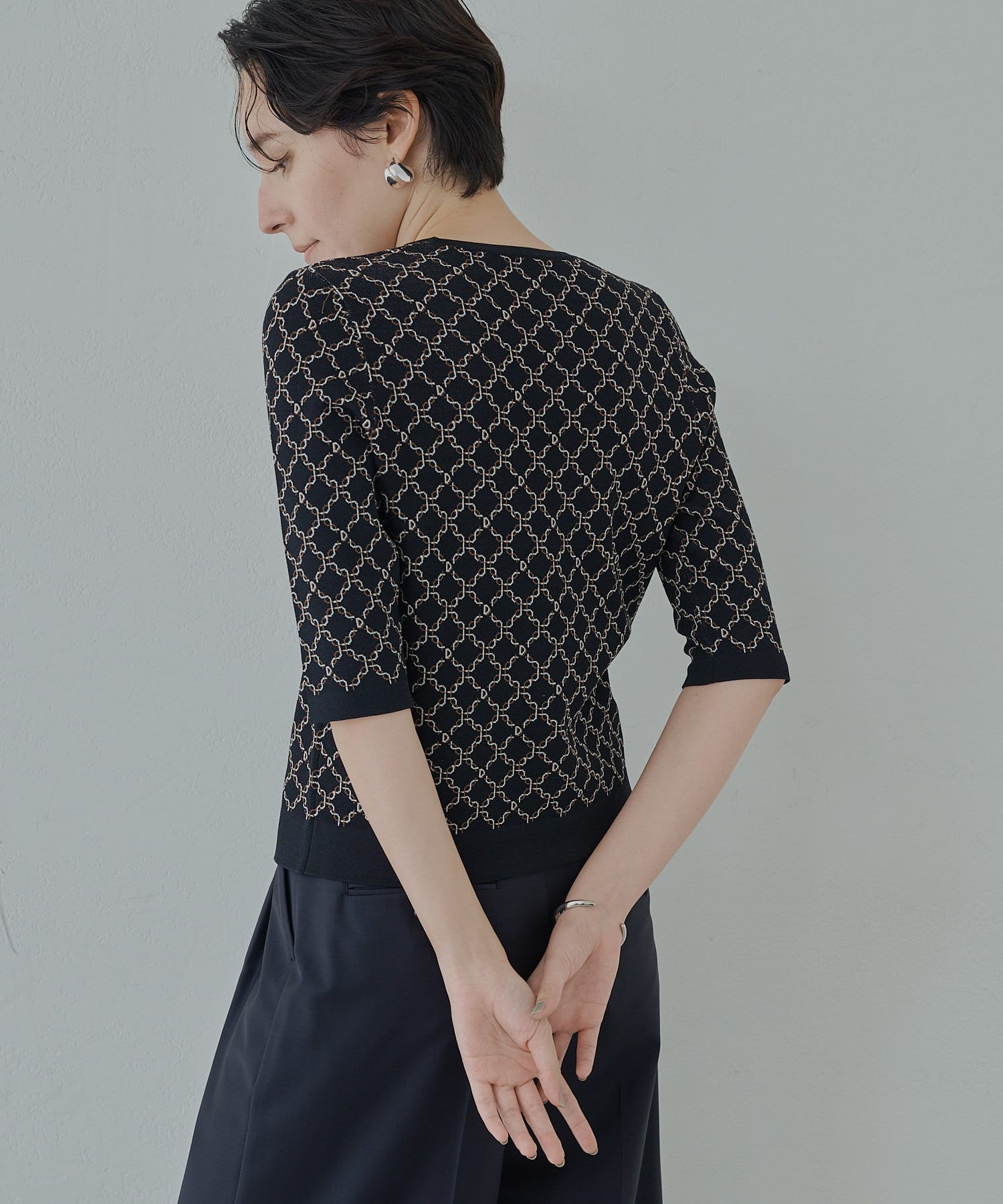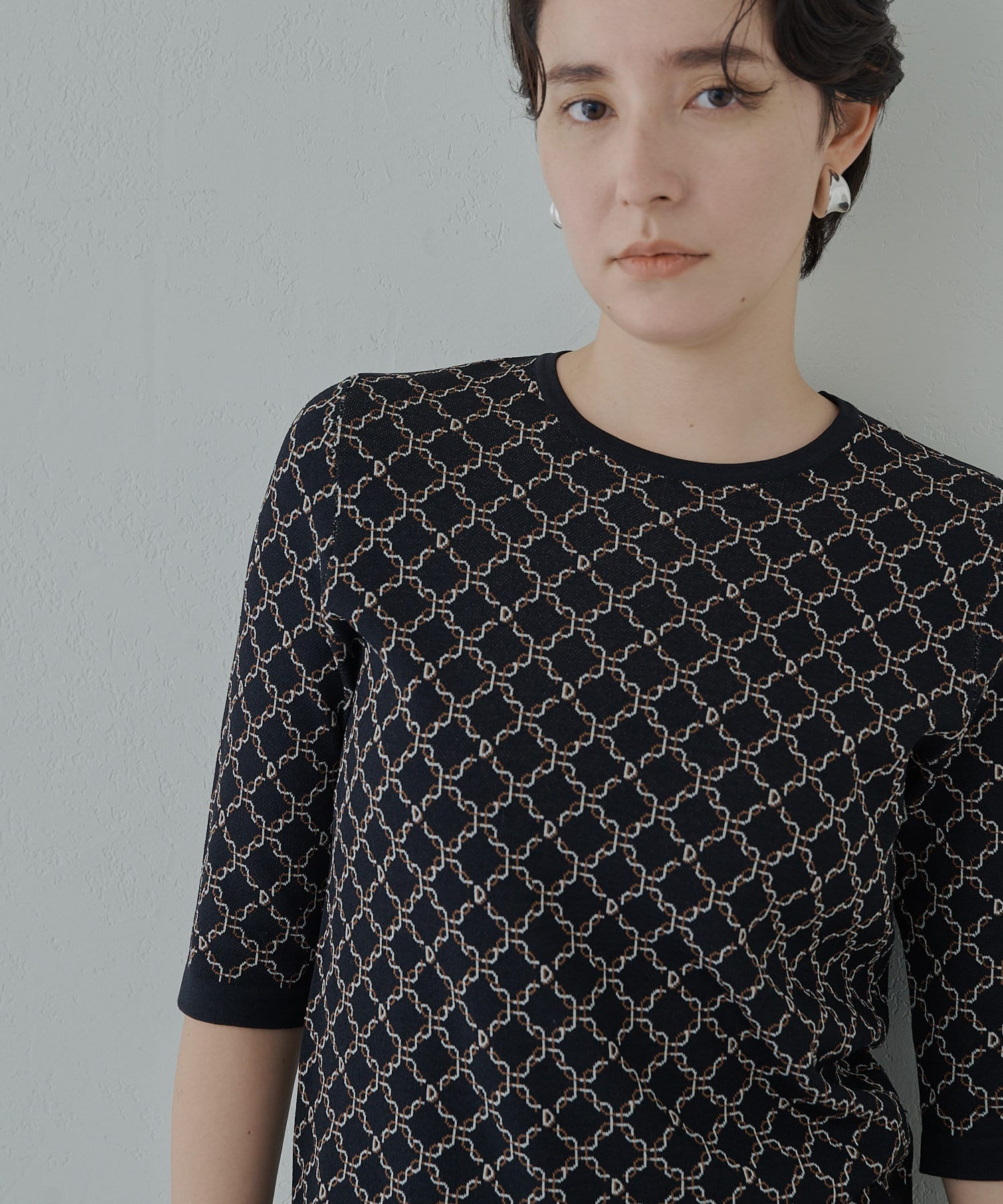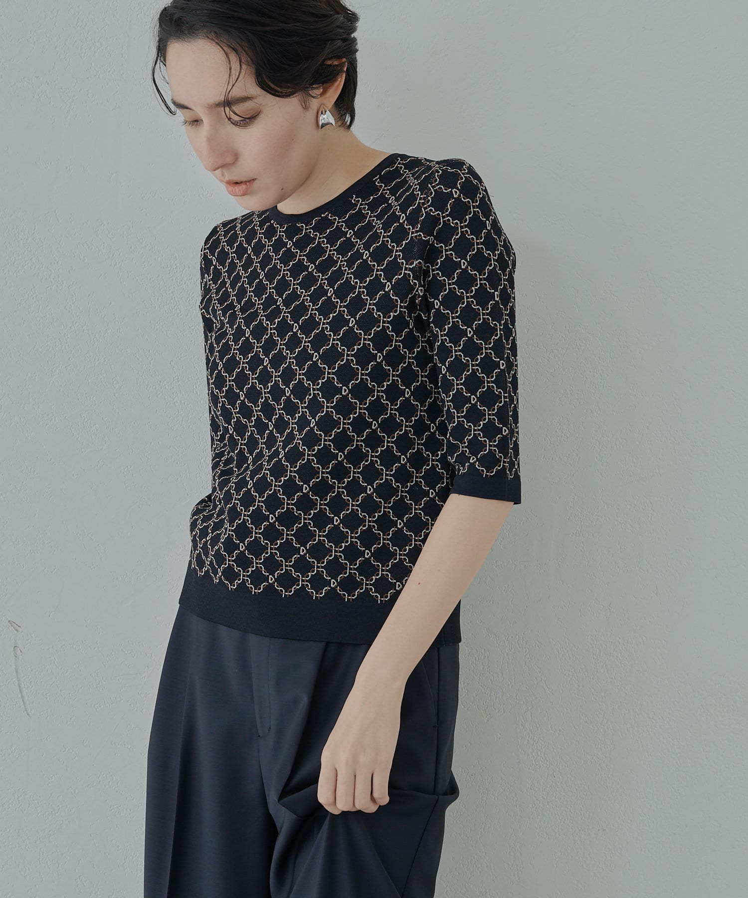 トラッドなムードを纏える、オリジナル柄ハーフスリーブニット