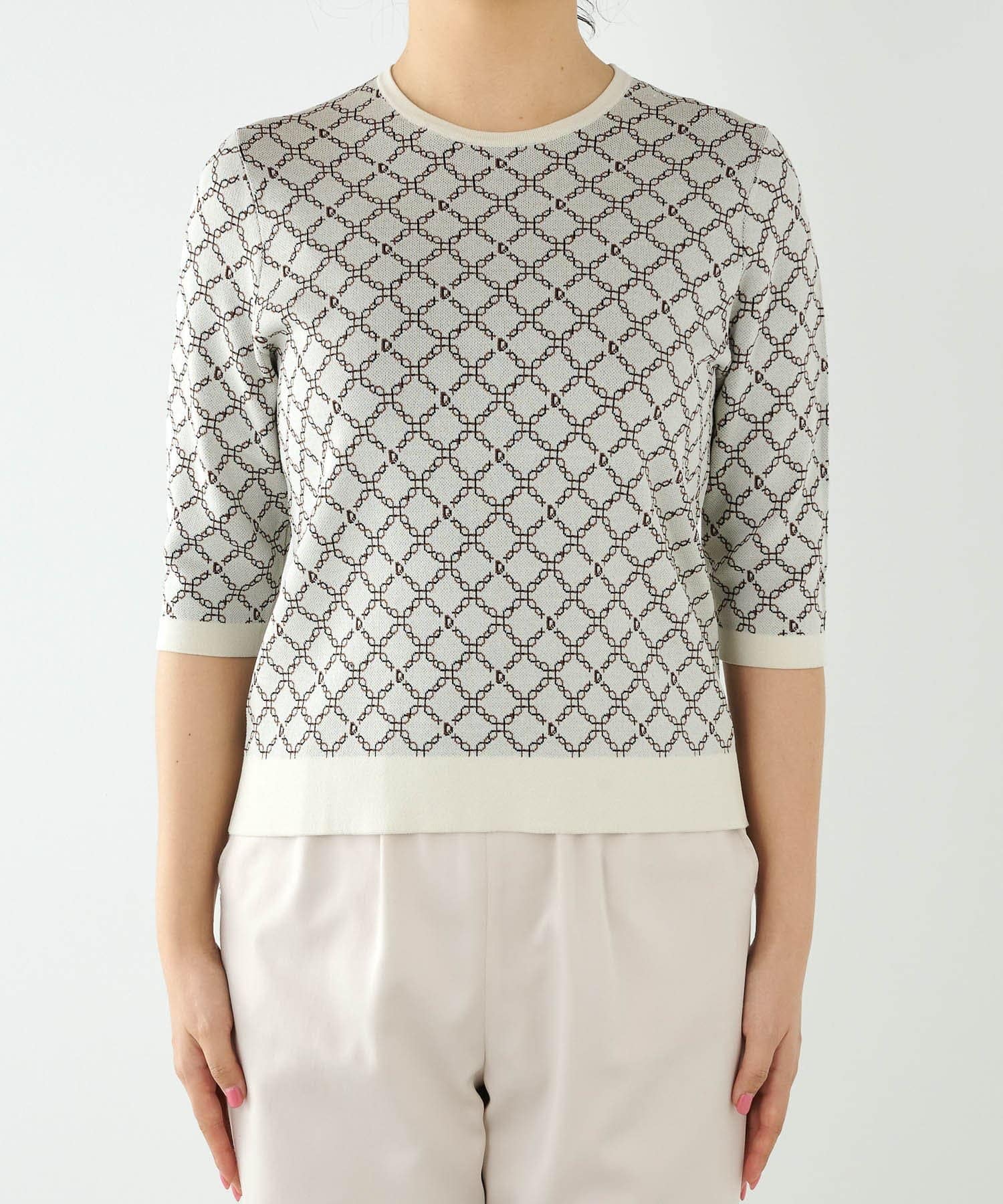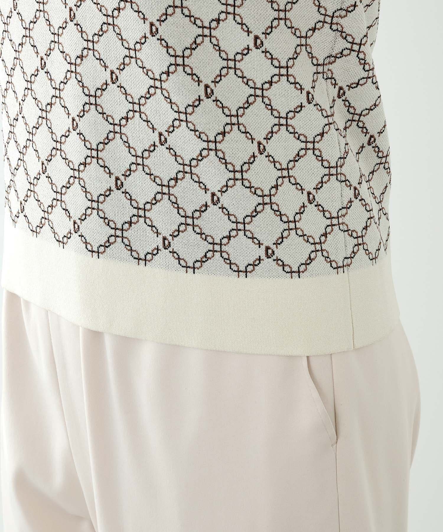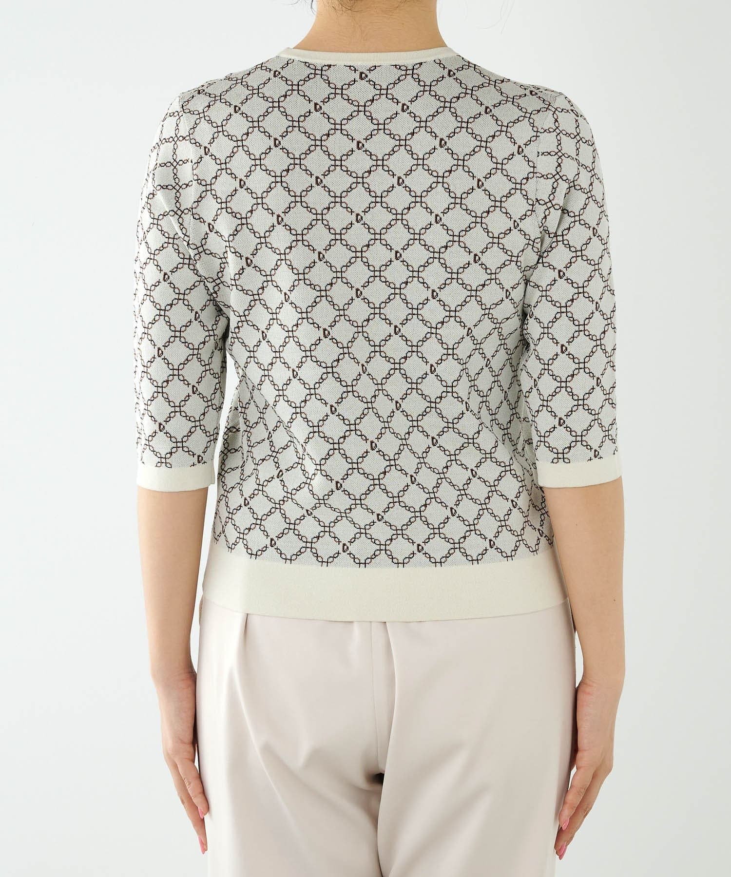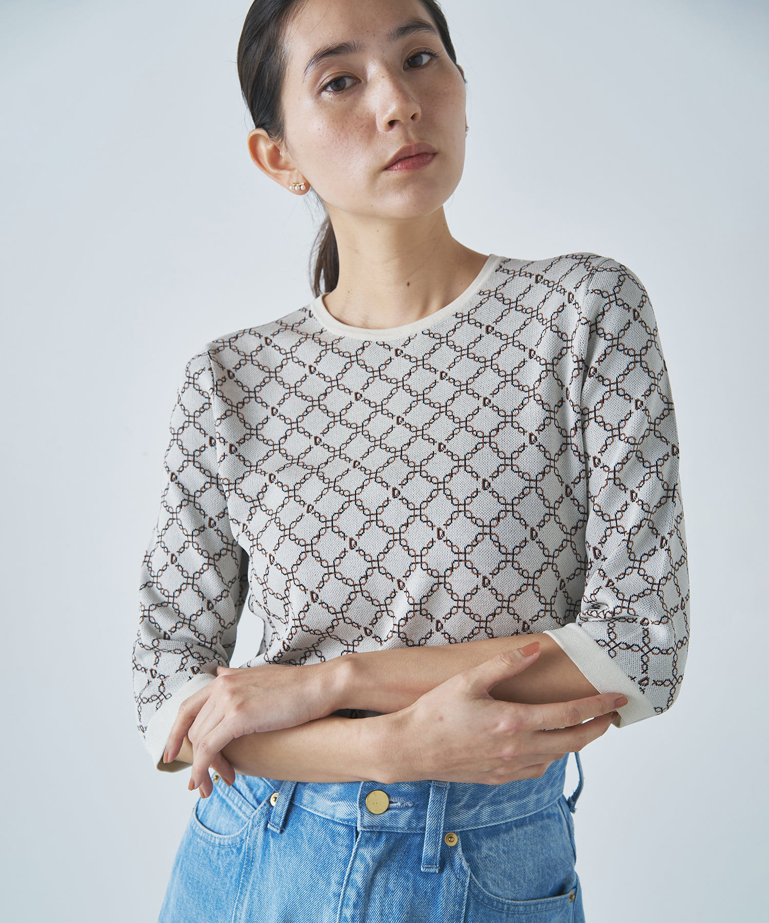トラッドなムードを纏える、オリジナル柄ハーフスリーブニット