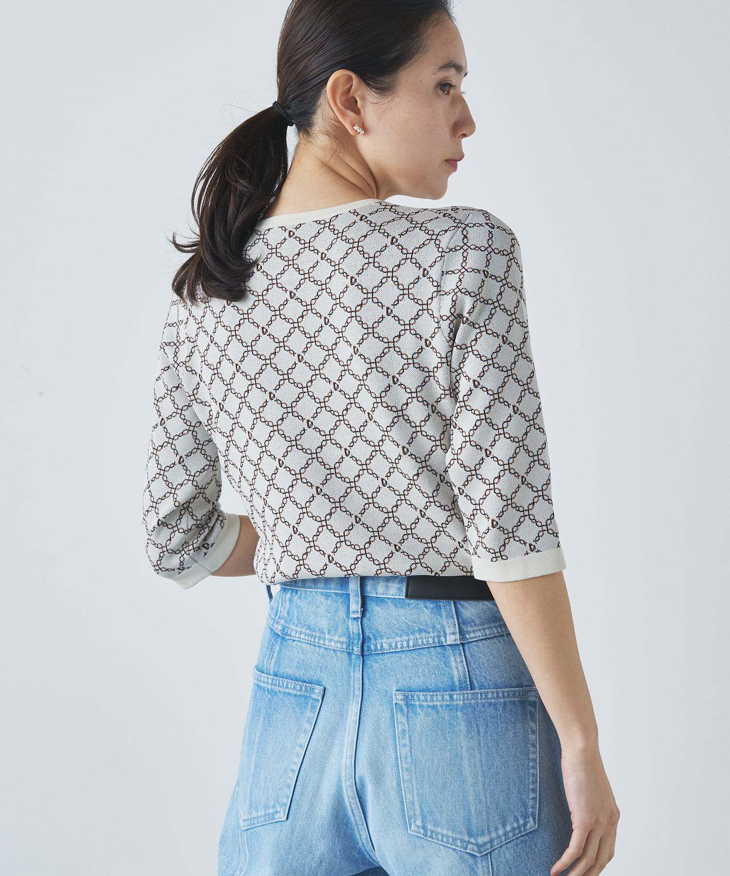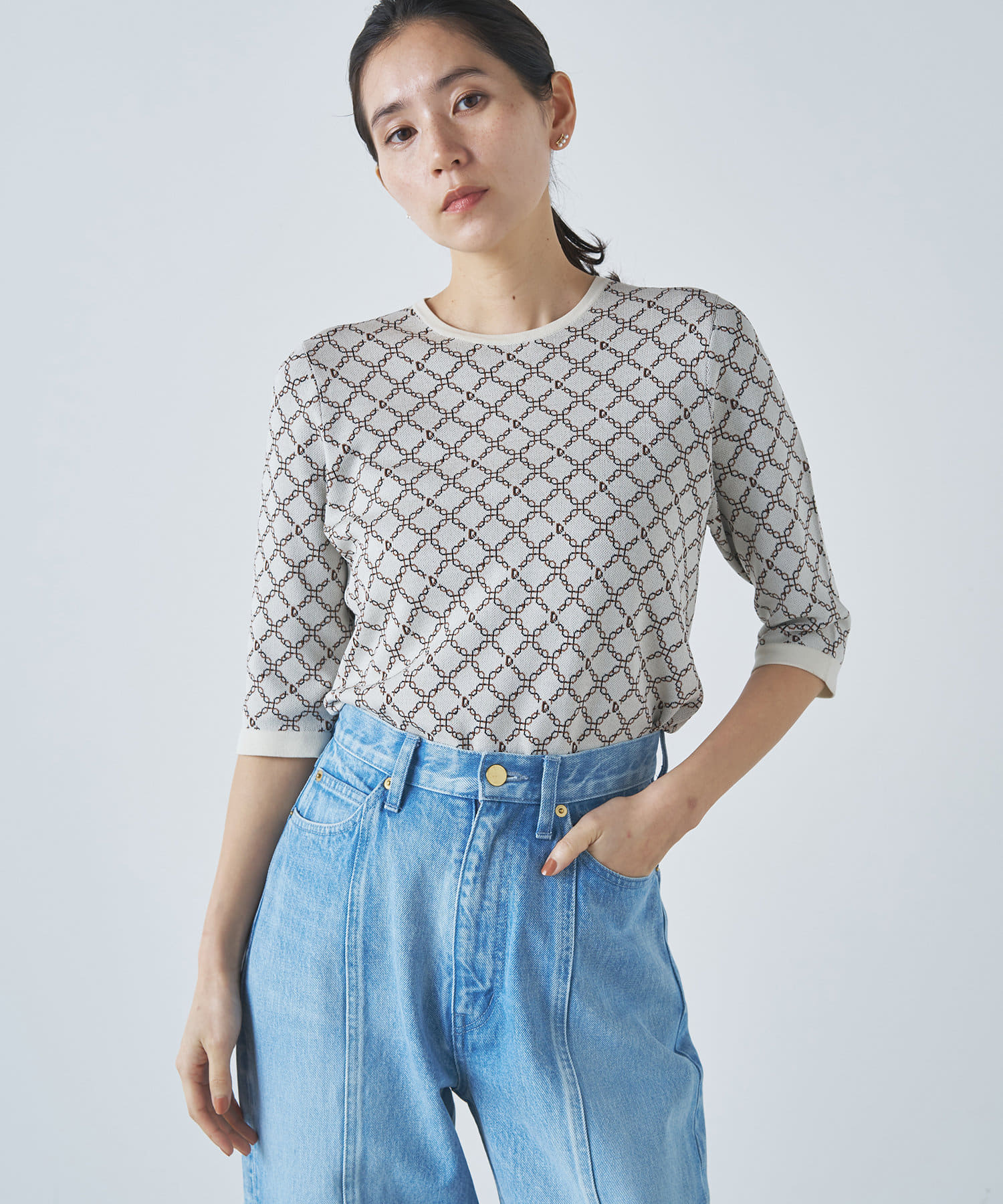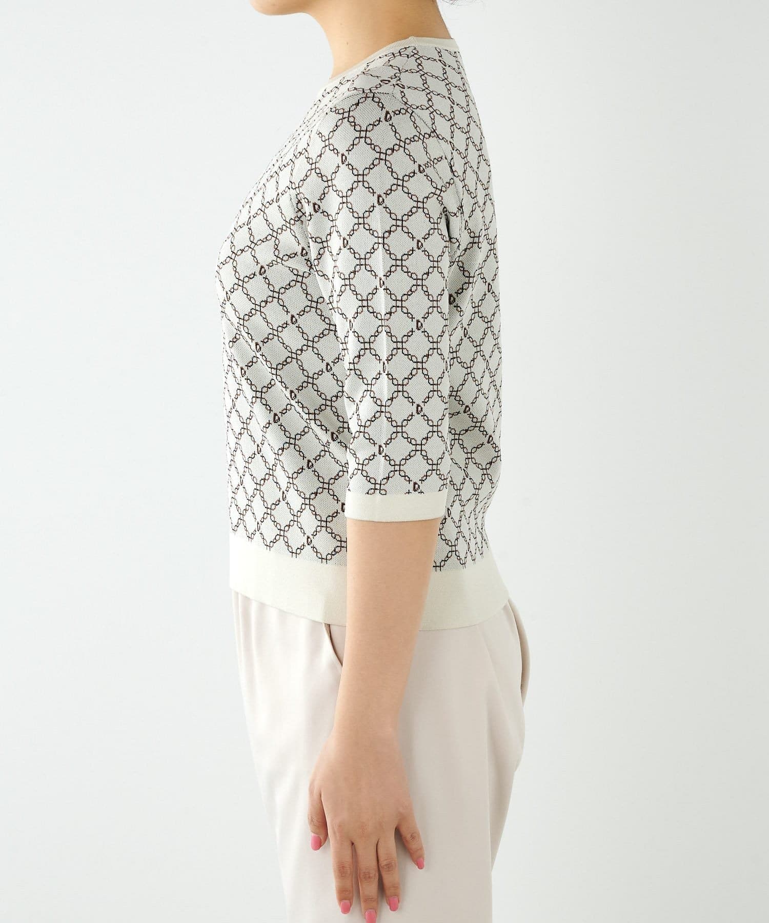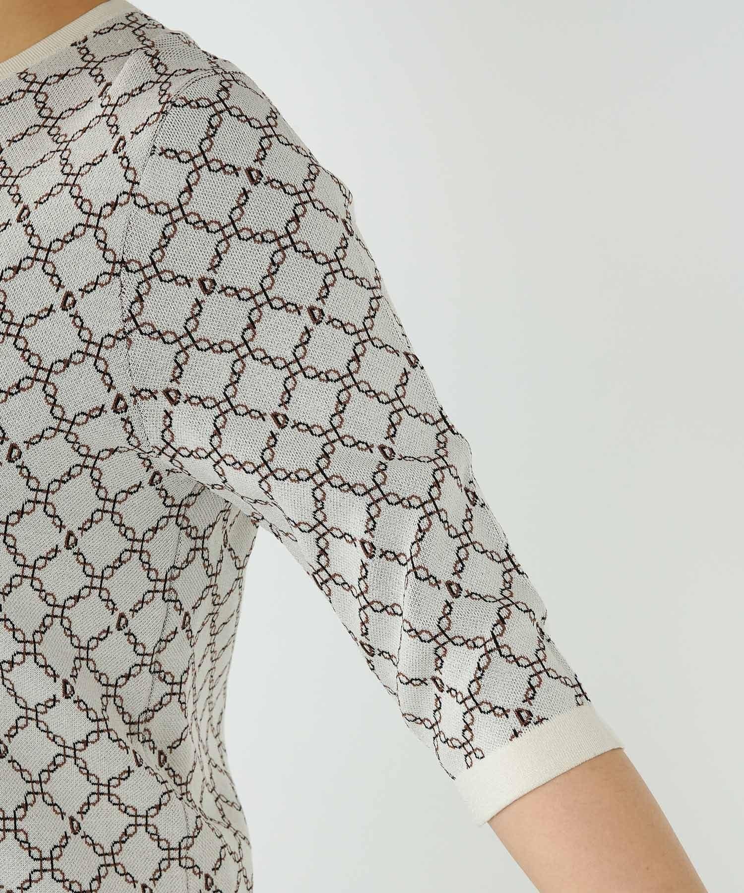 トラッドなムードを纏える、オリジナル柄ハーフスリーブニット