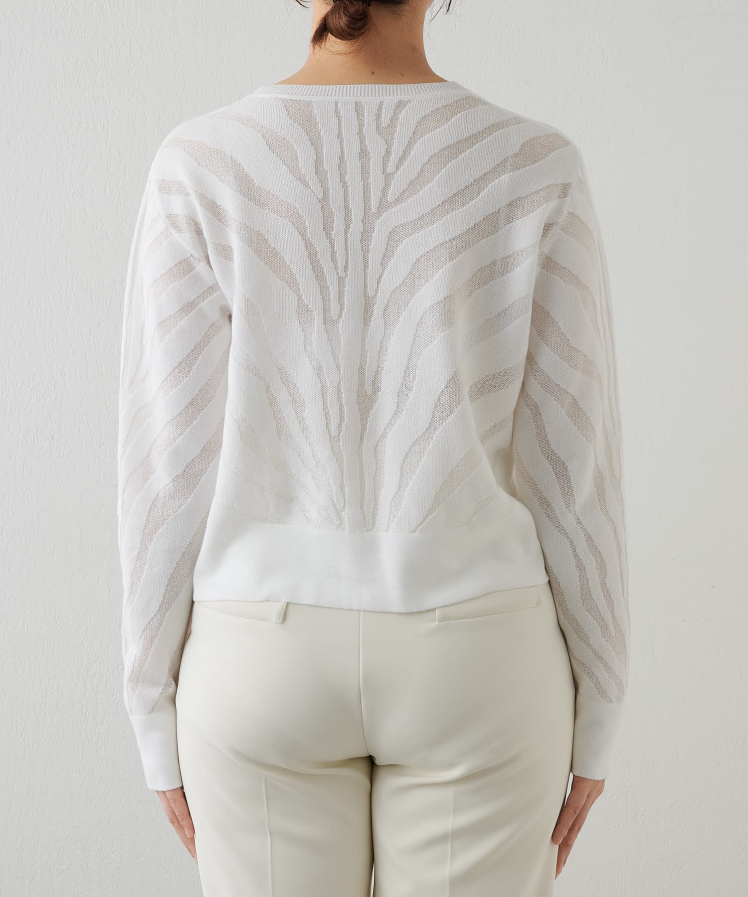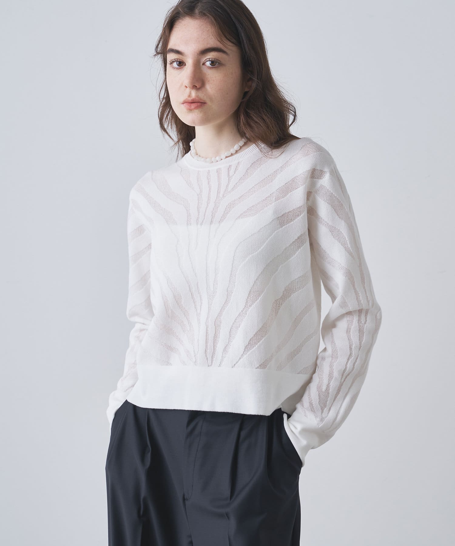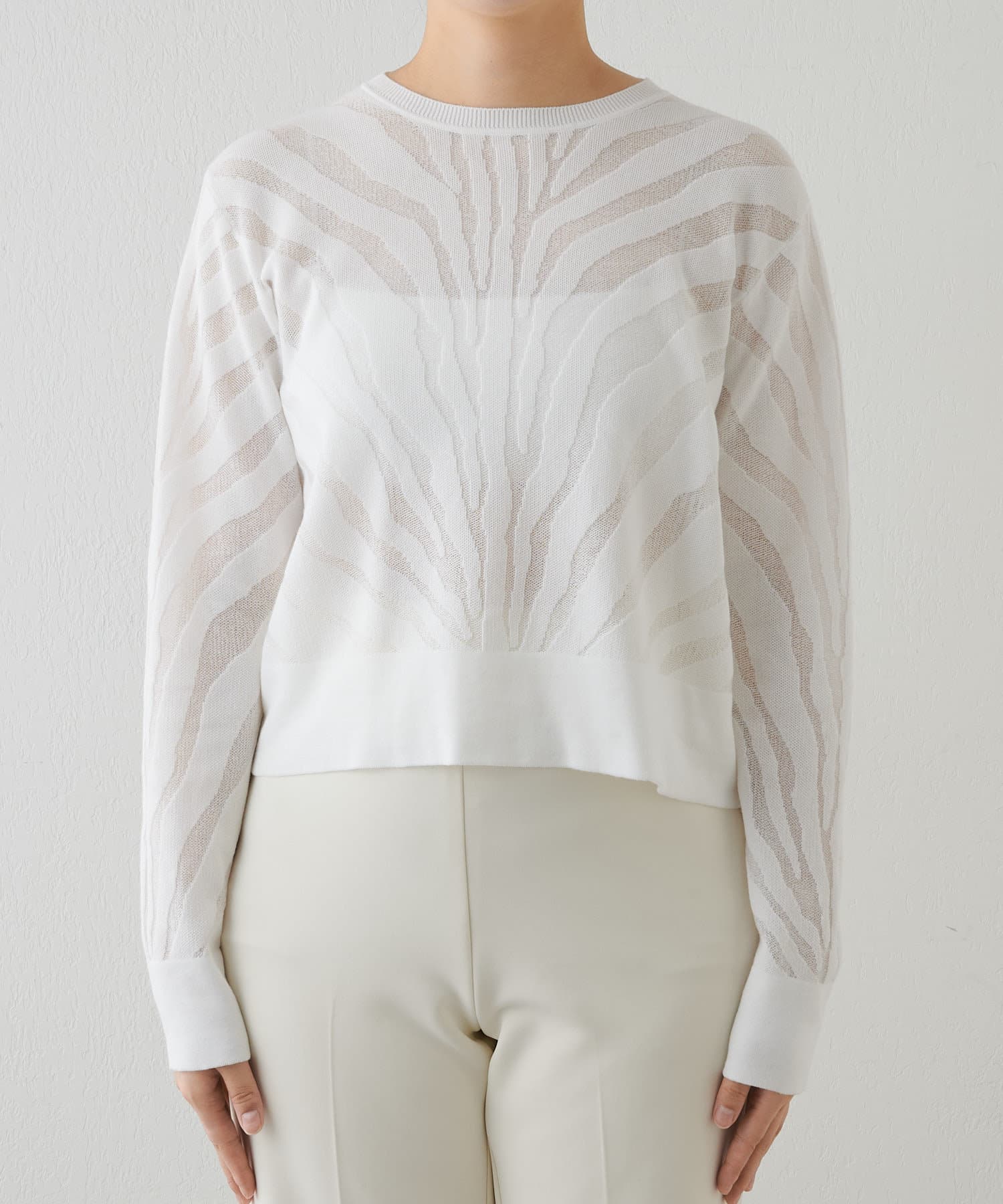 ■透け感のあるゼブラ柄がポイントのニットプルオーバー。