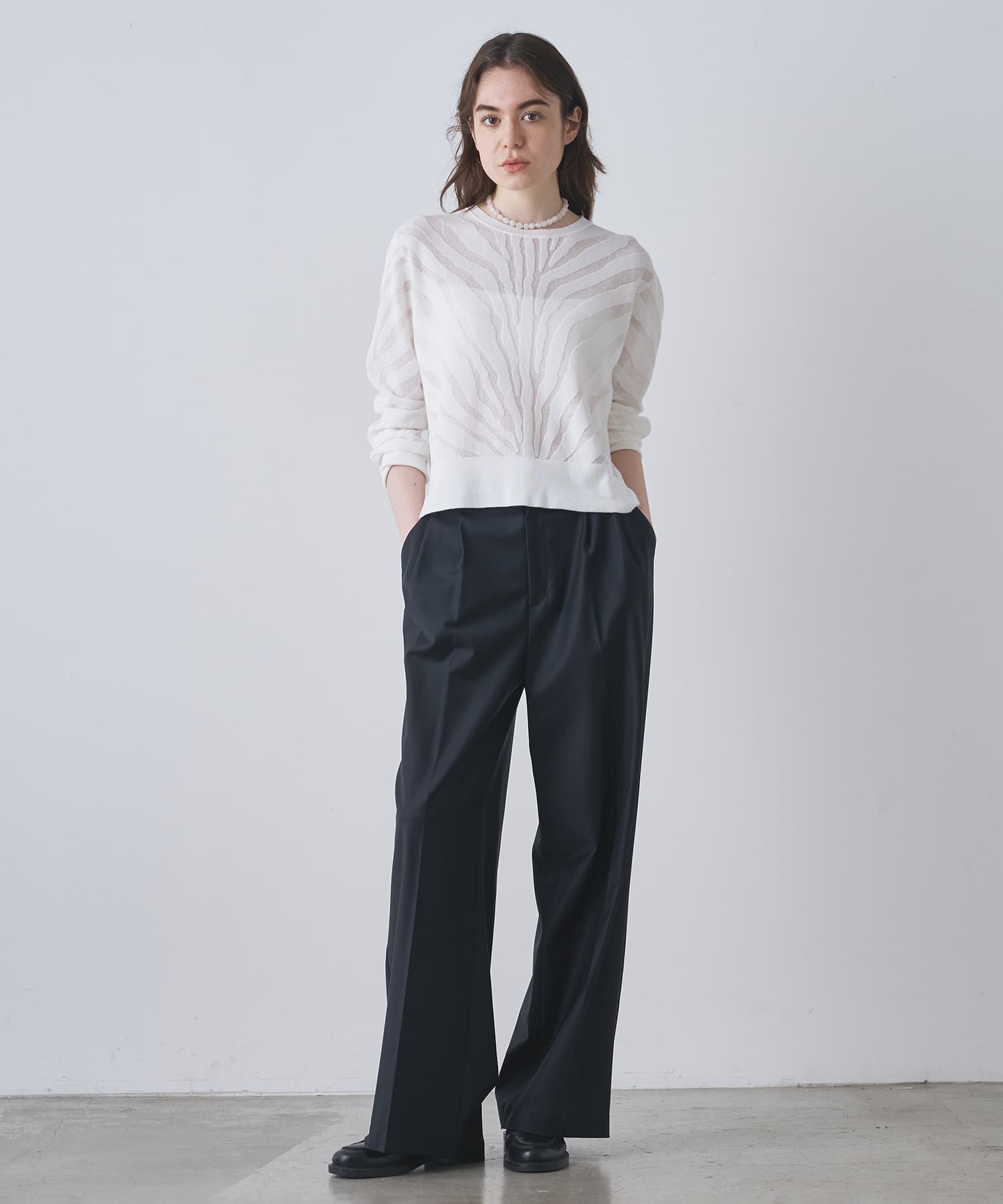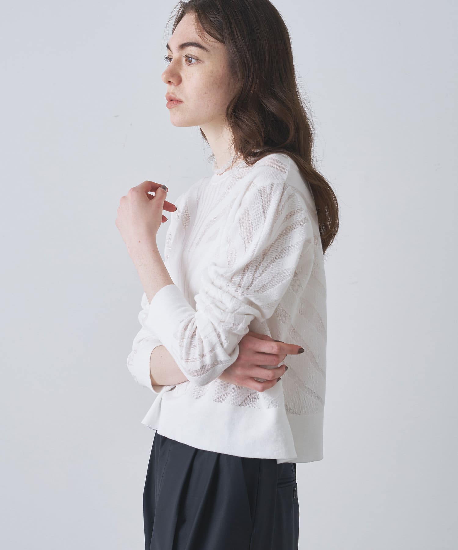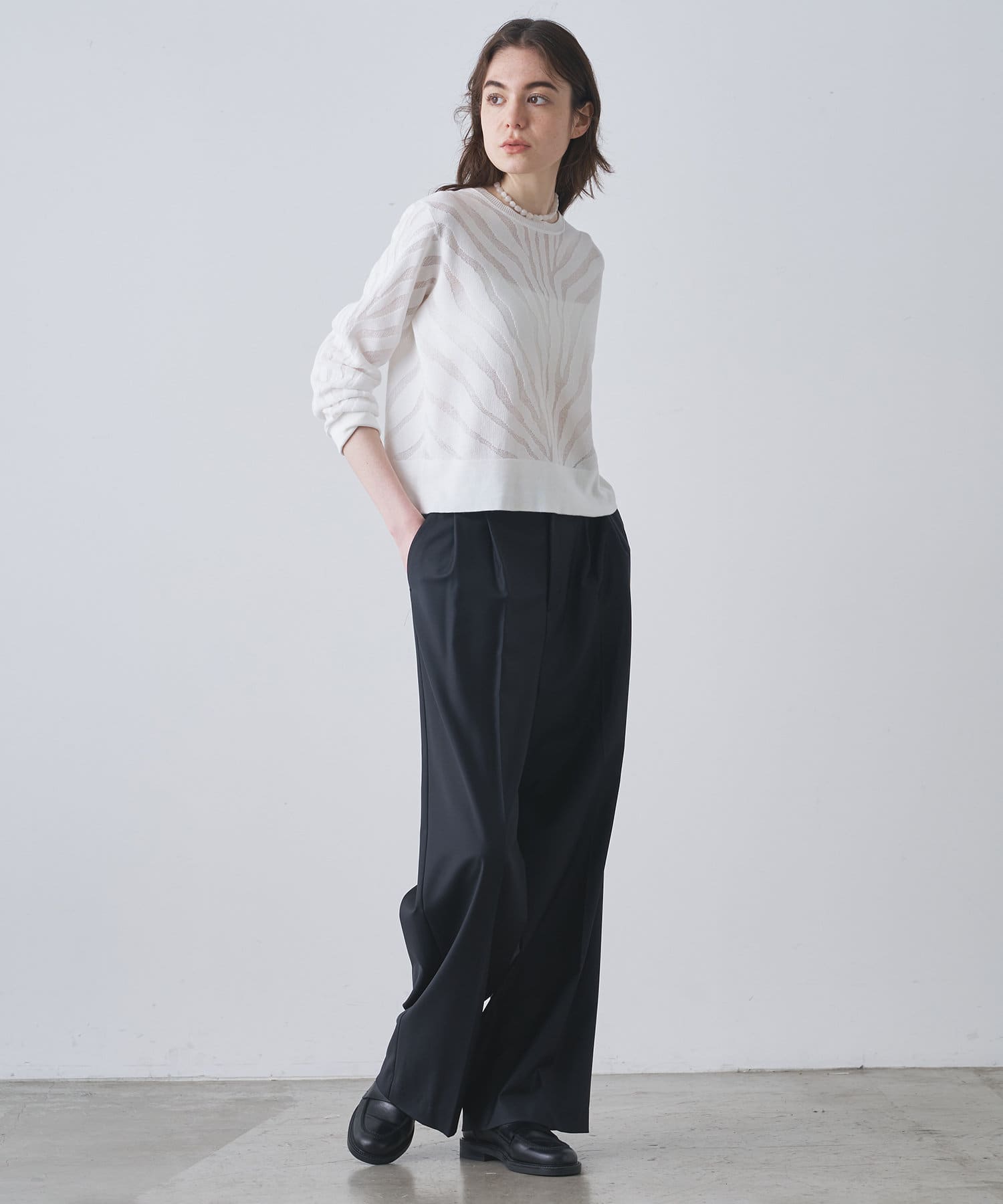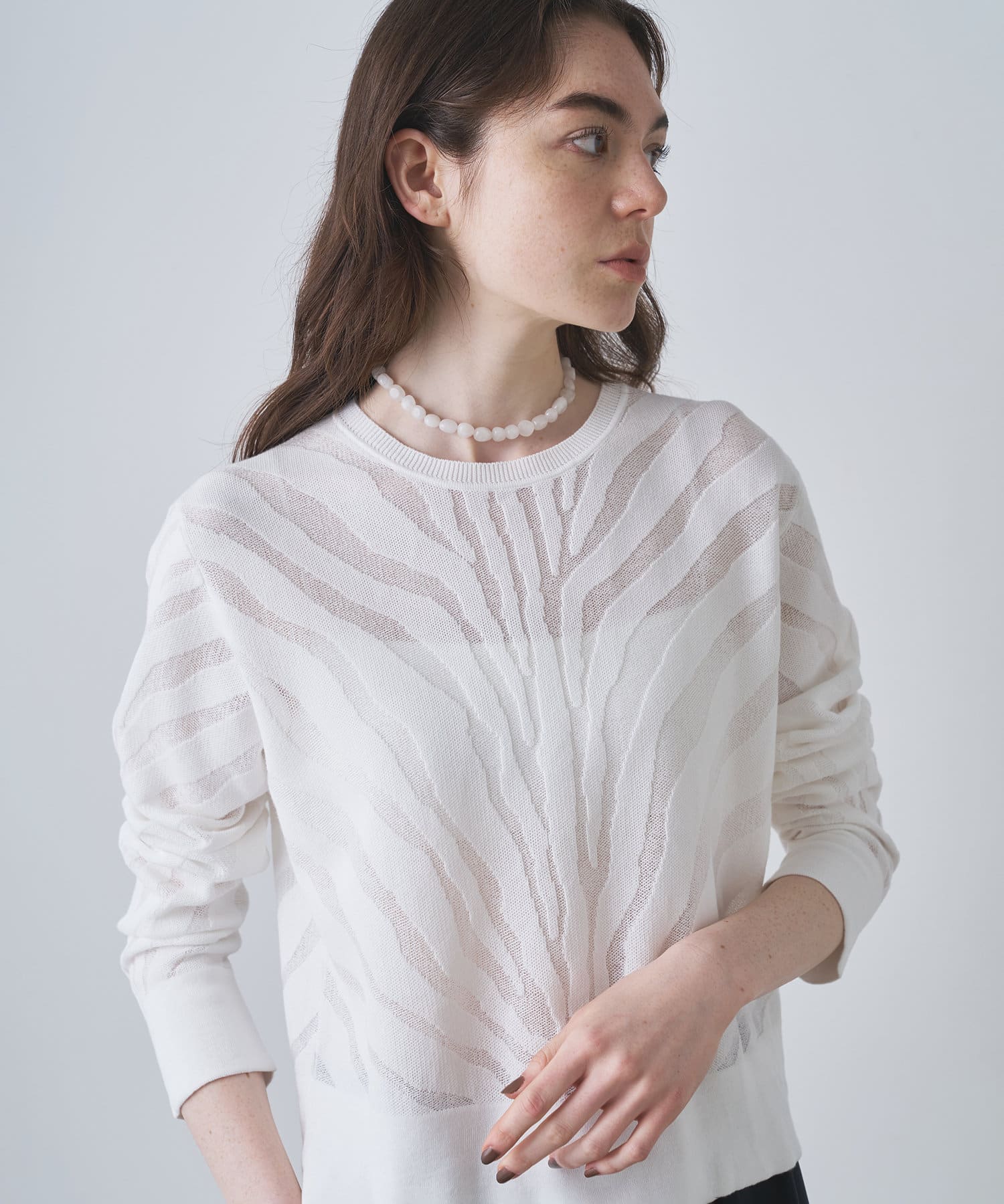 ■透け感のあるゼブラ柄がポイントのニットプルオーバー。