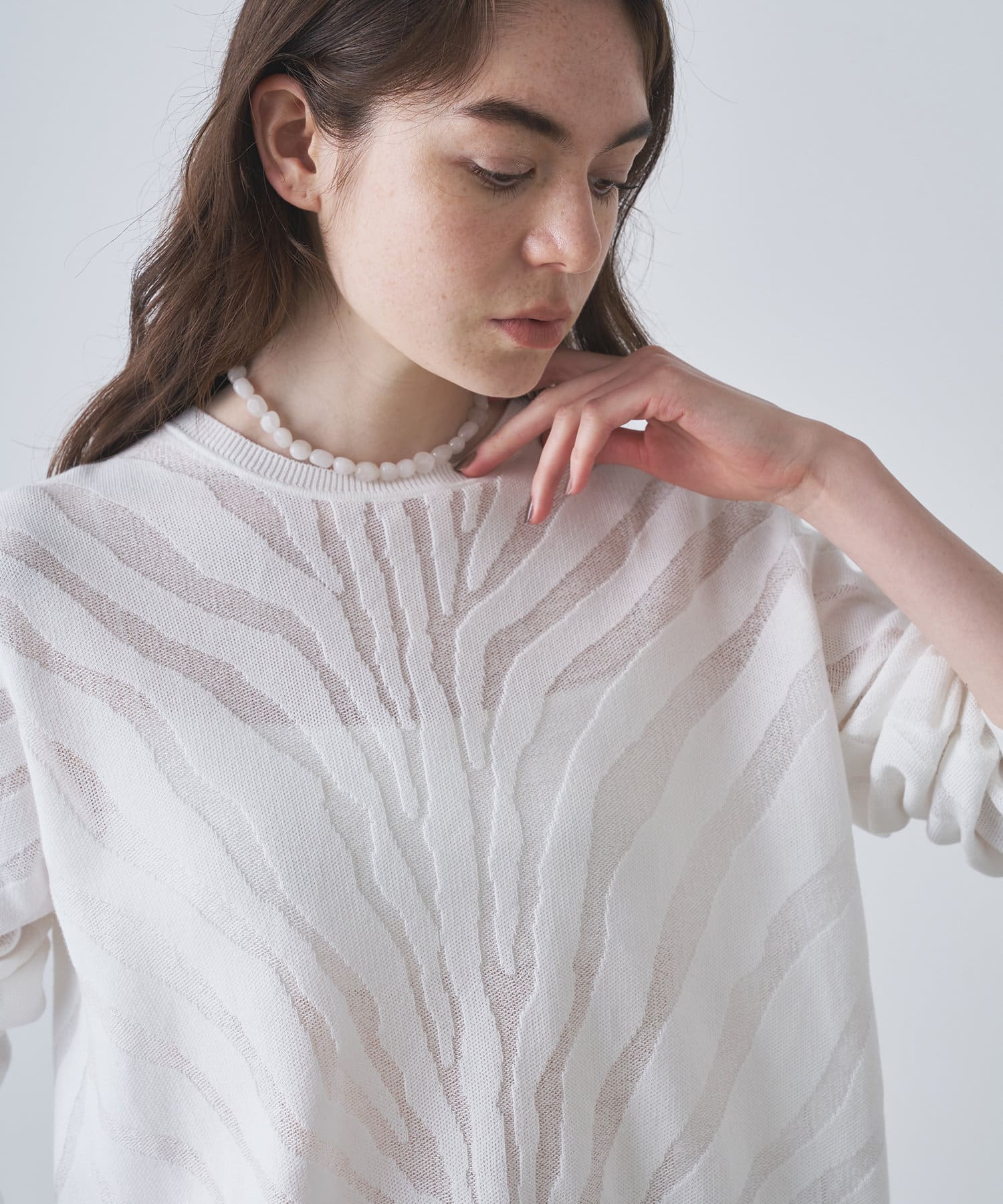 ■モノフィラメントを使用して透けさせることによって、清涼感がありヘルシーな仕上がりに。