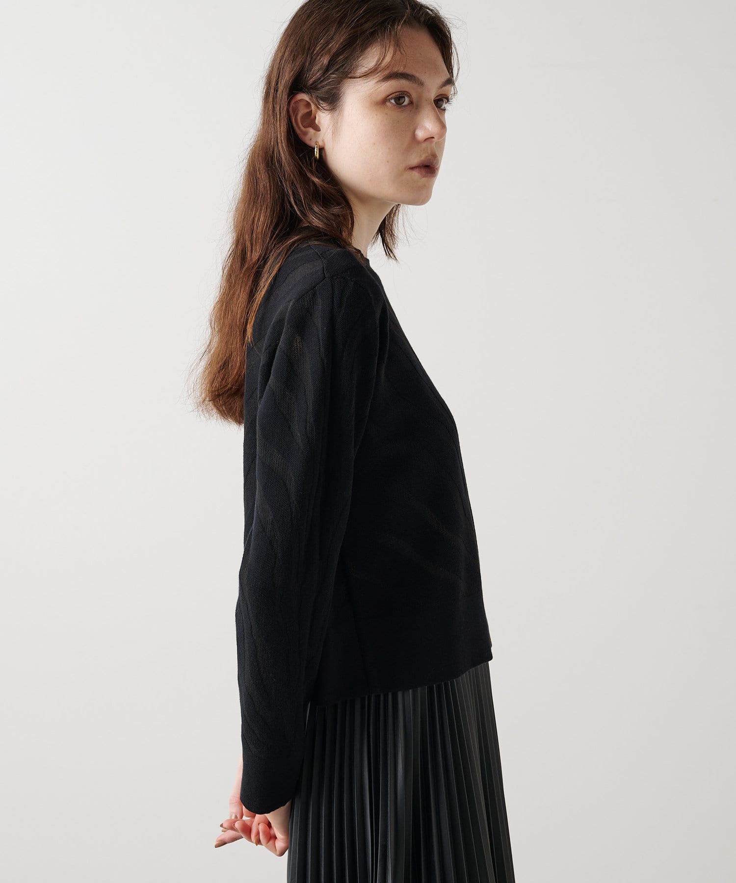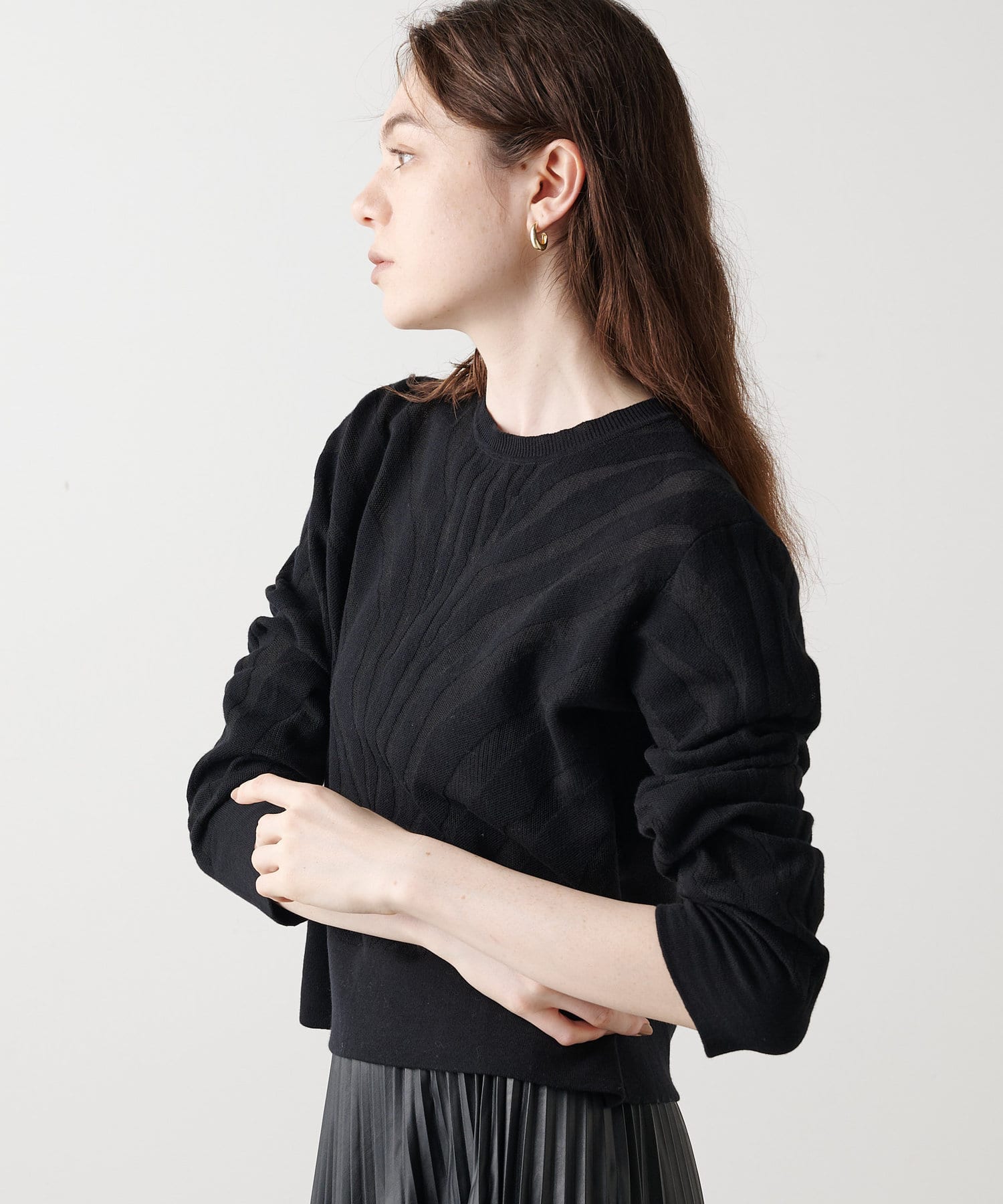 ■長すぎない程よいクロップド丈で合わせるボトムを選ばず、スタイルアップ効果も◎。