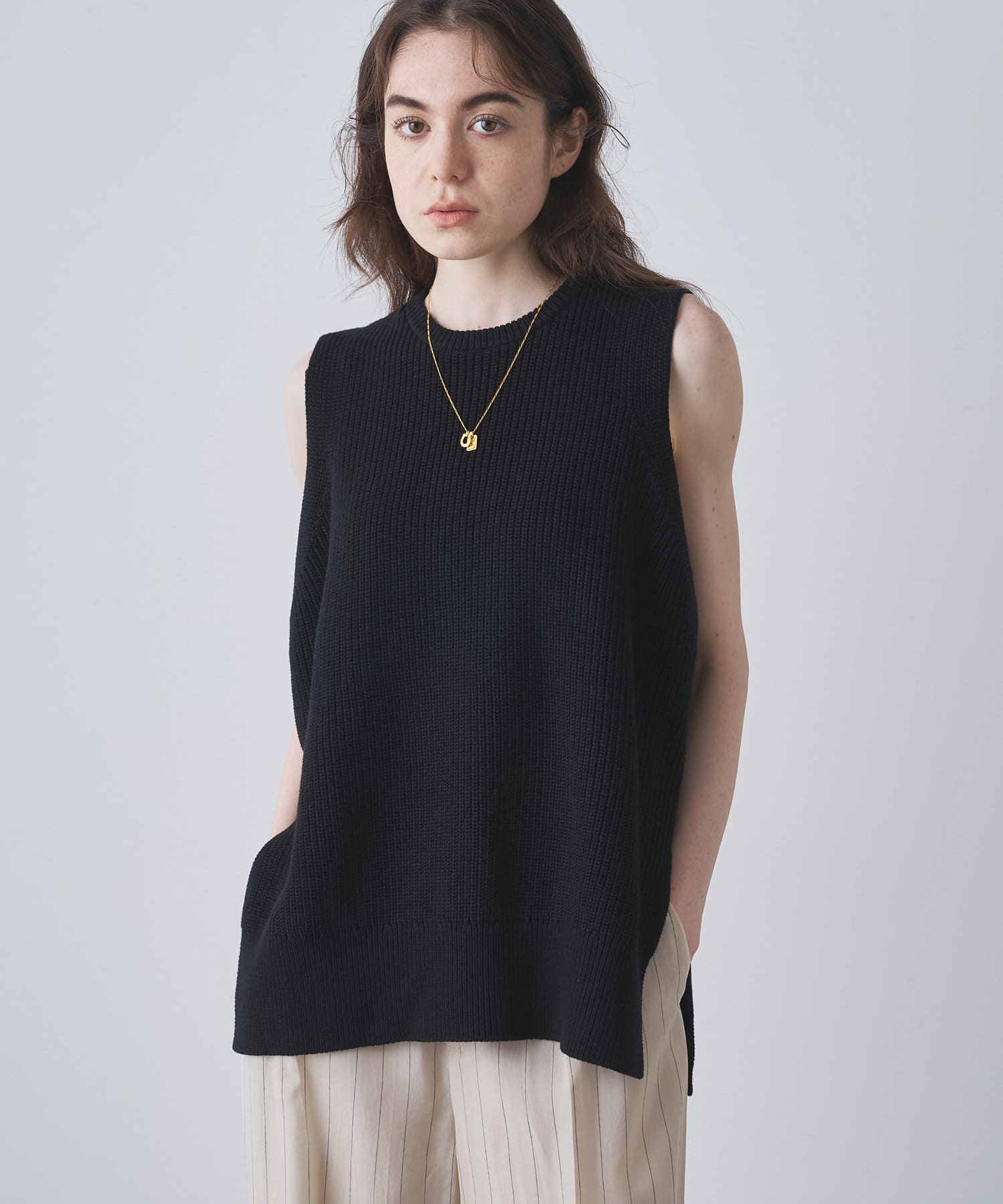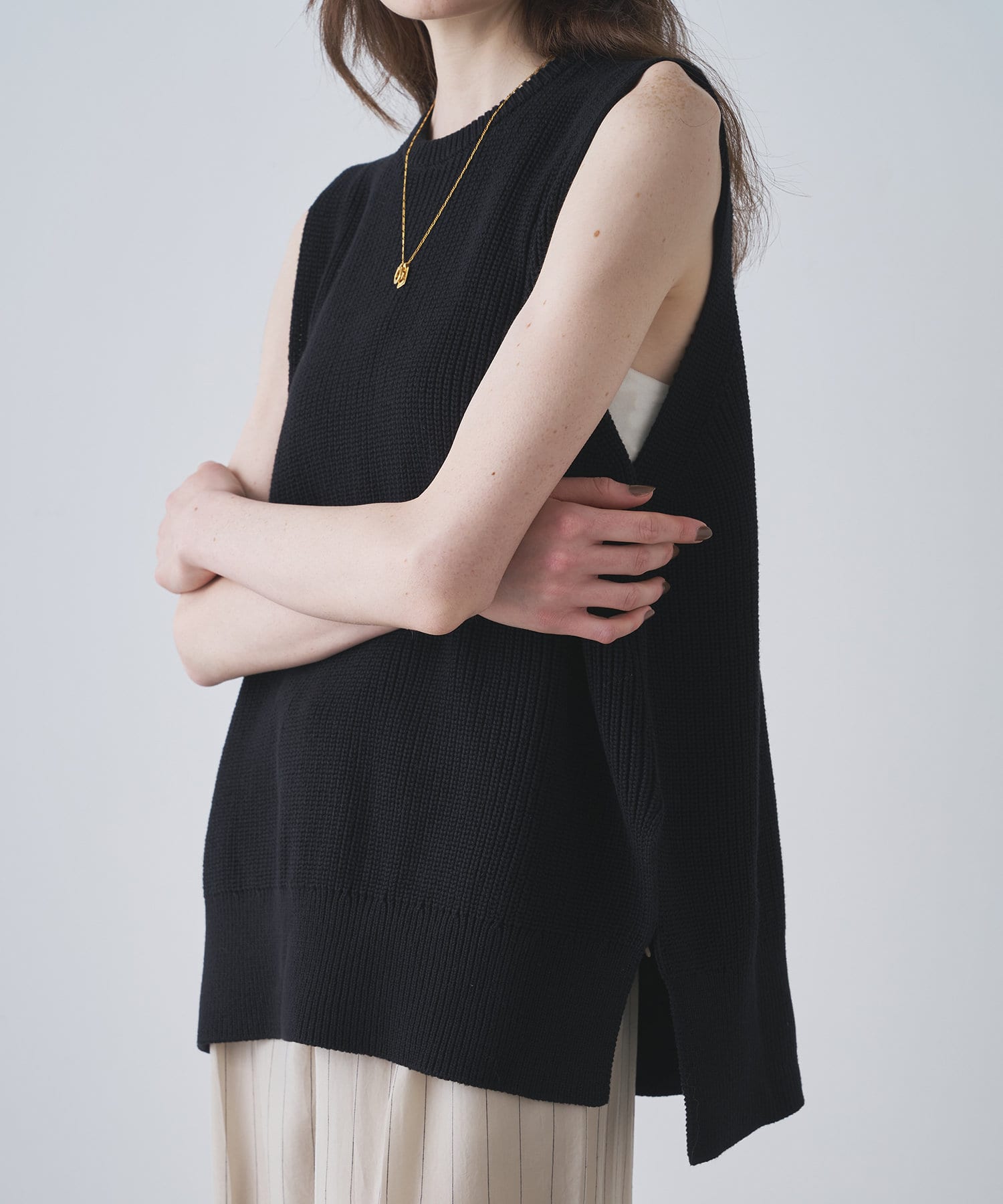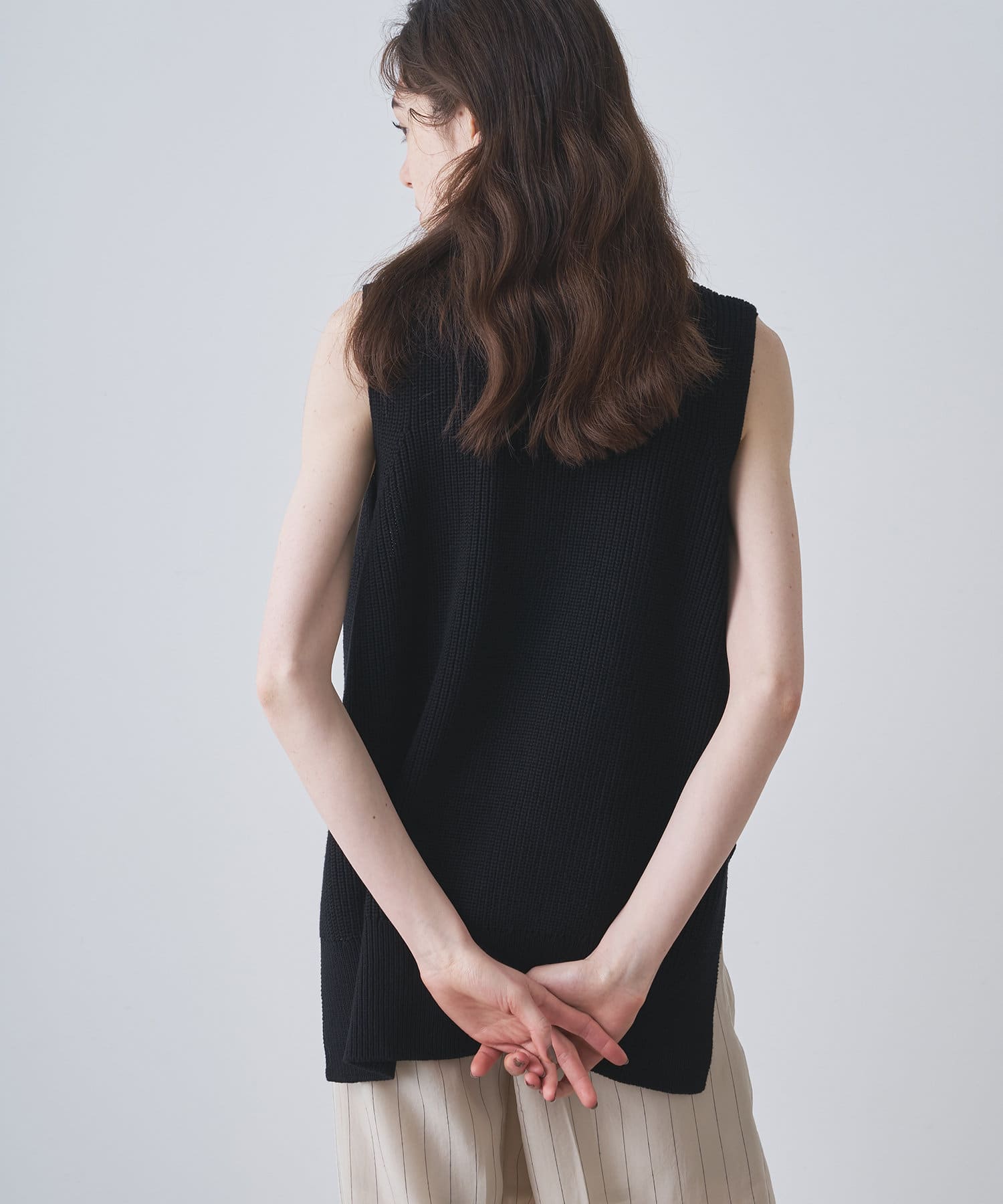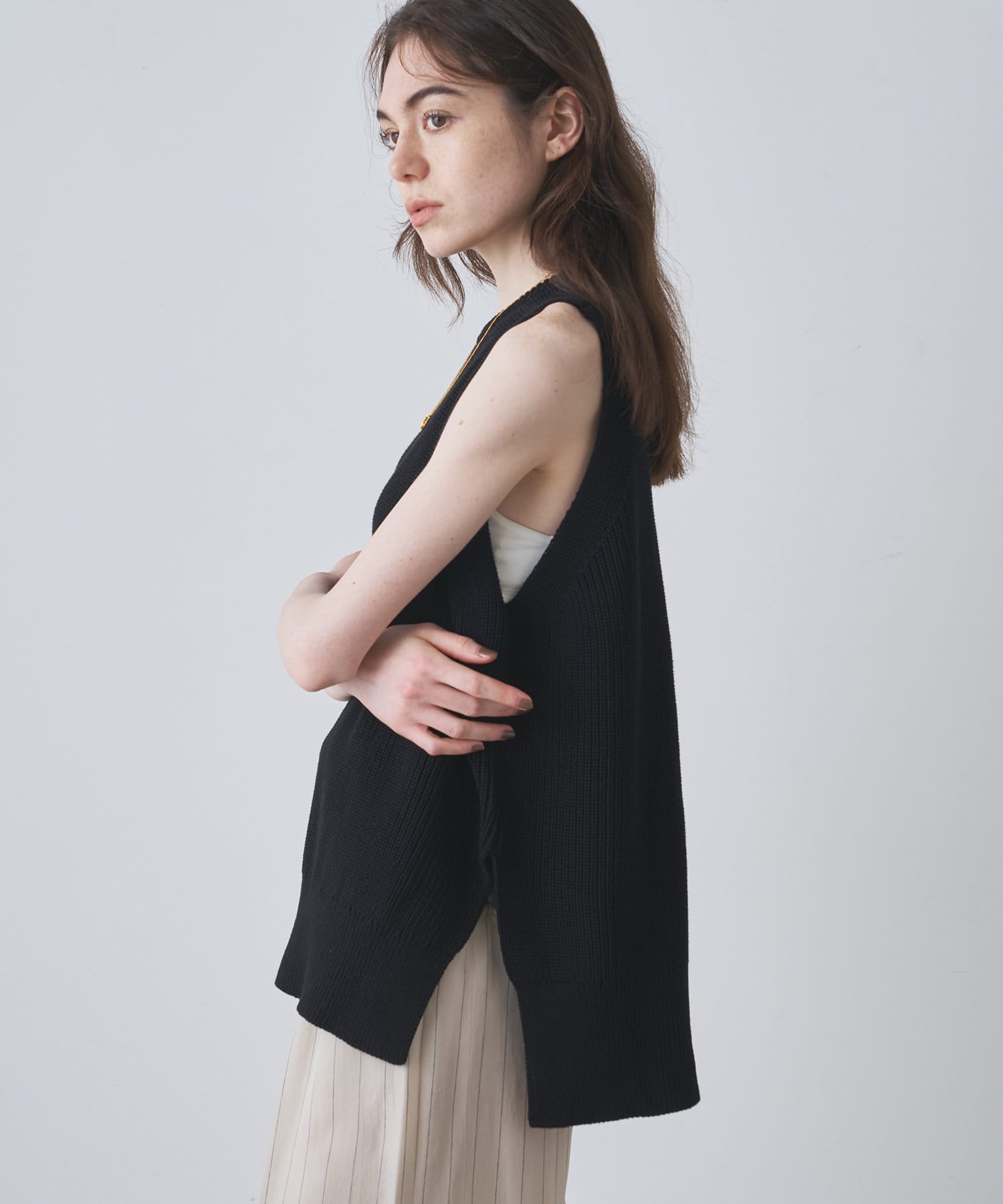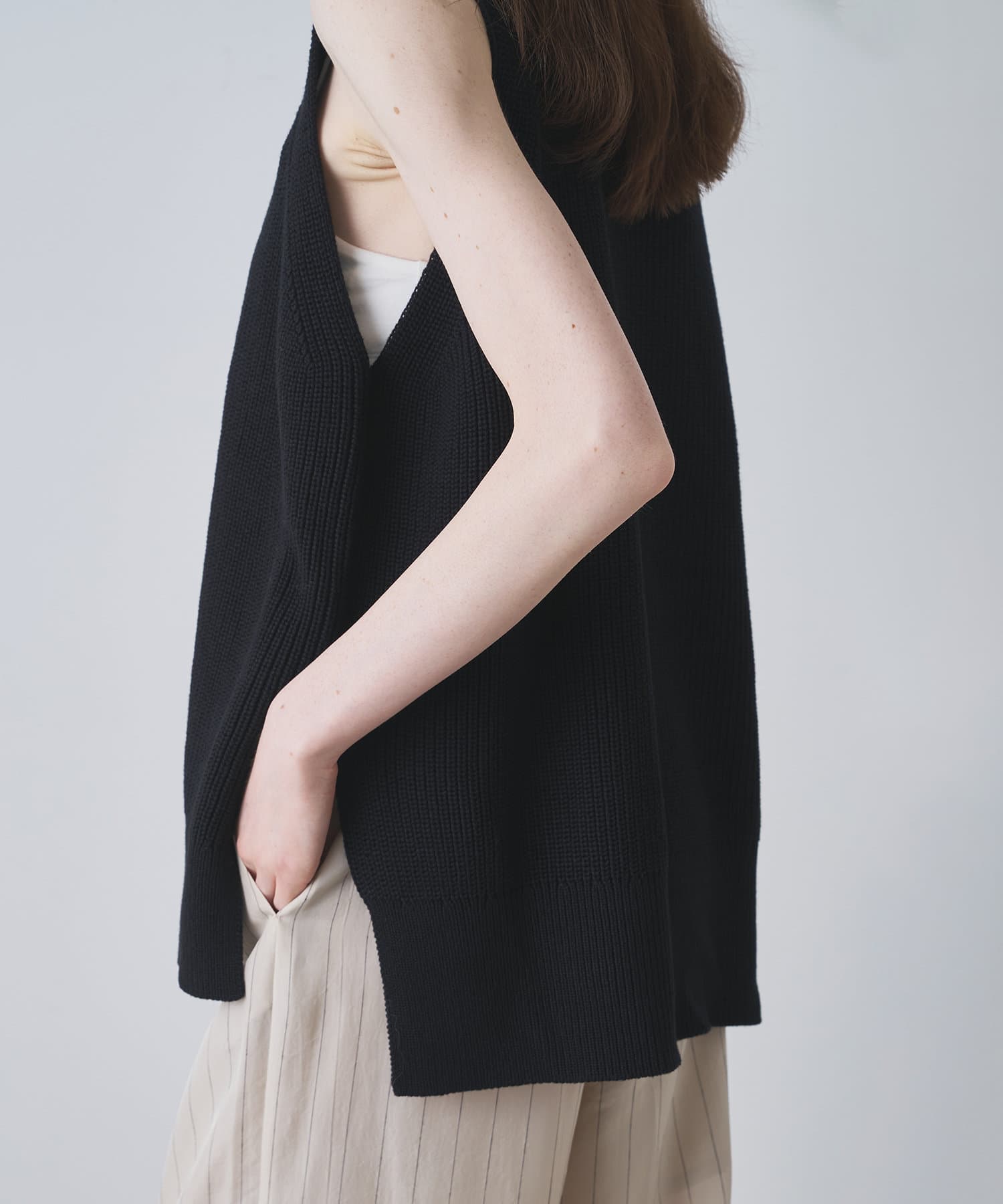 ■片畦編みの表情が一枚でもサマになるニットベスト。