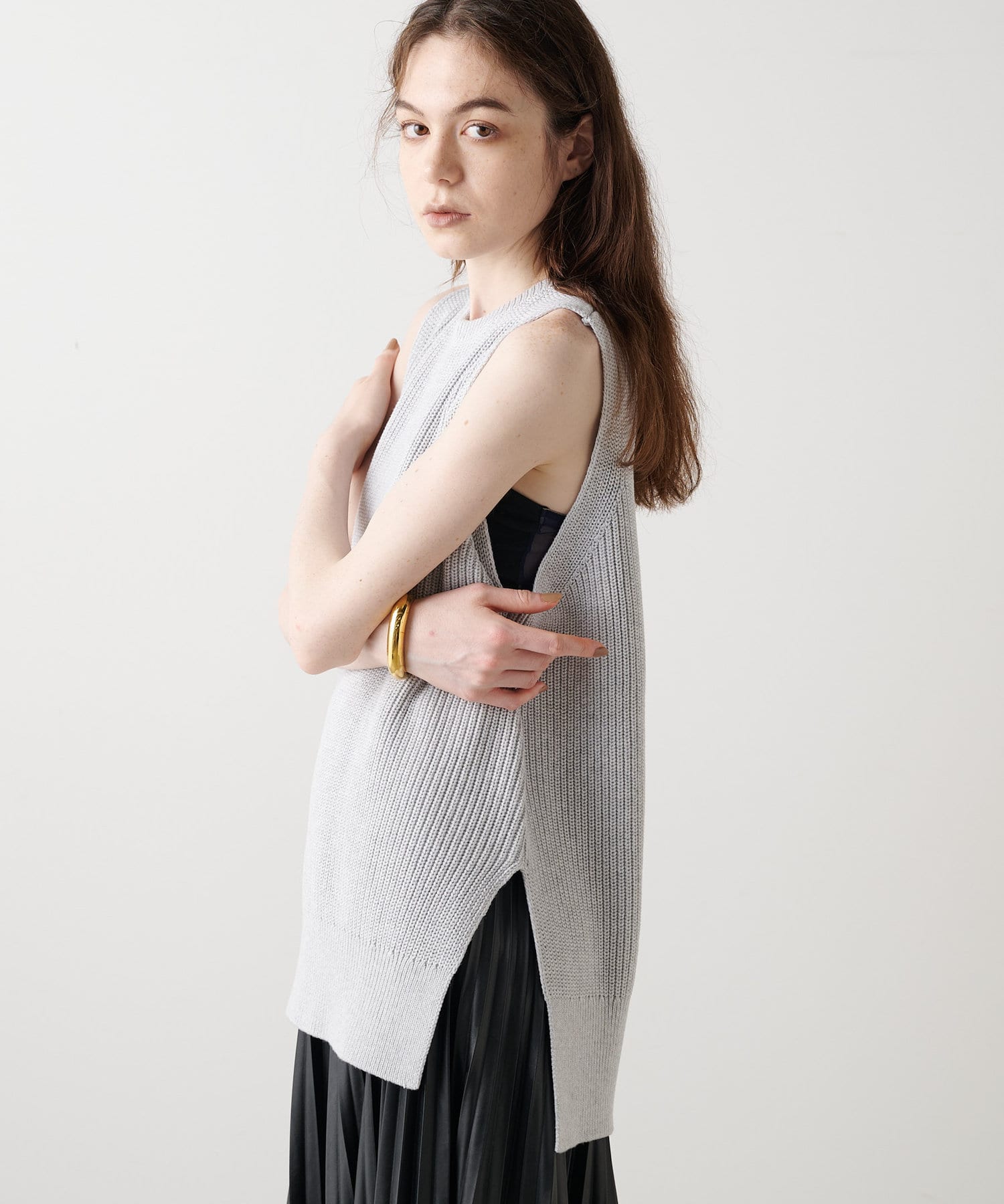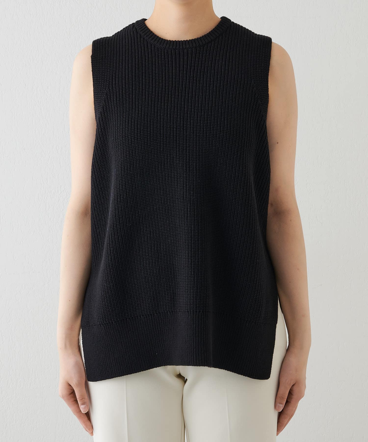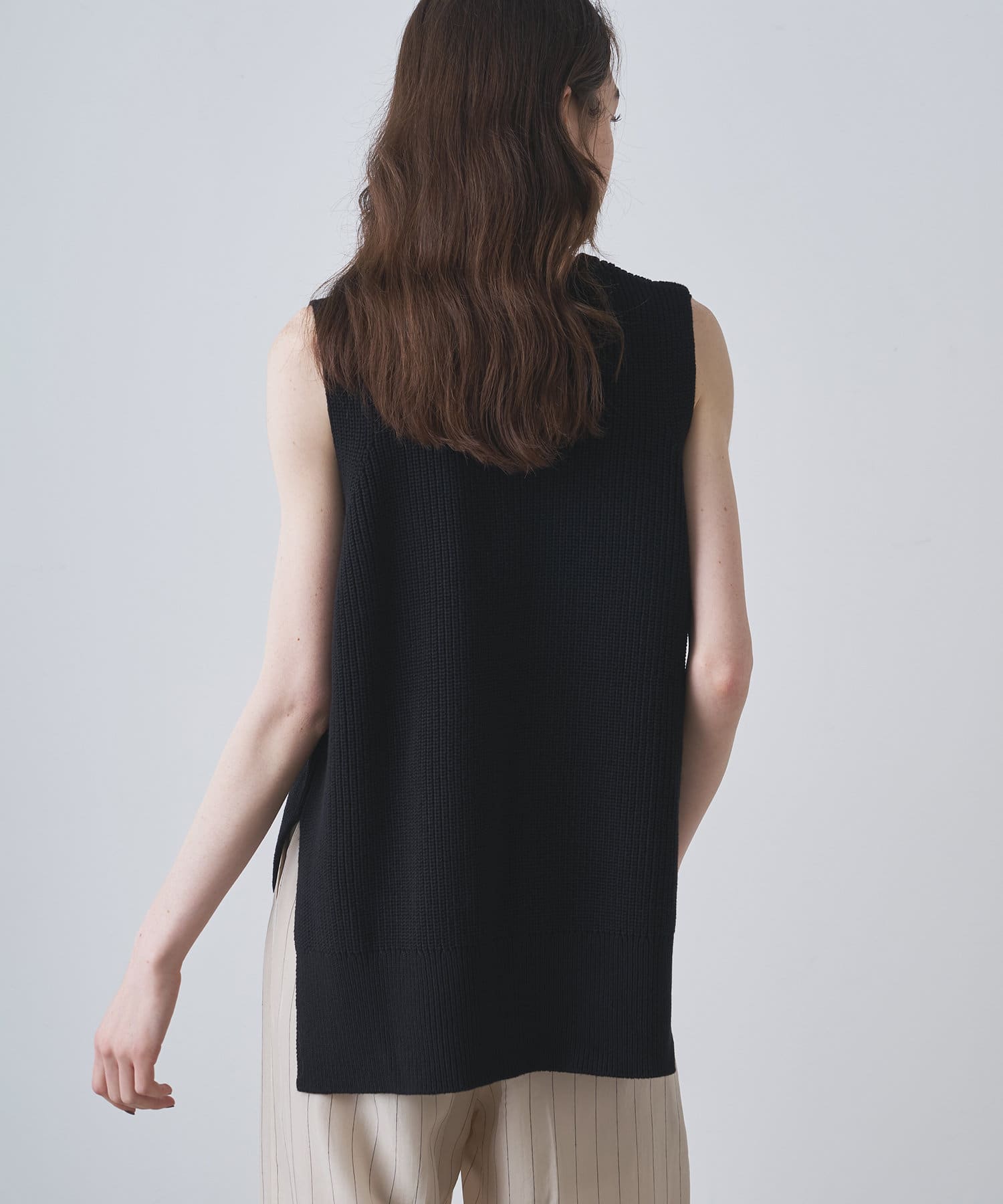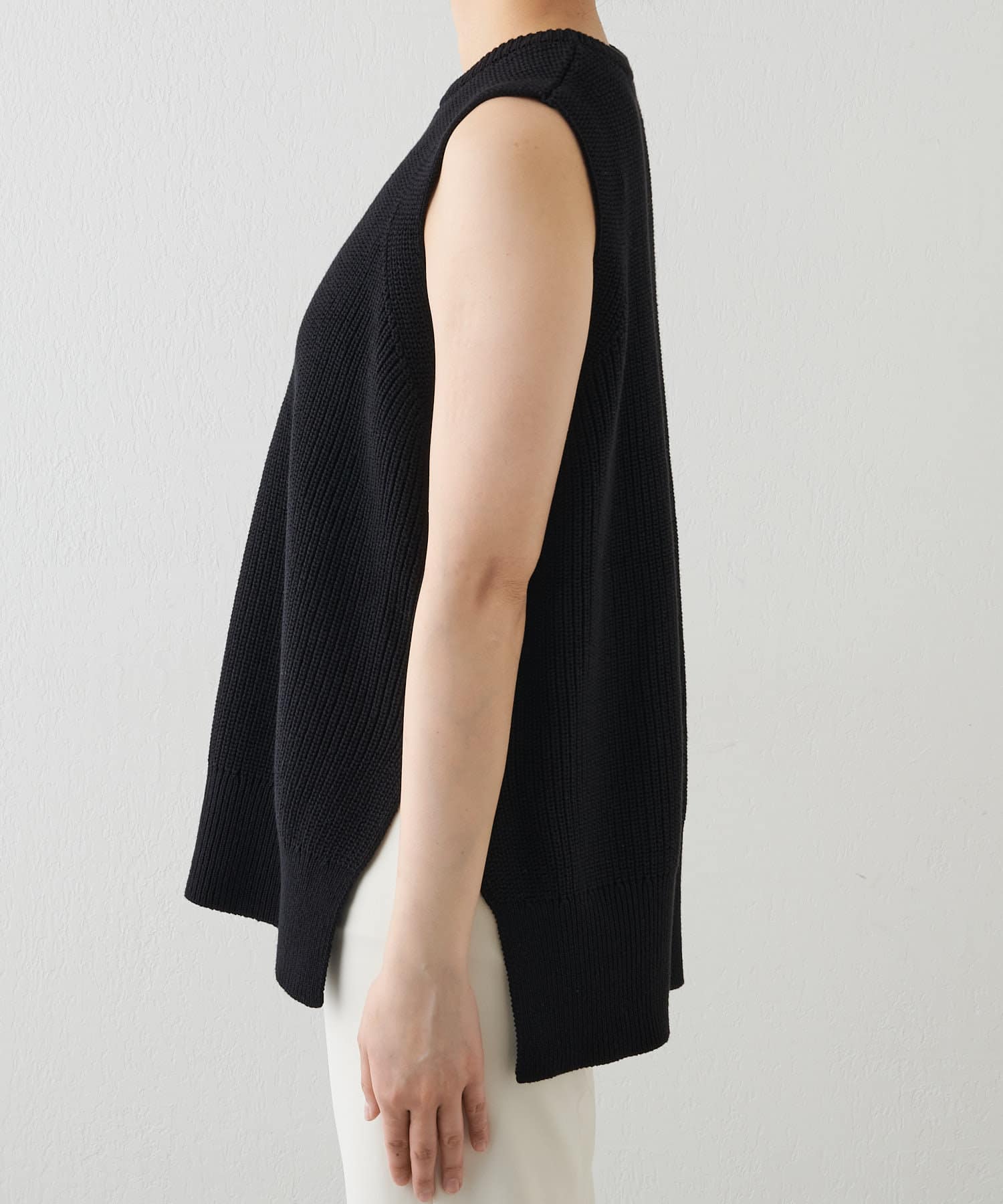 ■片畦編みの表情が一枚でもサマになるニットベスト。