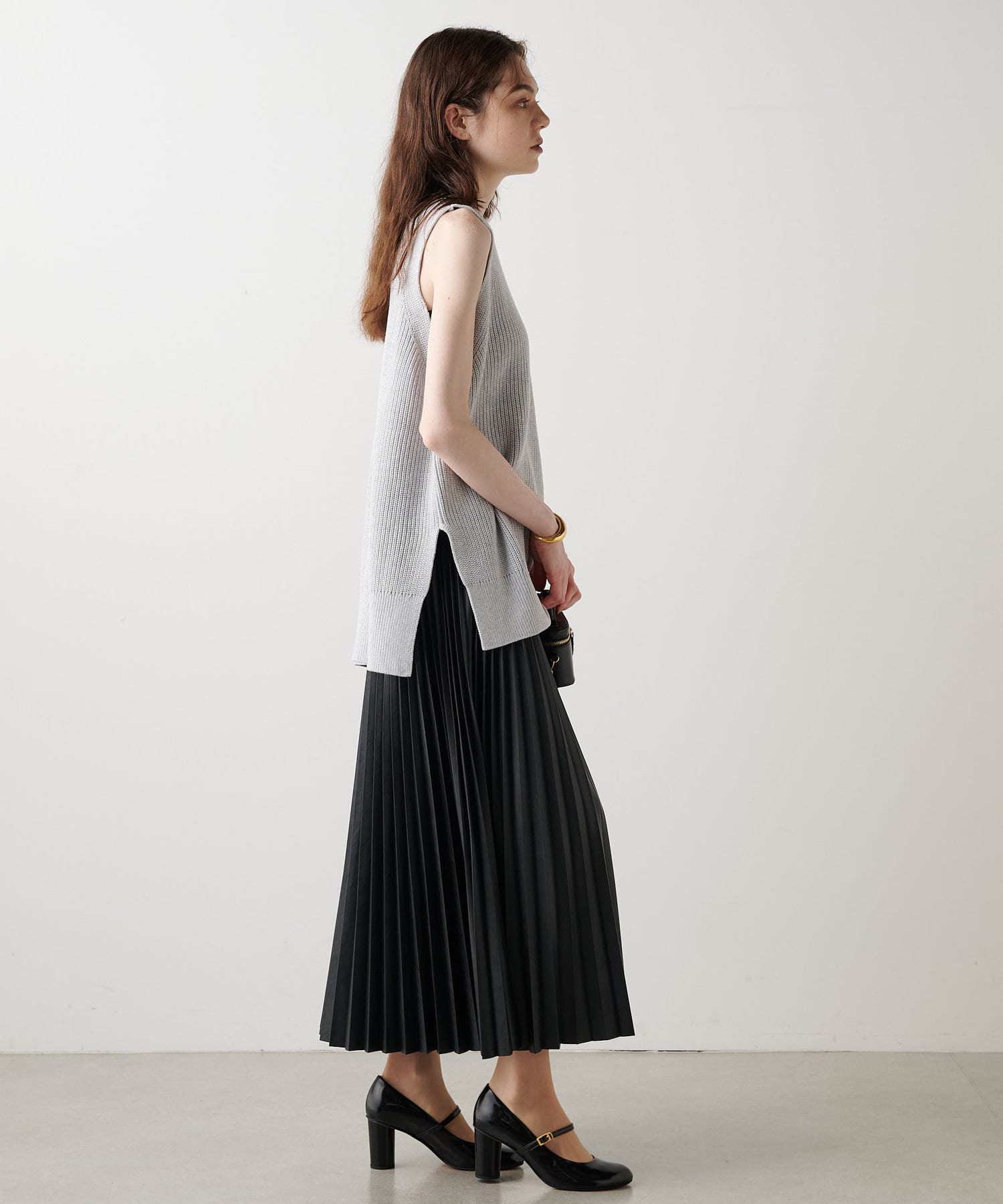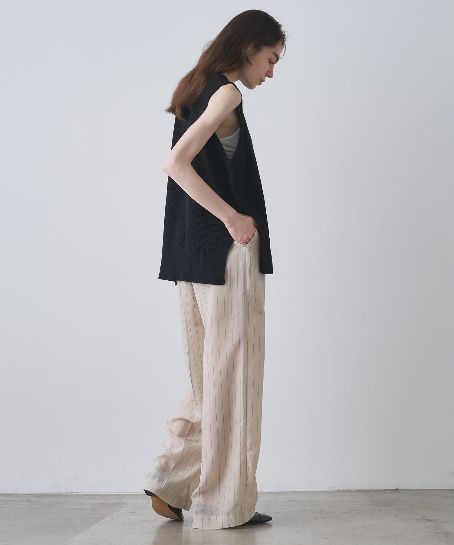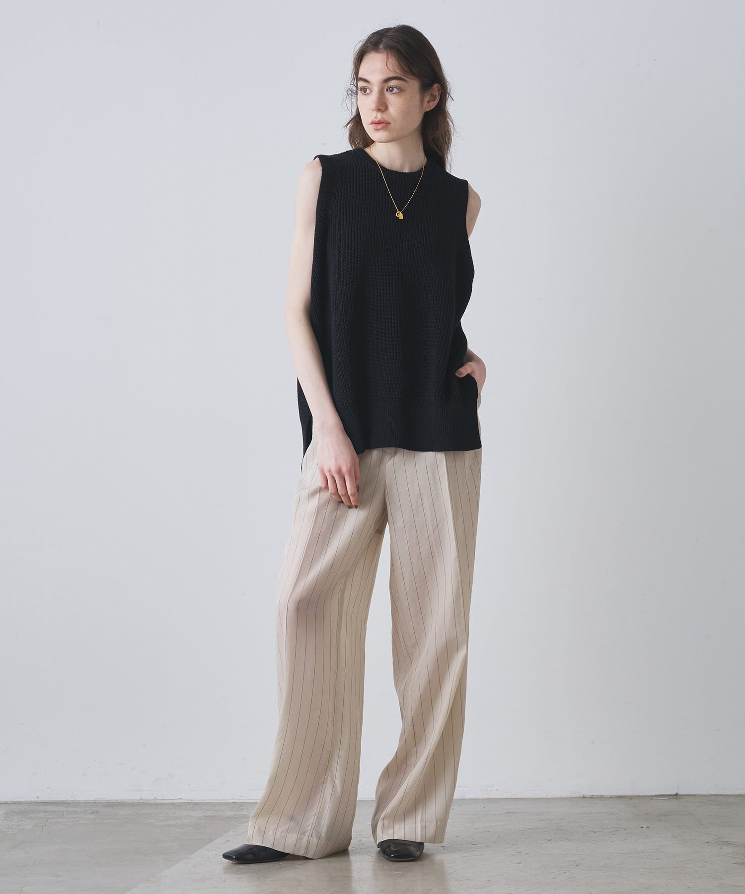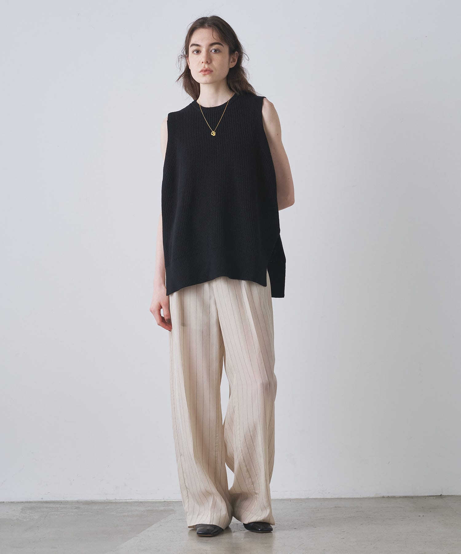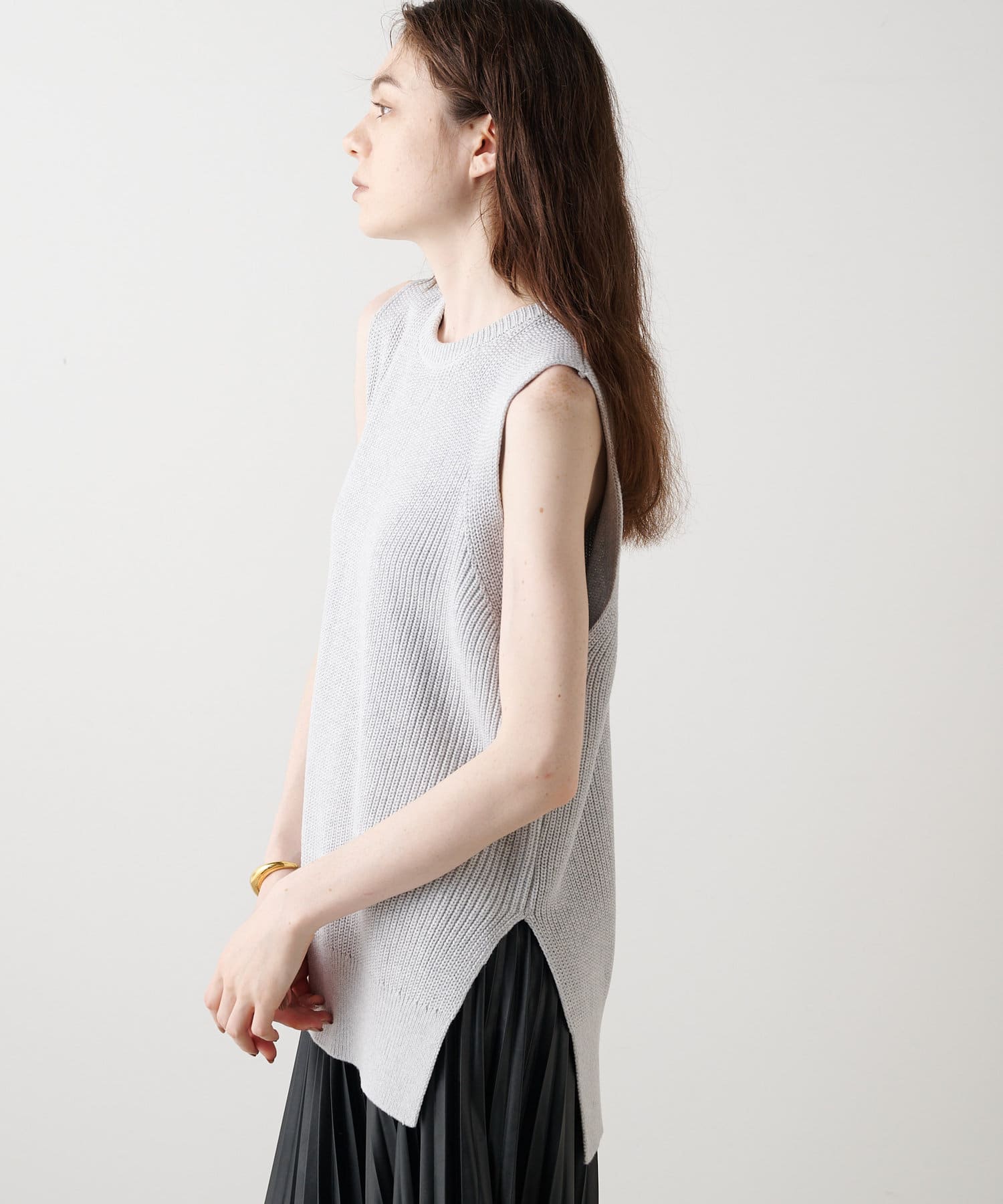 ■片畦編みの表情が一枚でもサマになるニットベスト。
