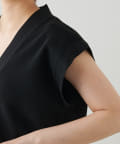 Vネックのラインが深すぎないのもよかったです。ボトムの形も選ばないトップスだと思います。