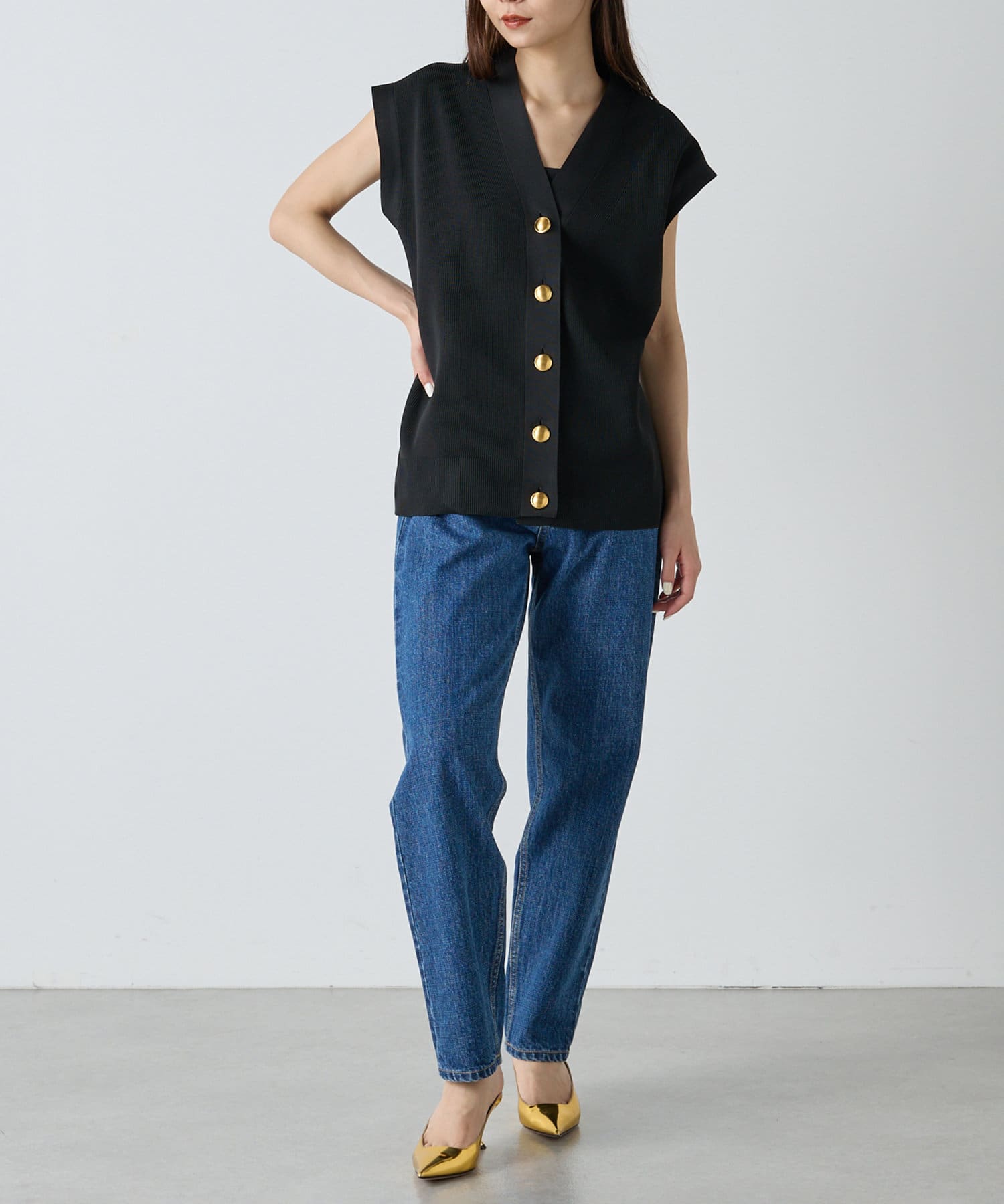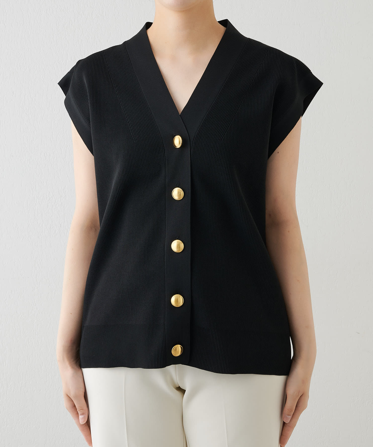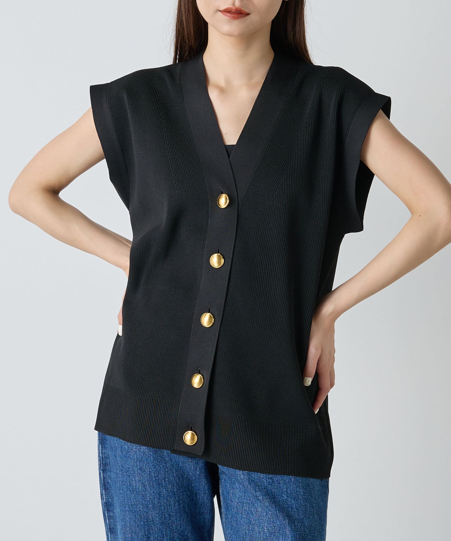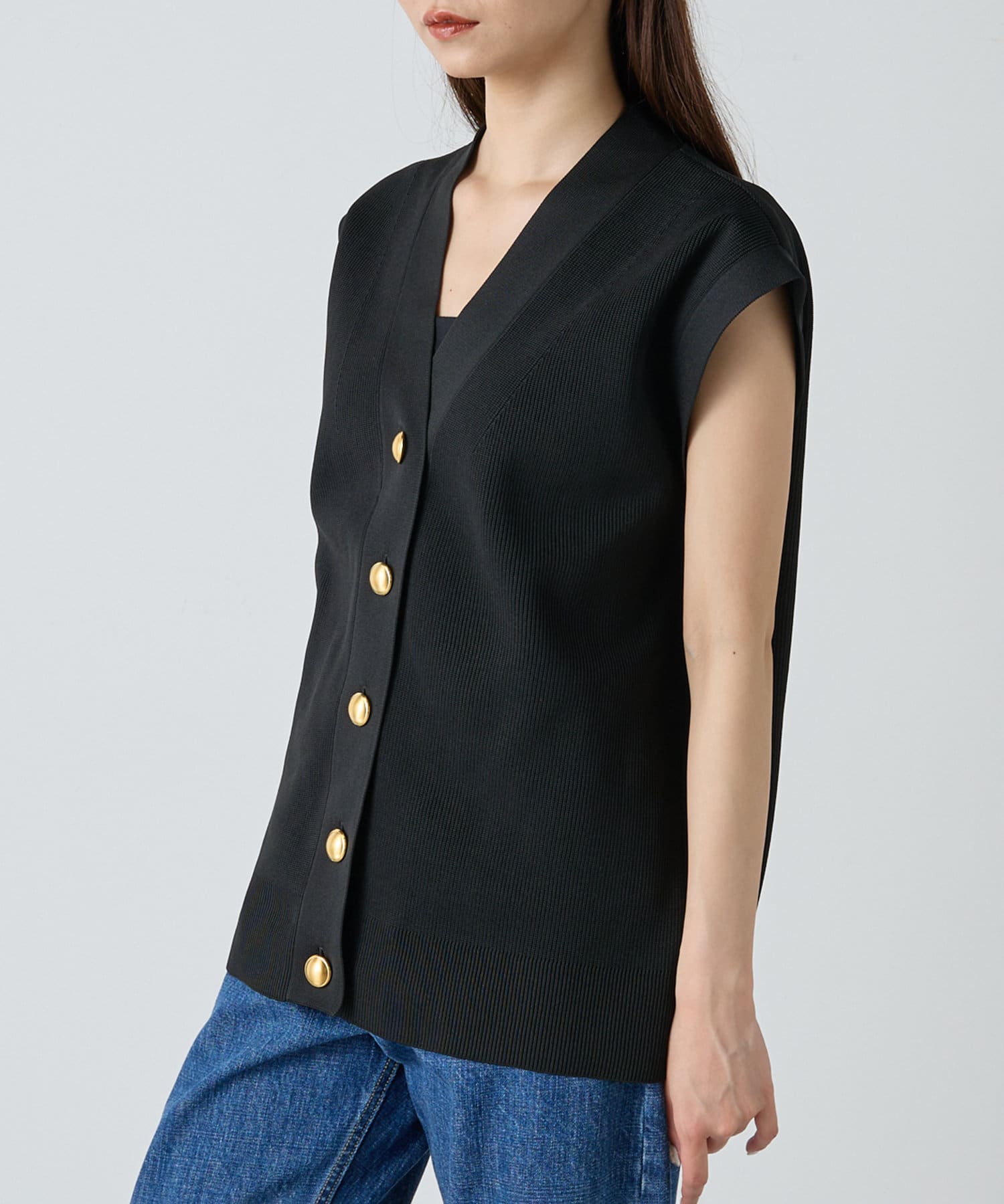 ■上品な輝きの金ボタンが印象的なニットベスト。