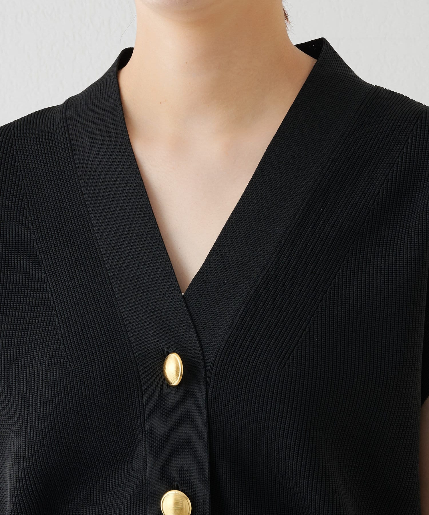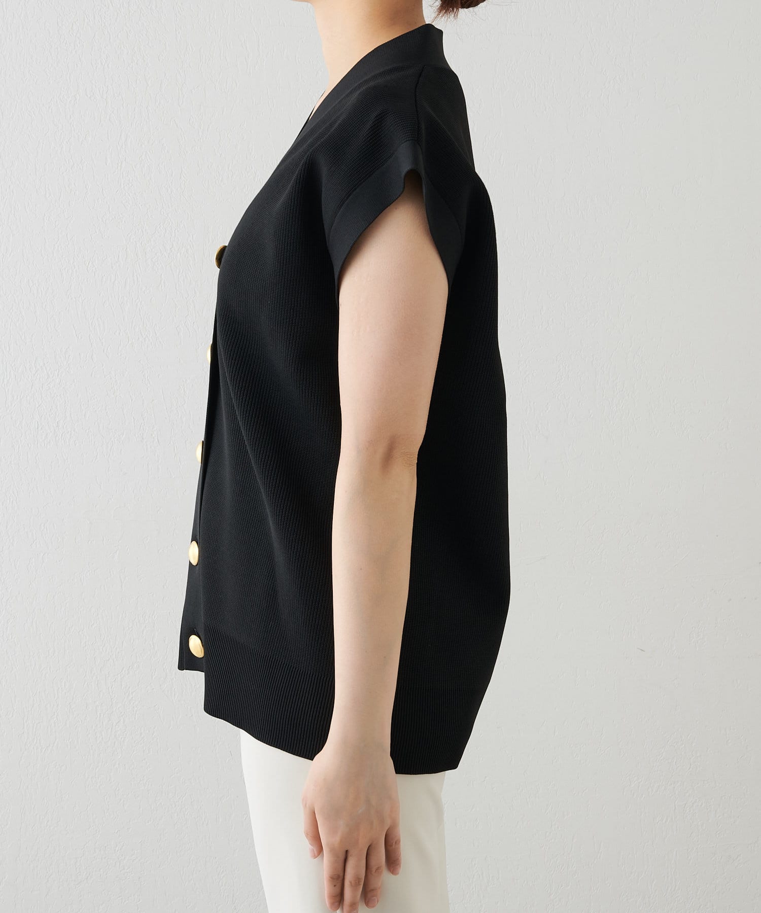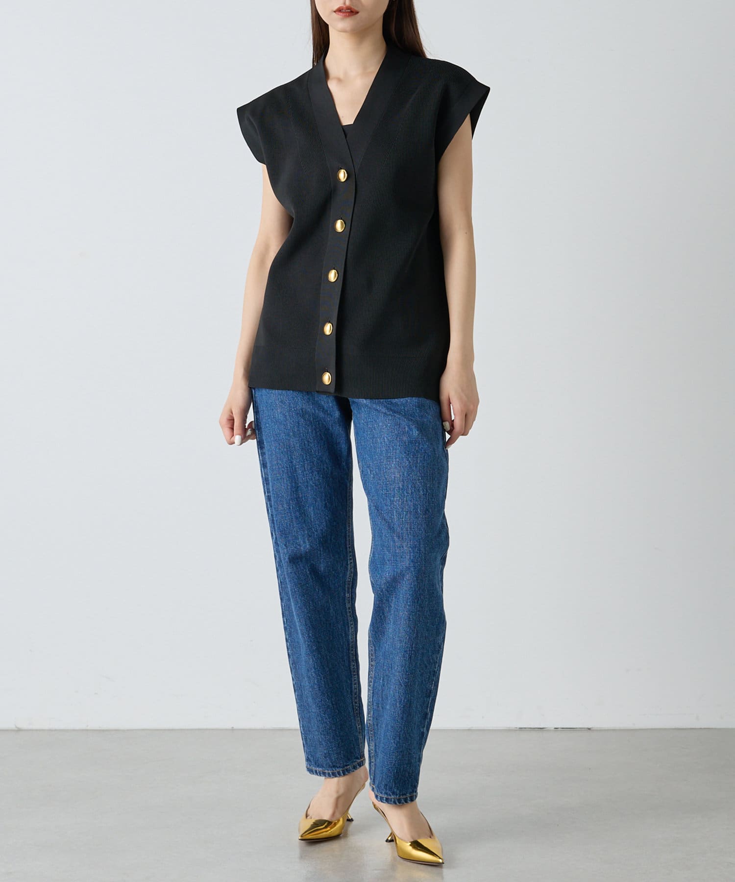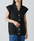 ■上品な輝きの金ボタンが印象的なニットベスト。