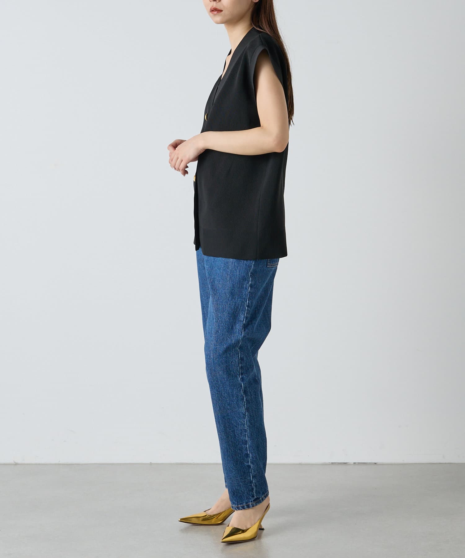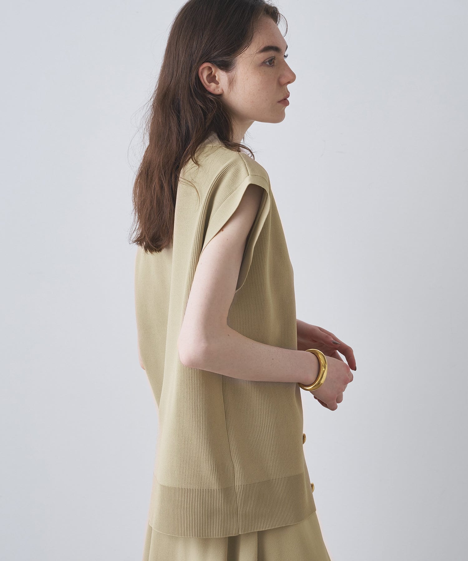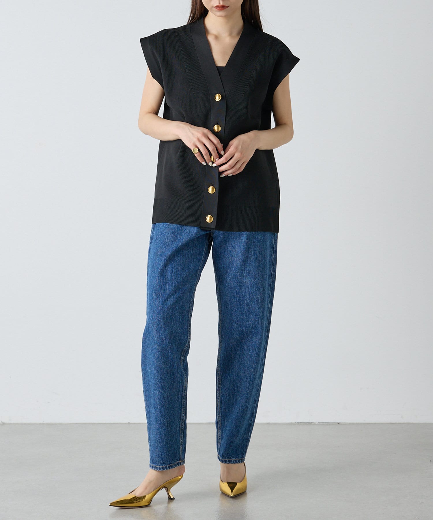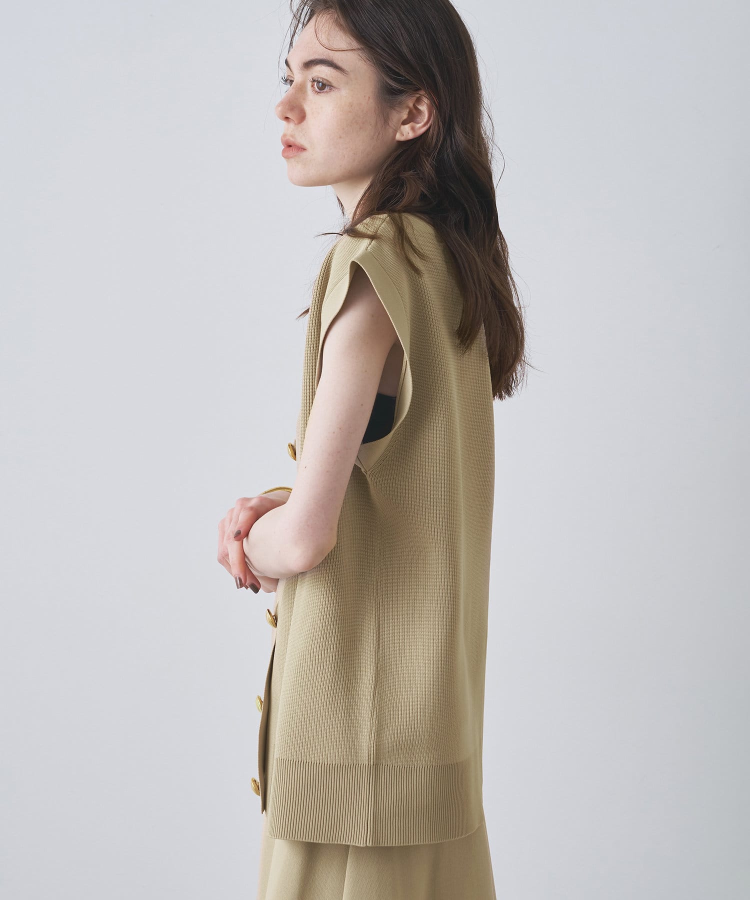■上品な輝きの金ボタンが印象的なニットベスト。