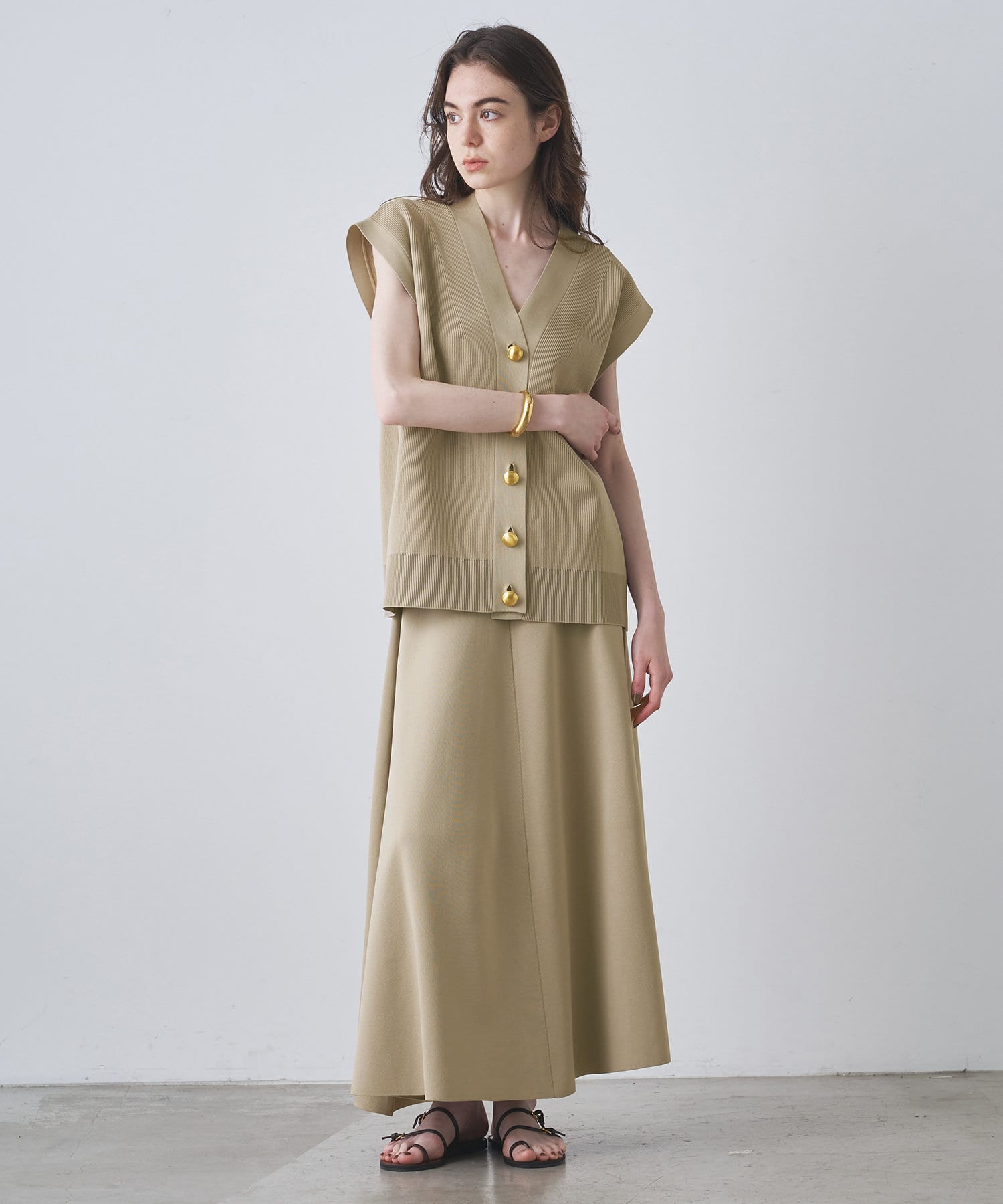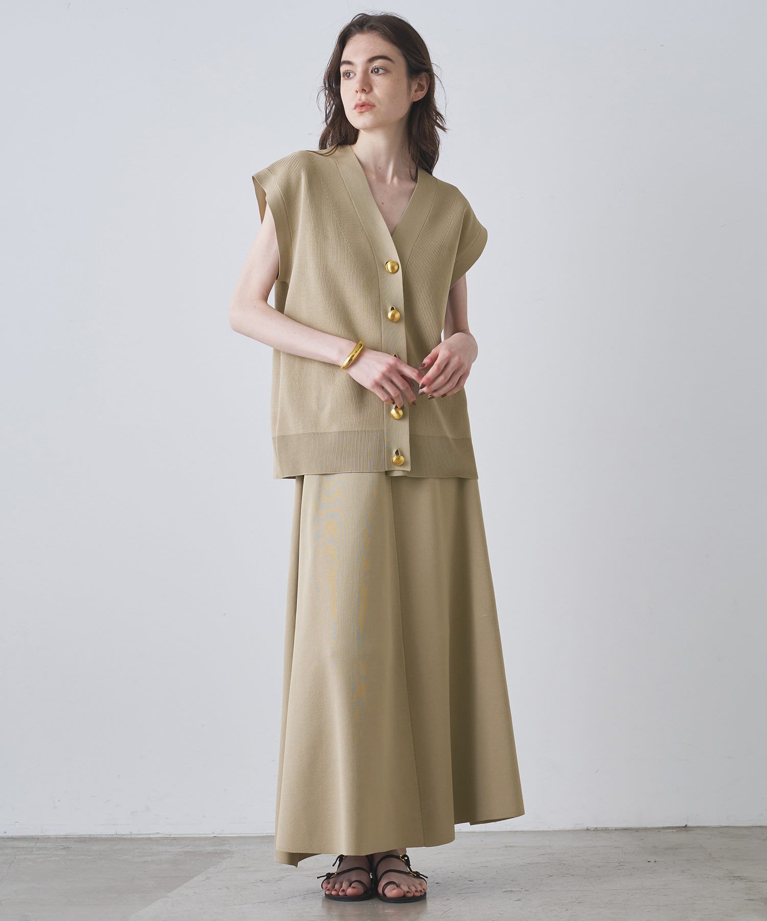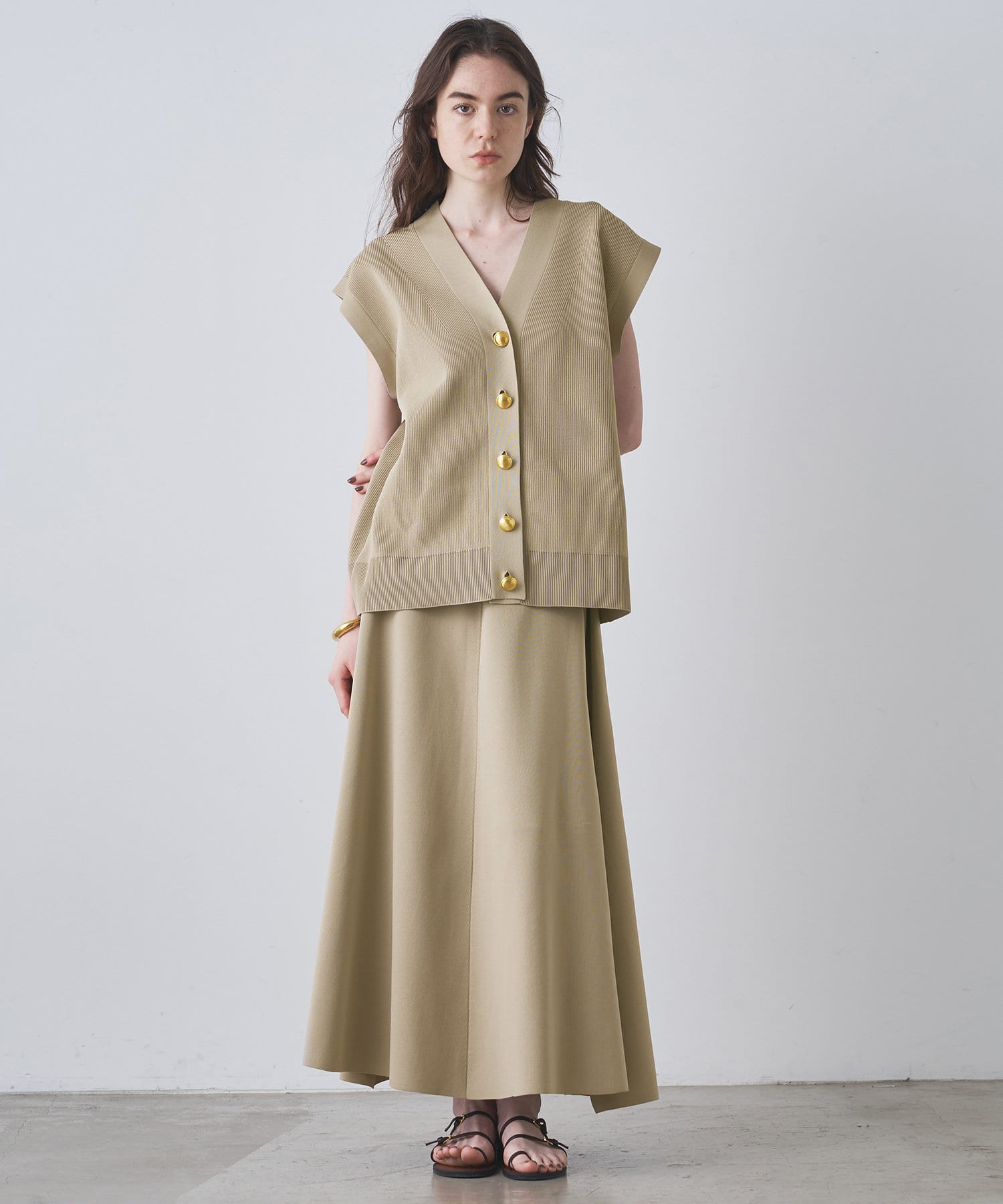 ■同素材のニットフレアスカート(ブランド品番:DNZ10A2101A0002)とのセットアップもおすすめ。