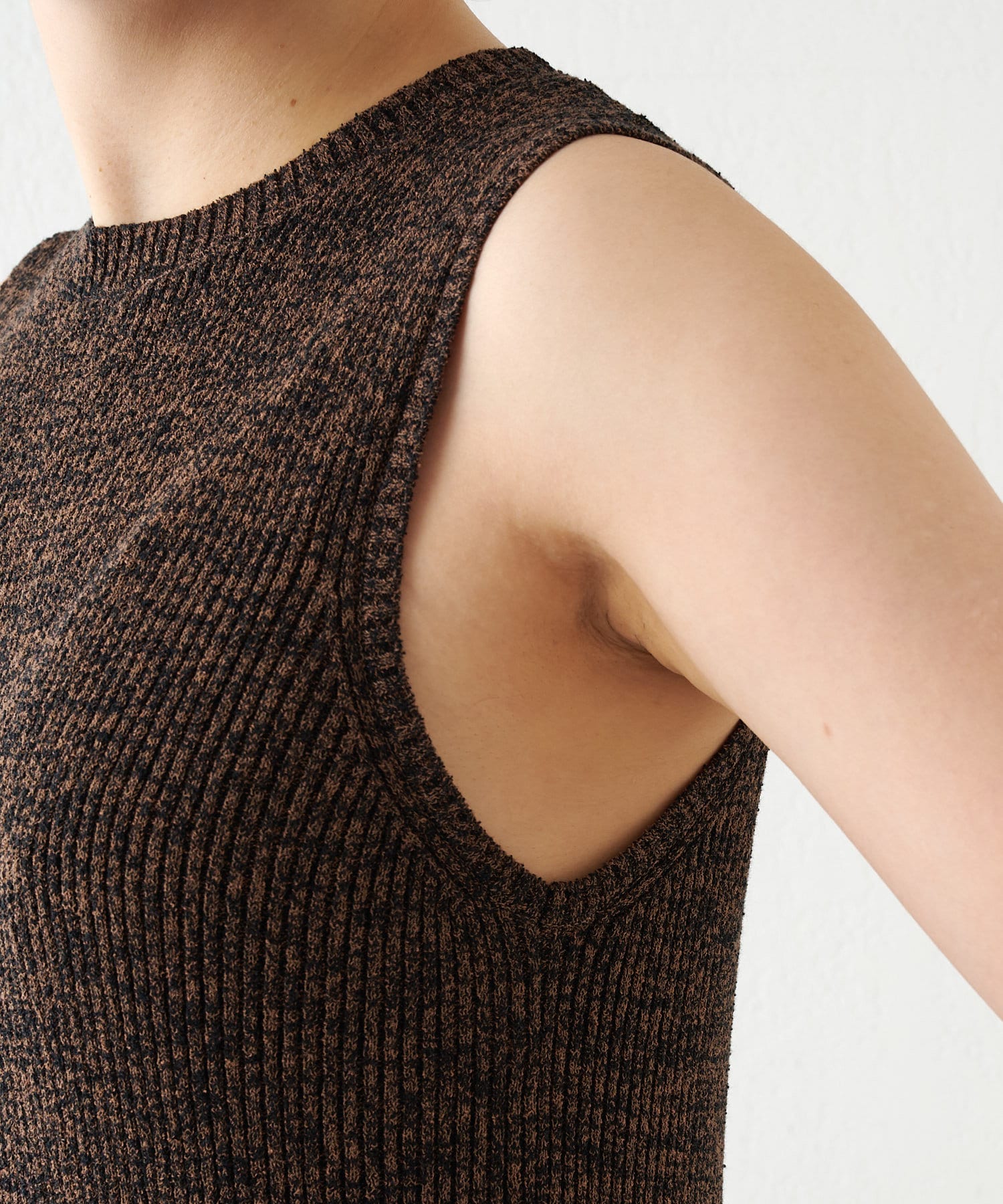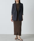 伸縮性があり、ストレスフリーです。着丈もあるので、高身長さんにもおすすめ◎ブラウンは表情のあるメランジがポイント。秋っぽいこっくりブラウンですが生地はコットンニットなので晩夏コーデにもピッタリです。