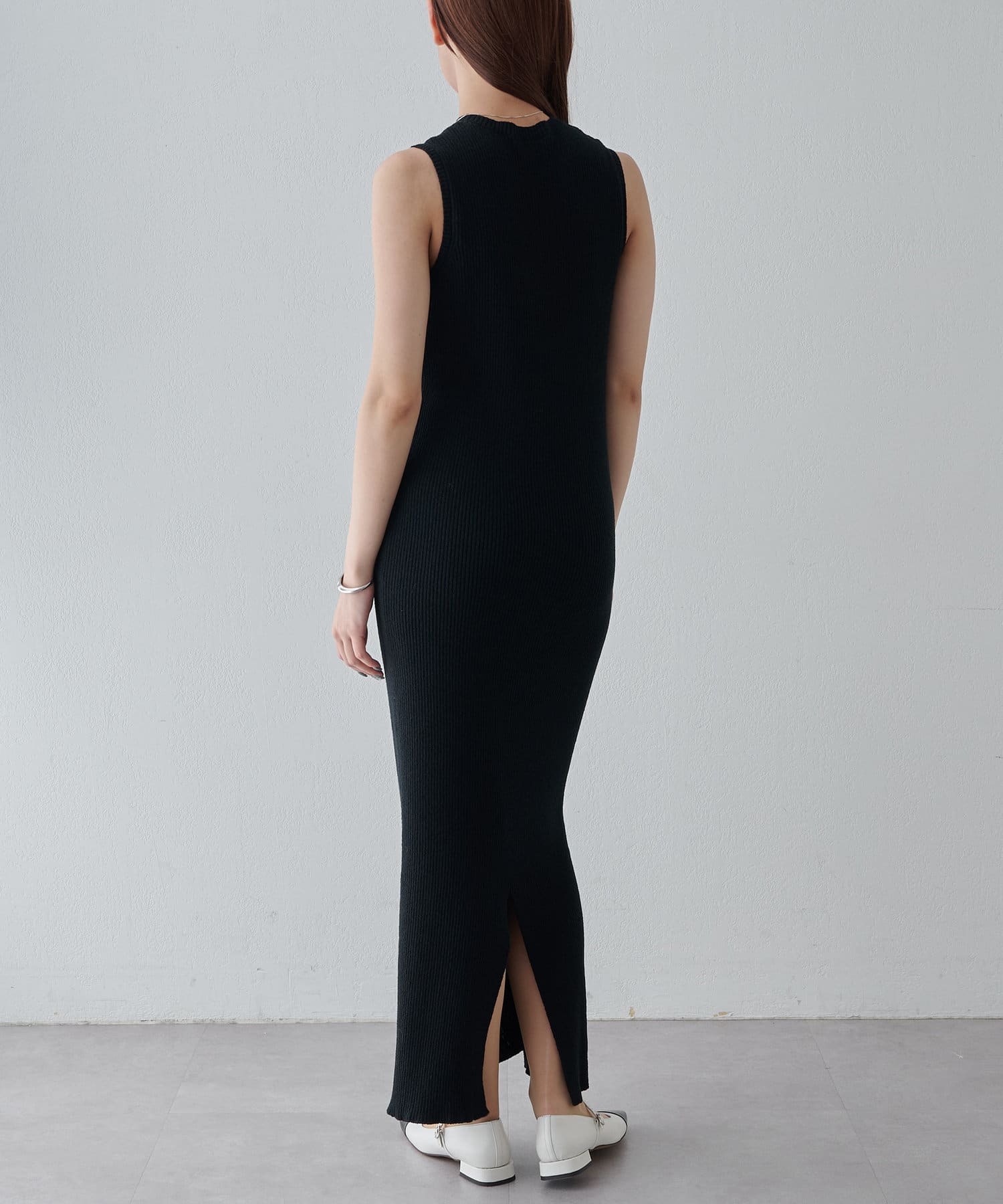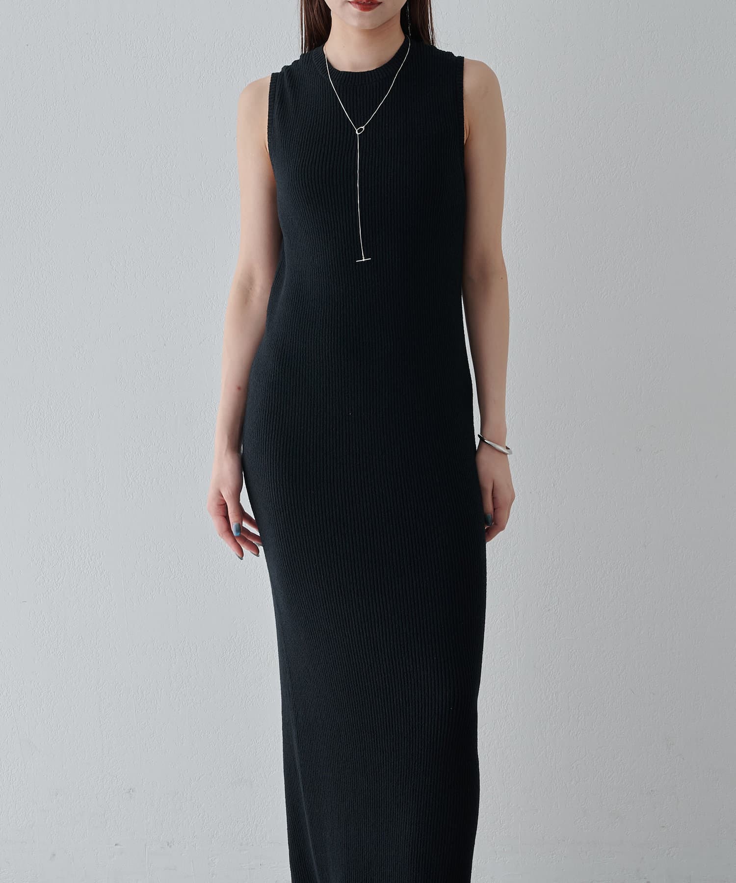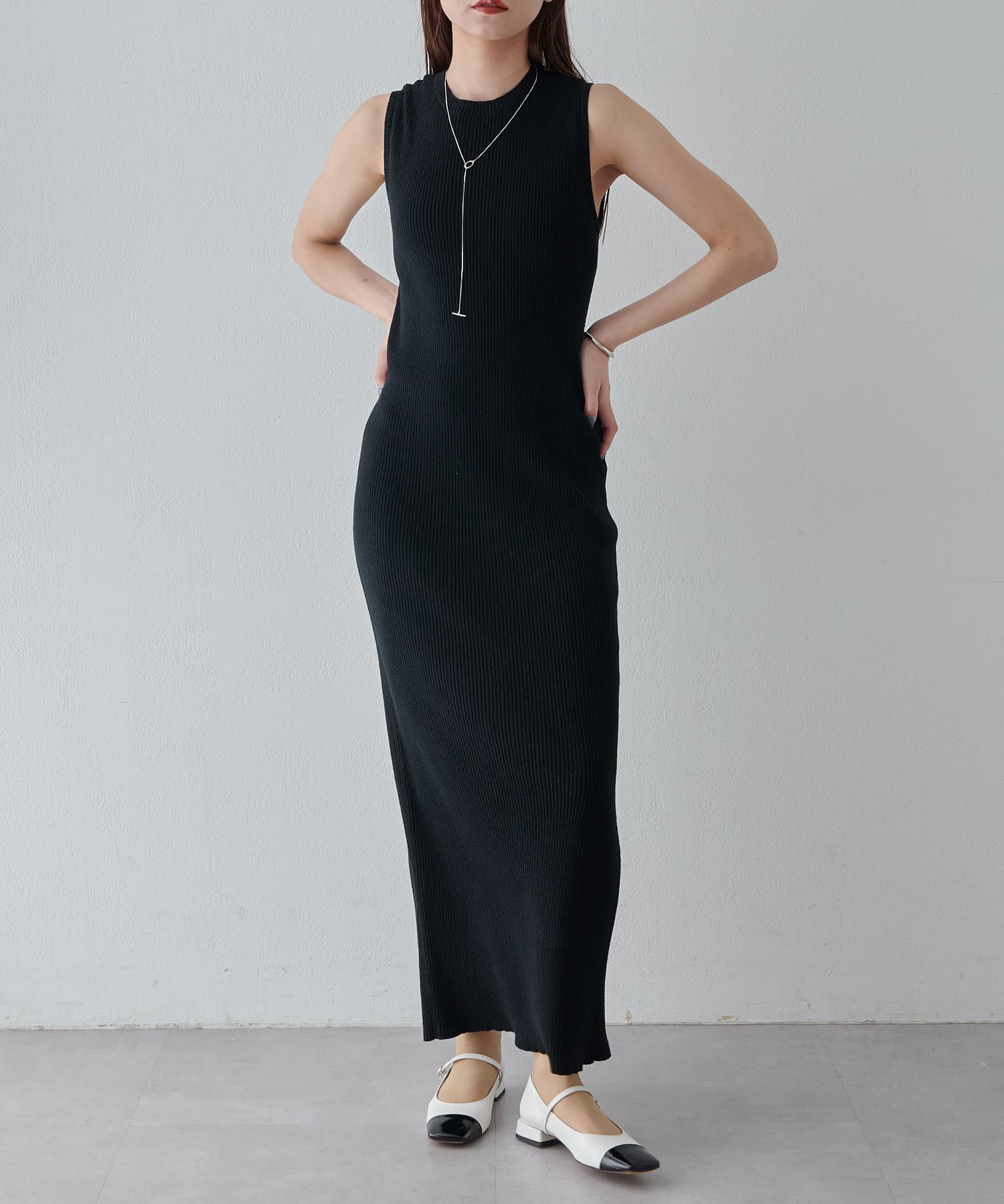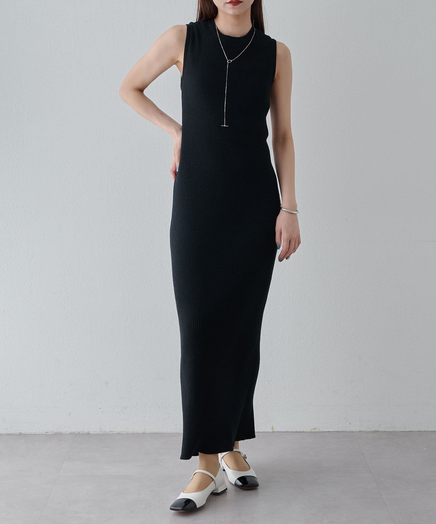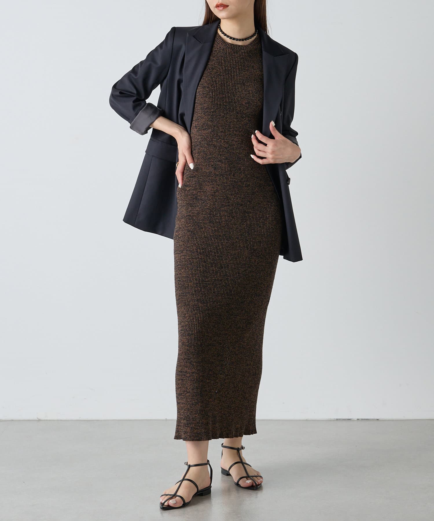 ■タイトなシルエットが女性らしいリブニットワンピース。