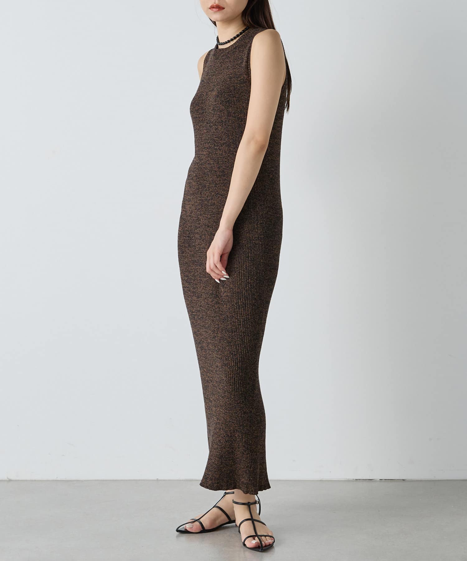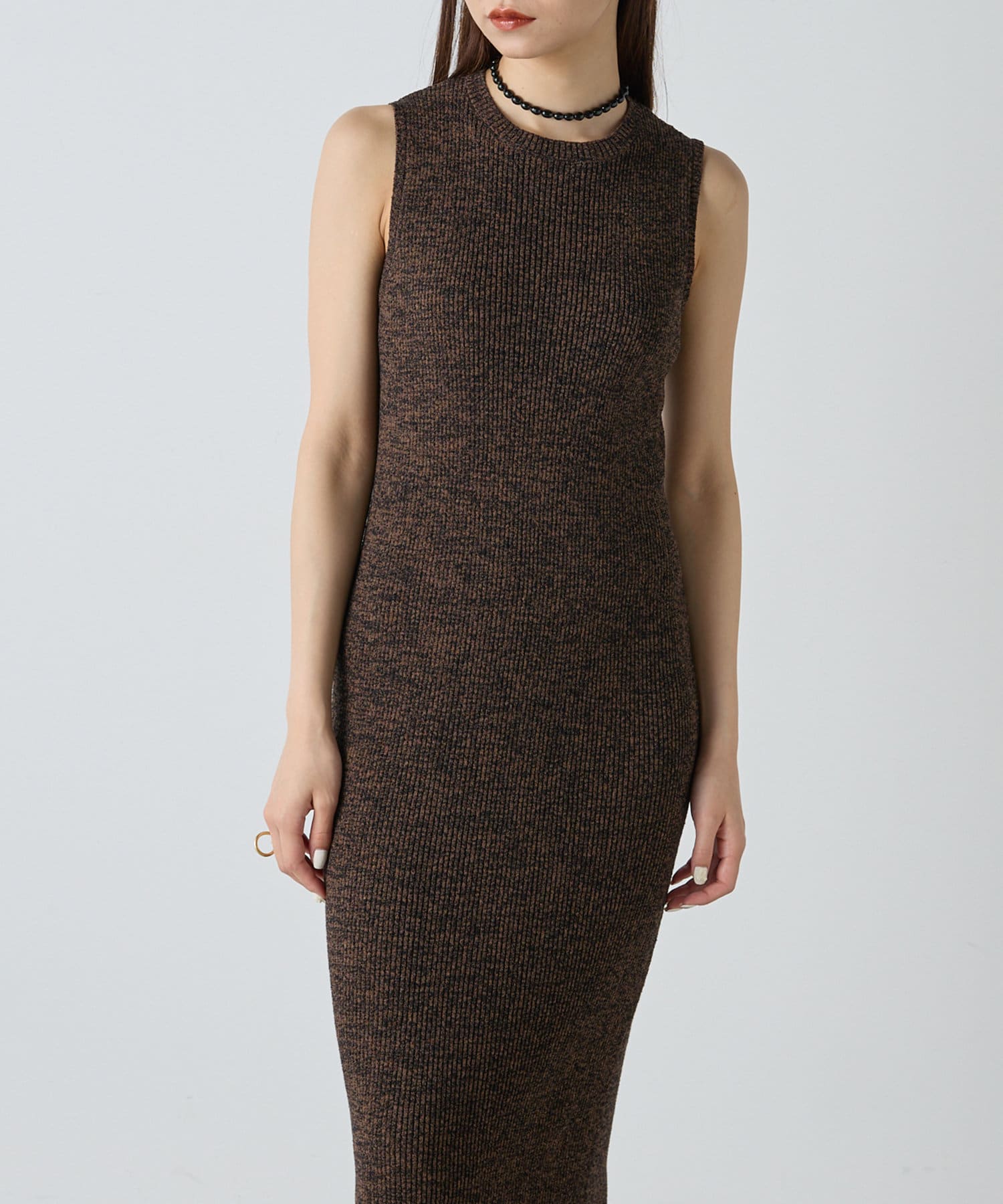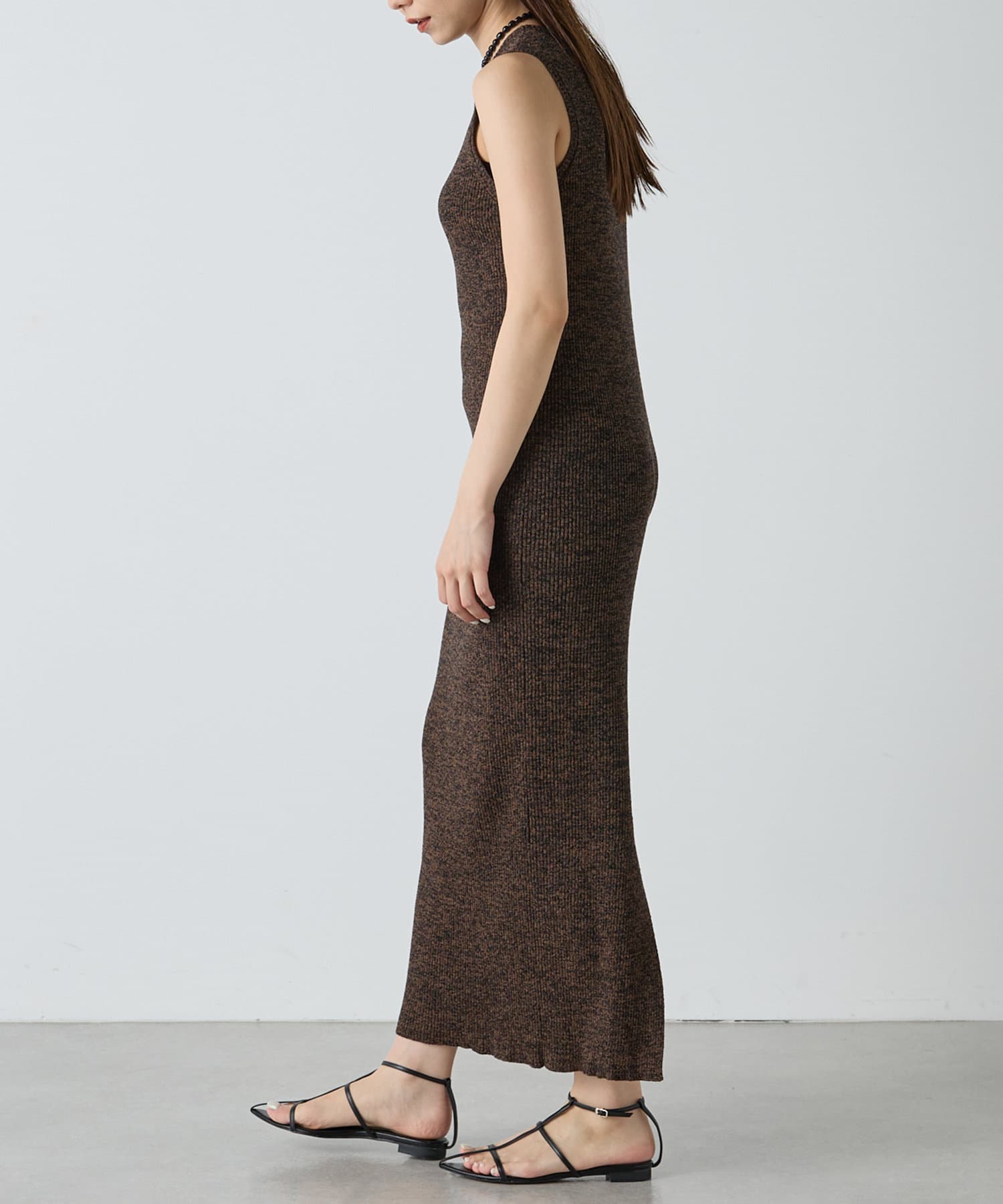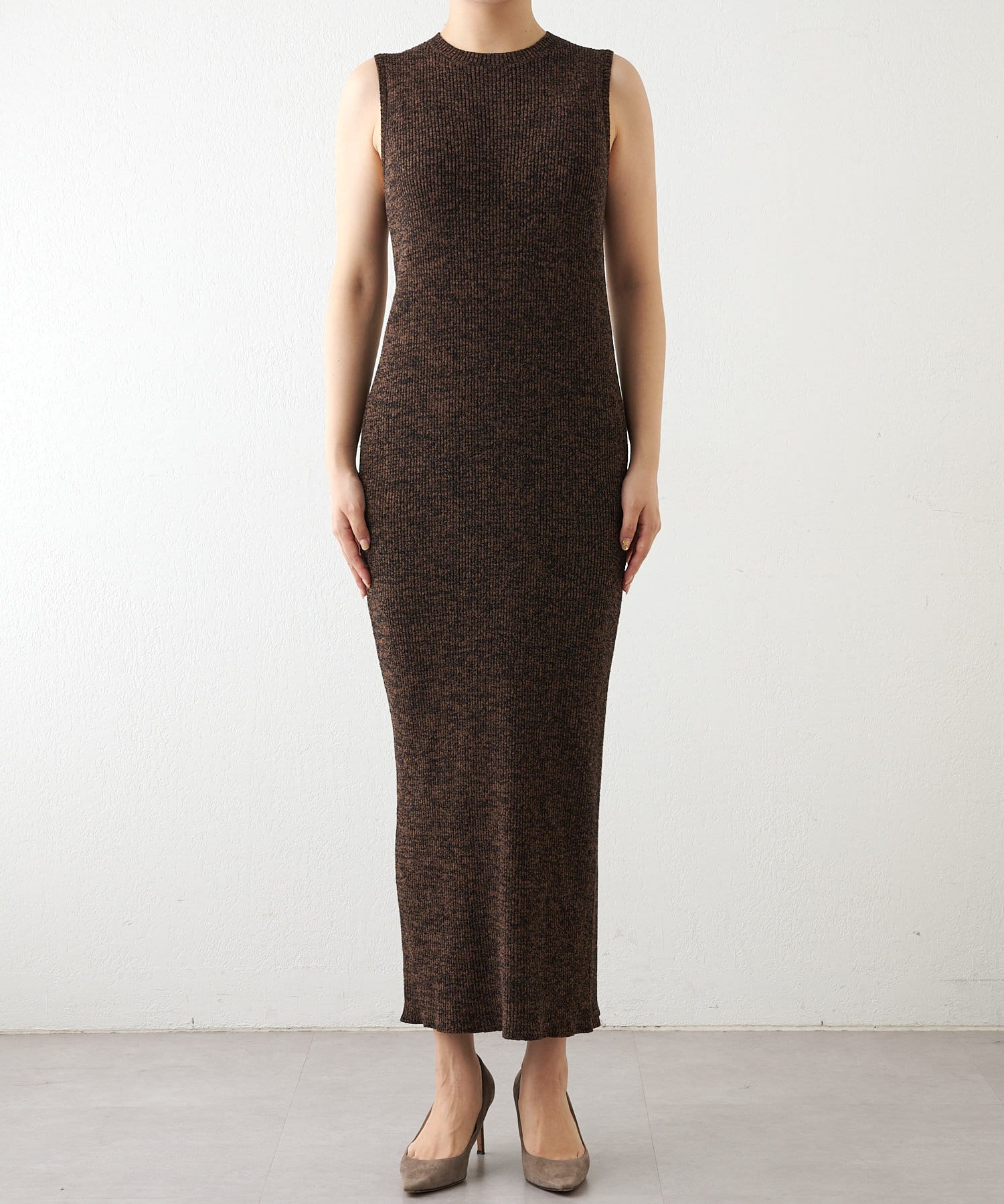 ■タイトなシルエットが女性らしいリブニットワンピース。
