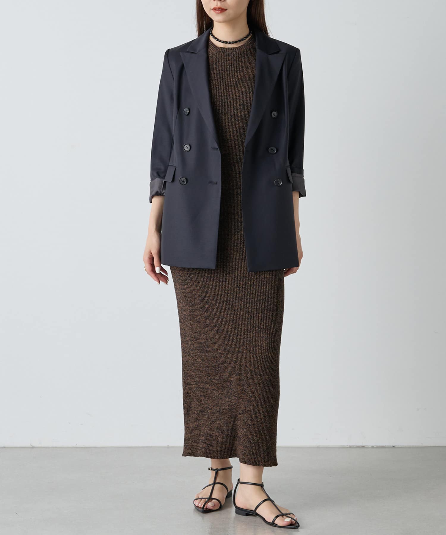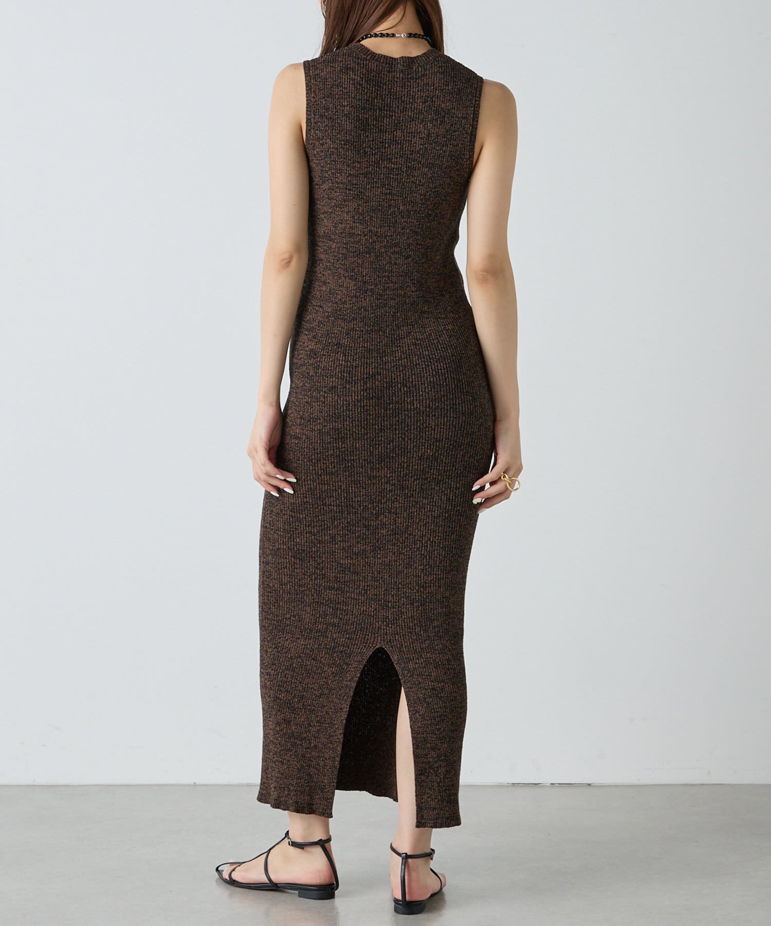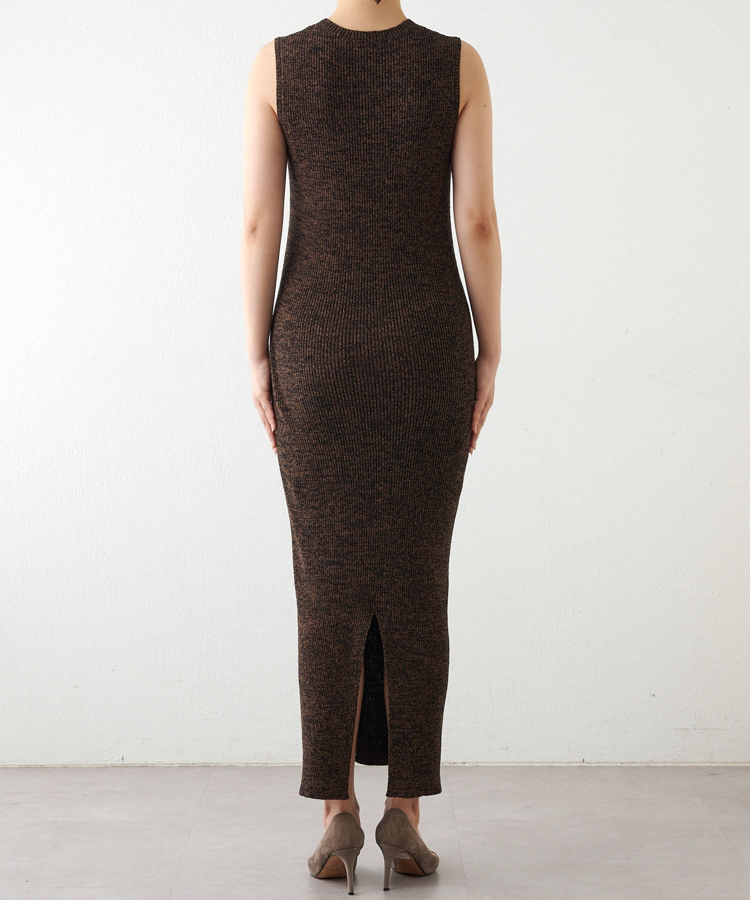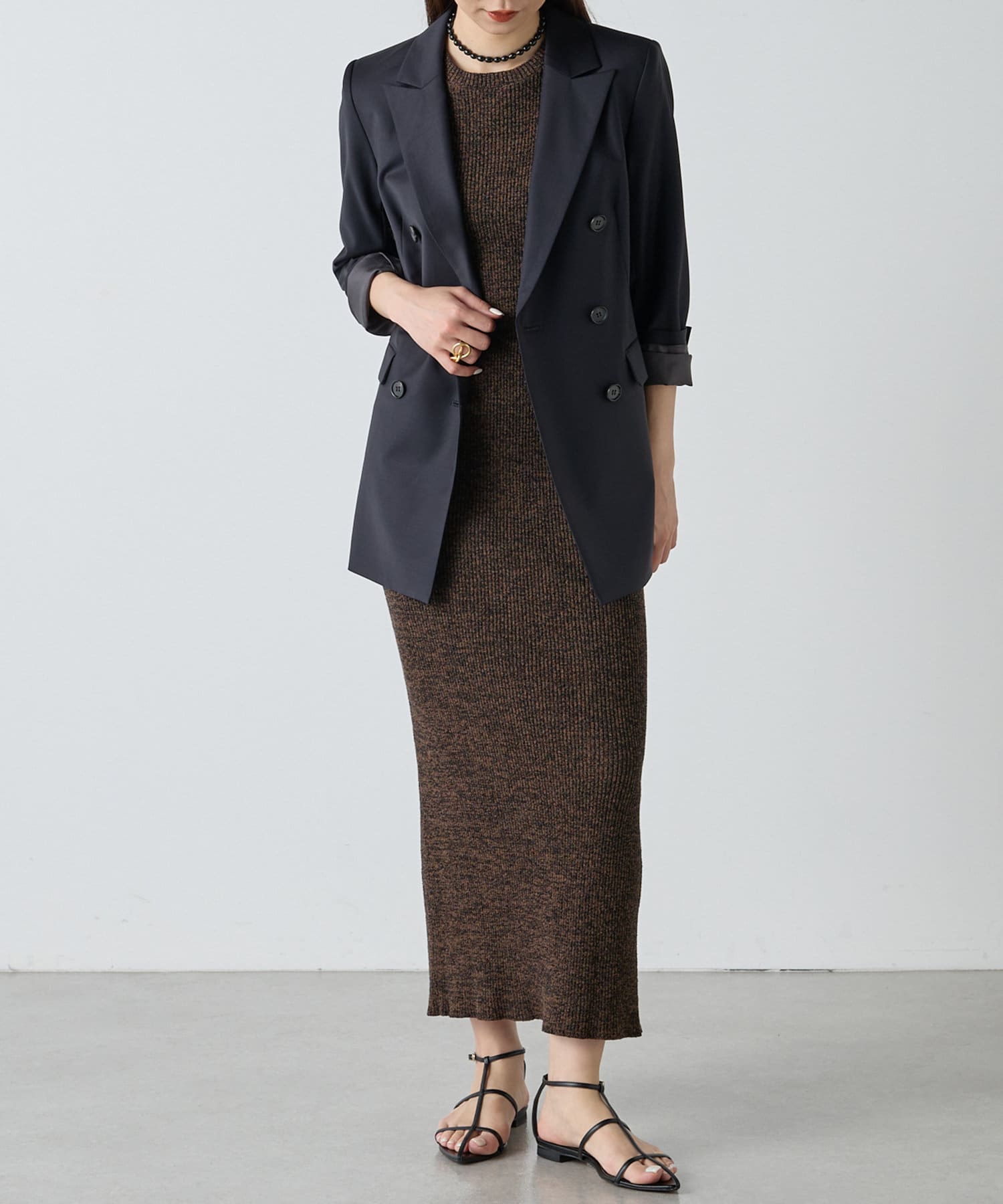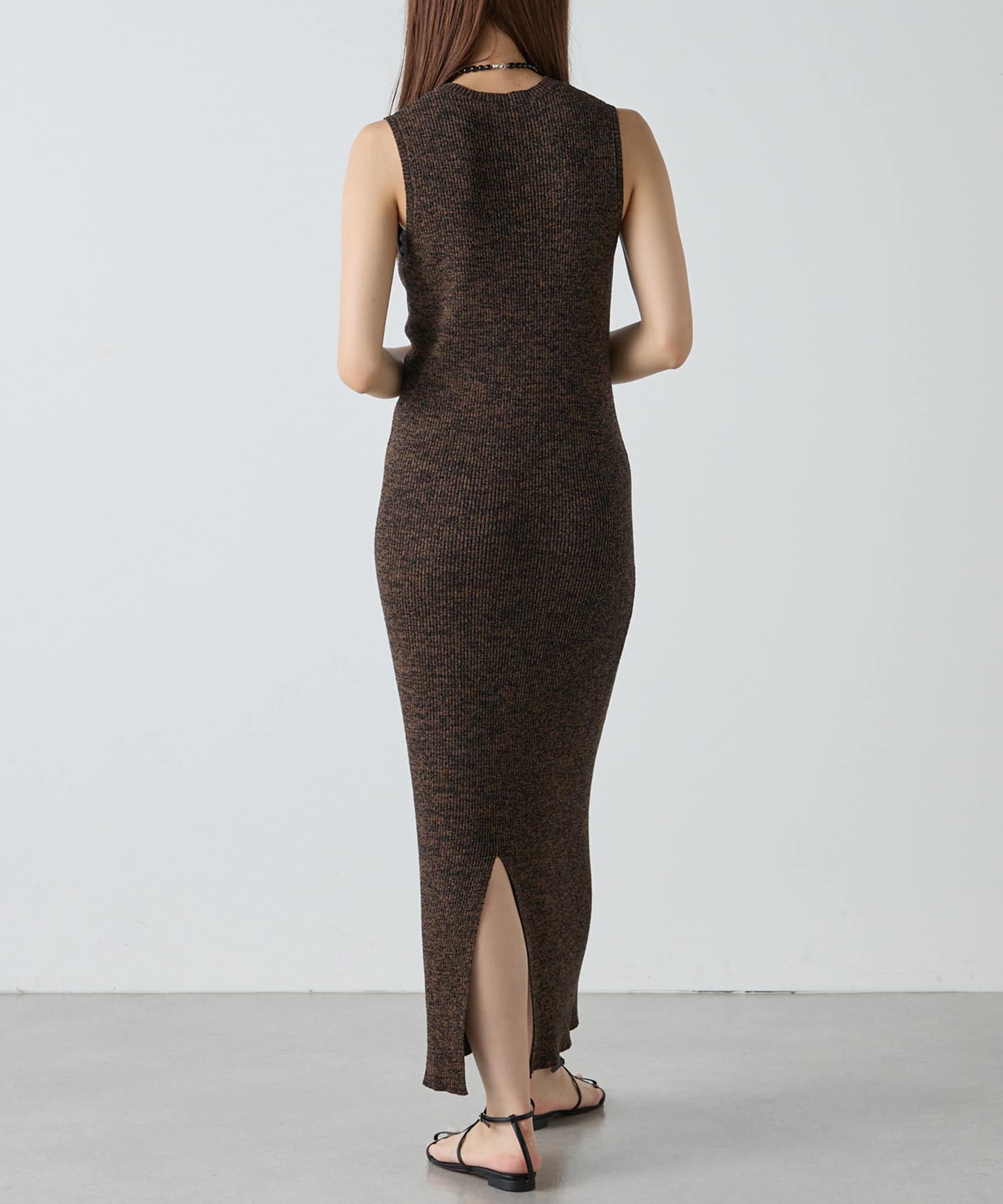 ■タイトなシルエットが女性らしいリブニットワンピース。