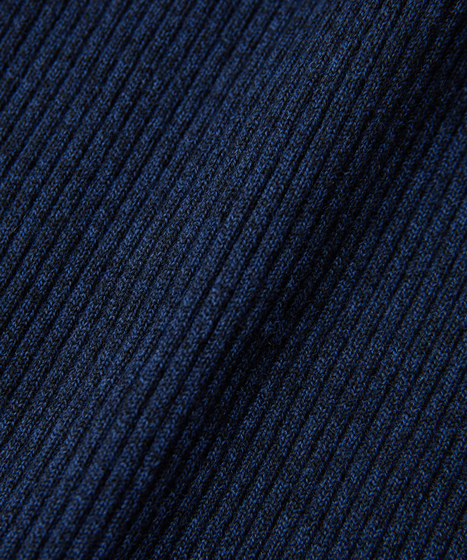 ■細やかなリブ編みの表情が縦のラインを強調し、よりすっきりとした印象に。