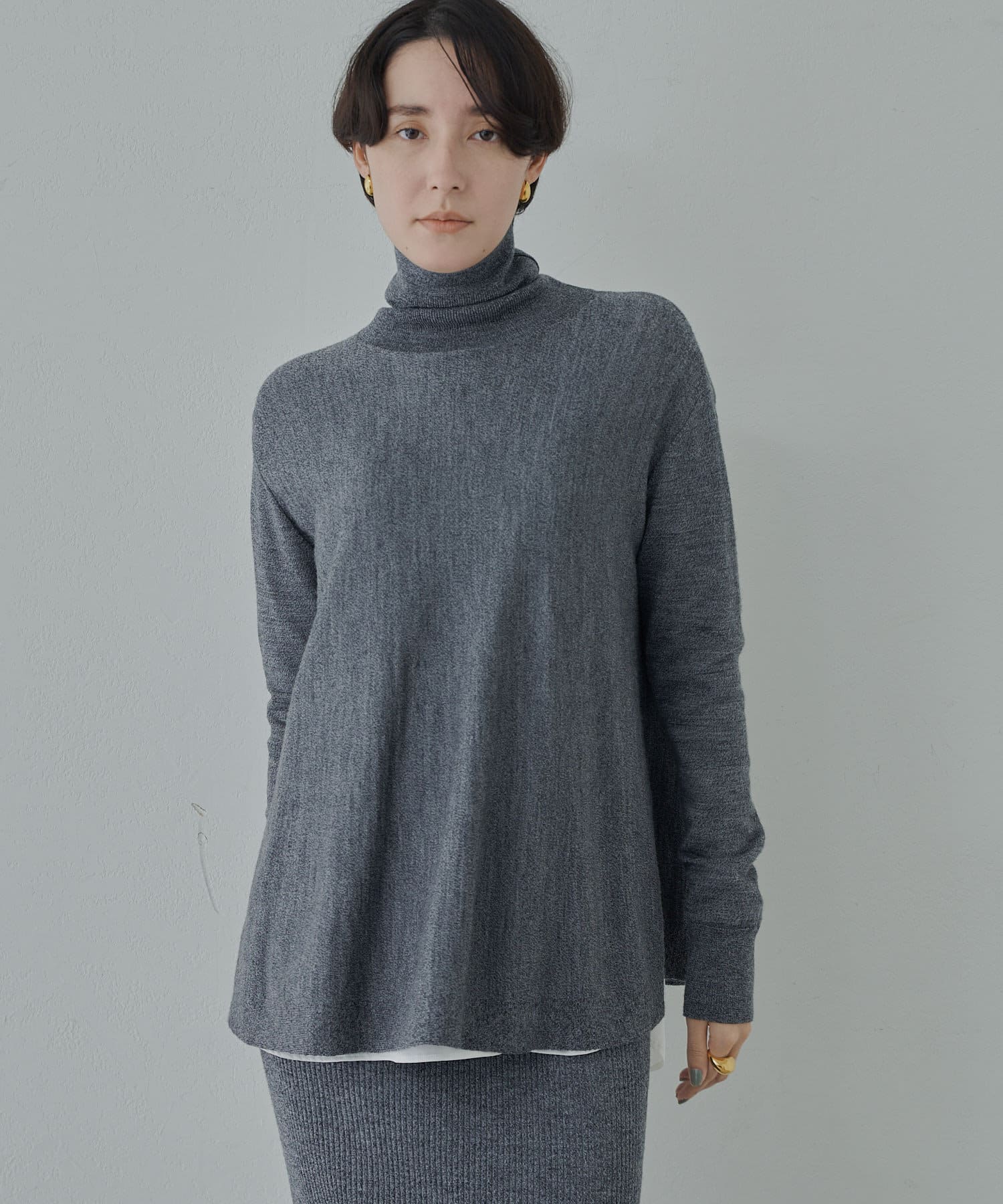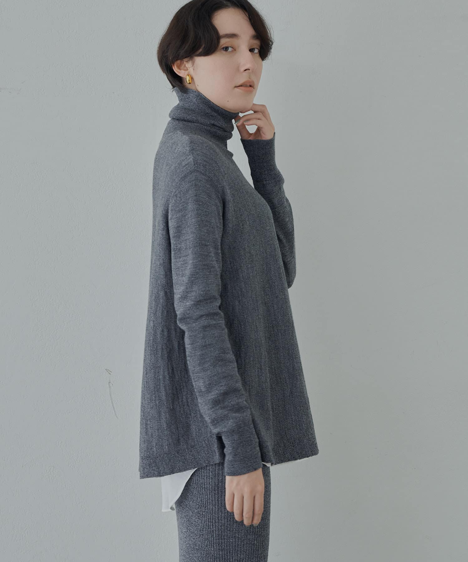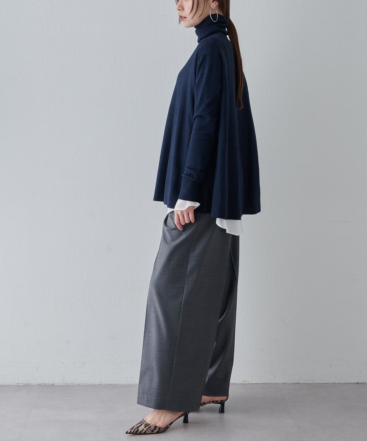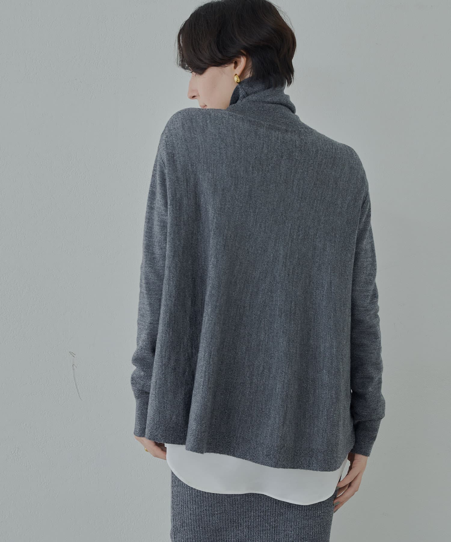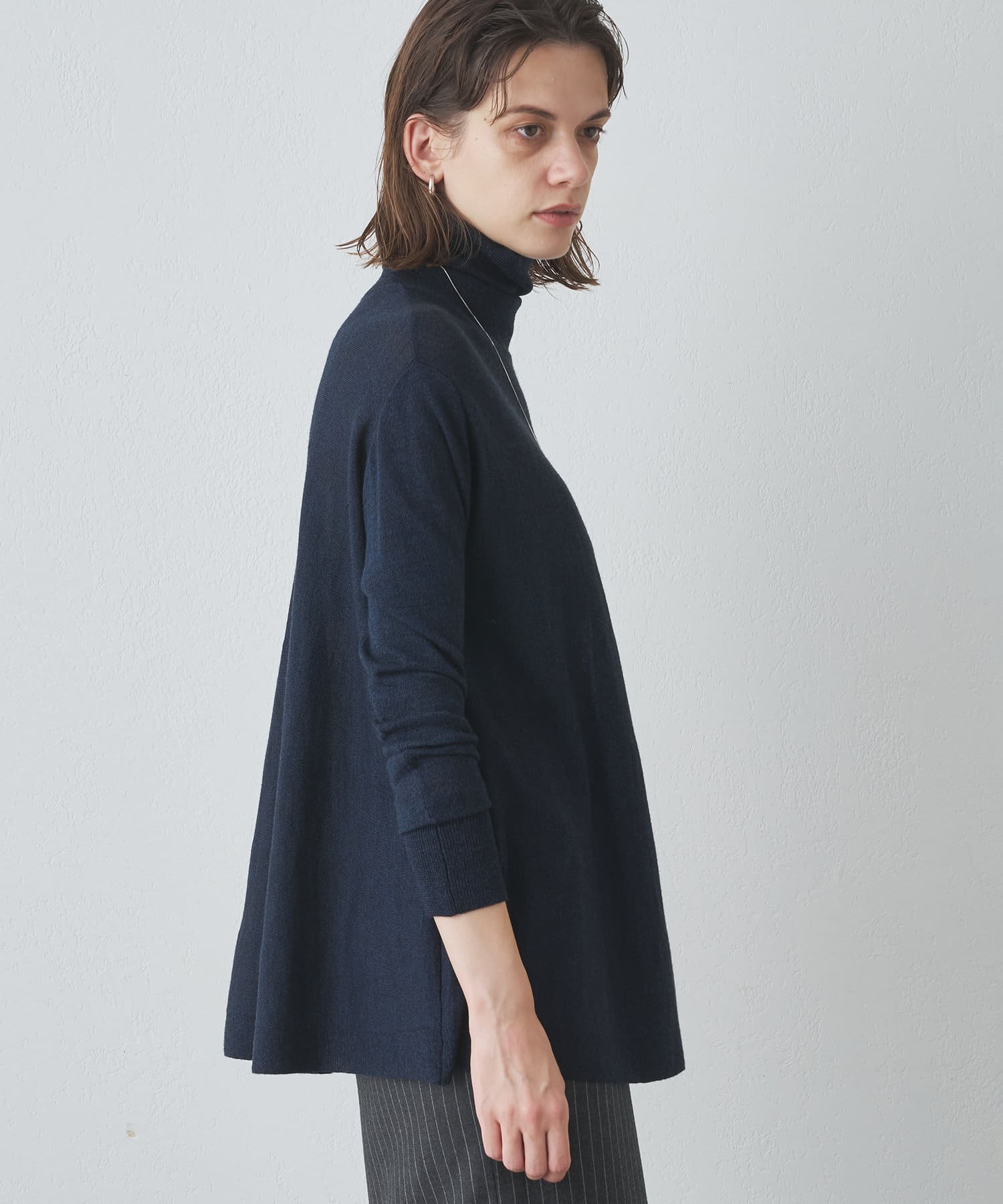 ■裾に向かって広がるAラインシルエットのタートルニットプルオーバー。