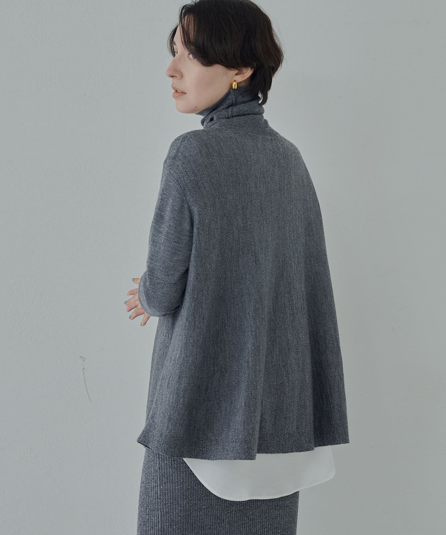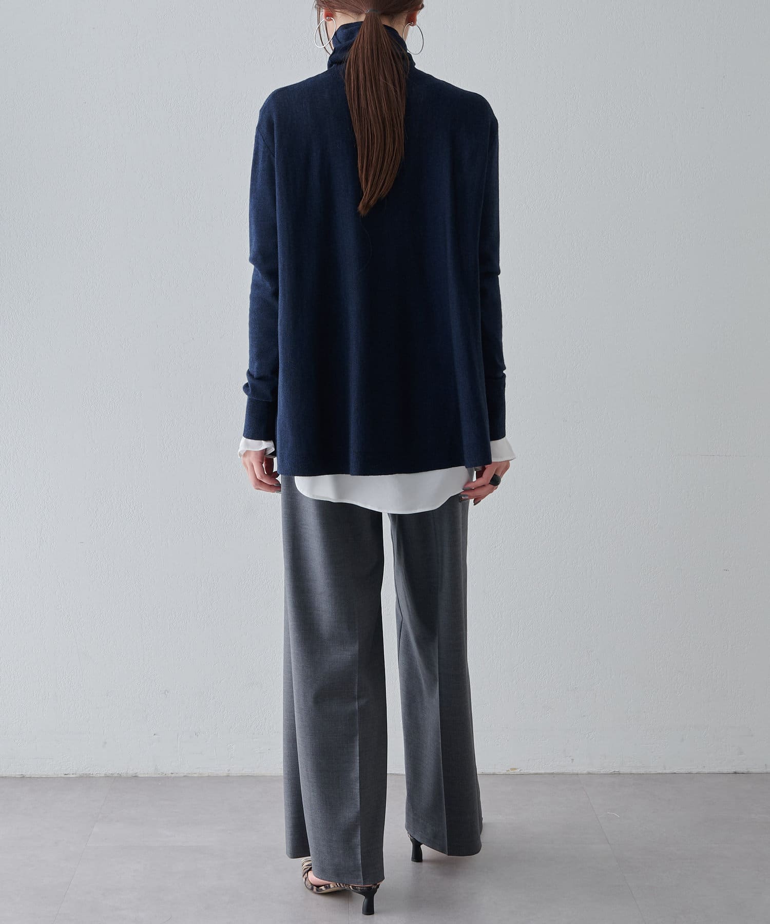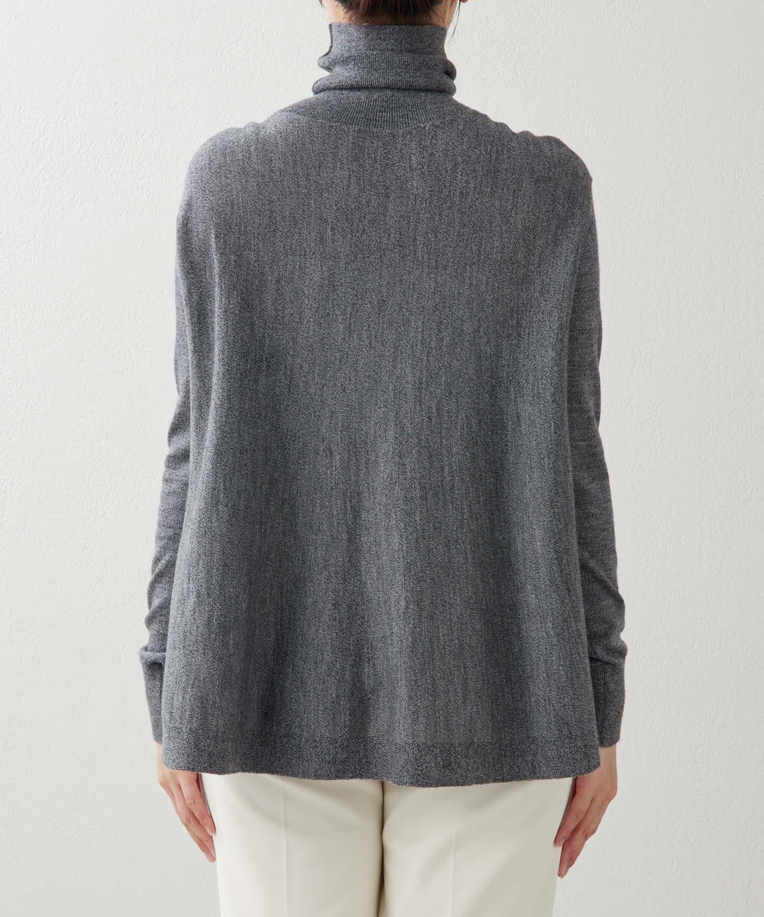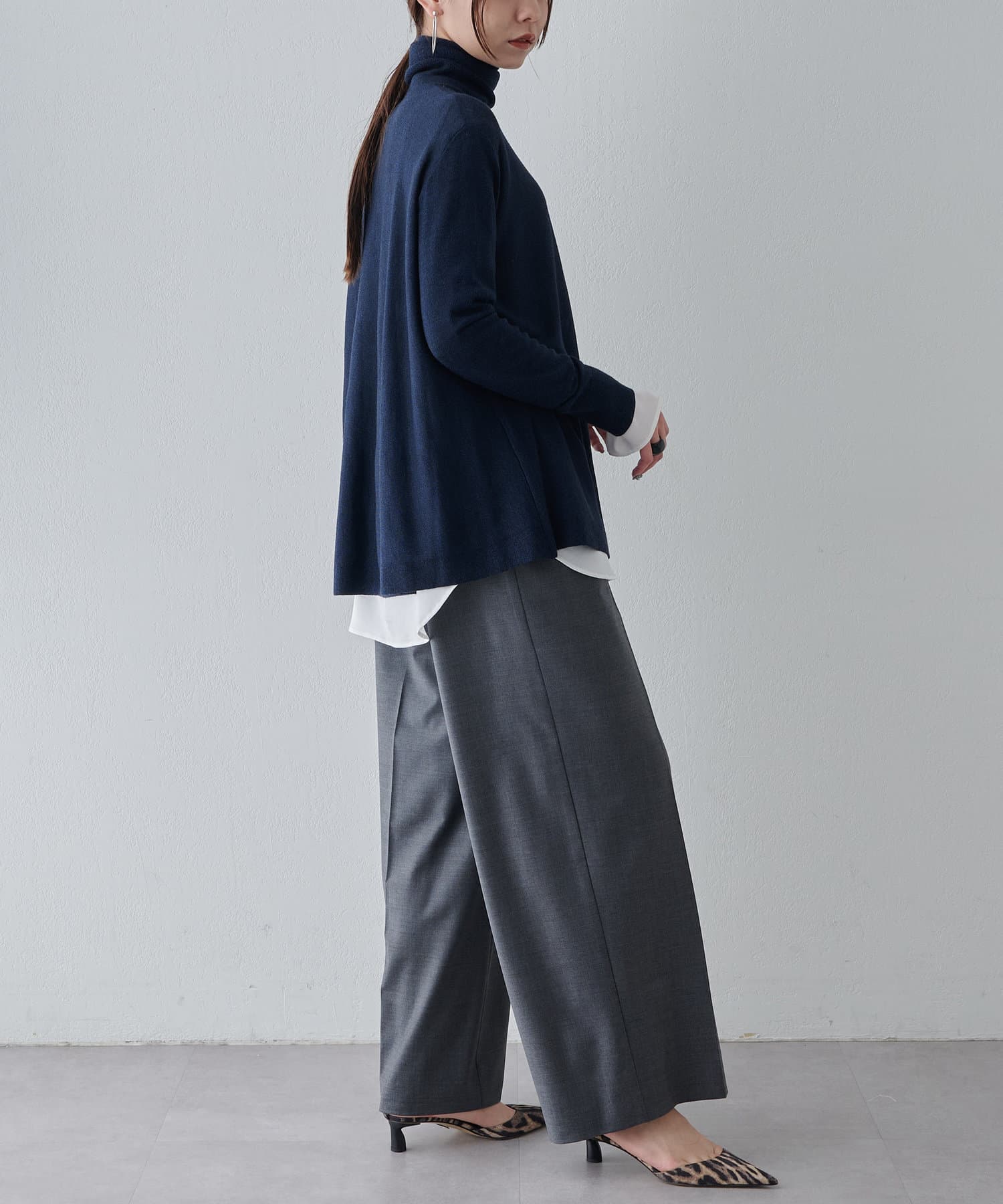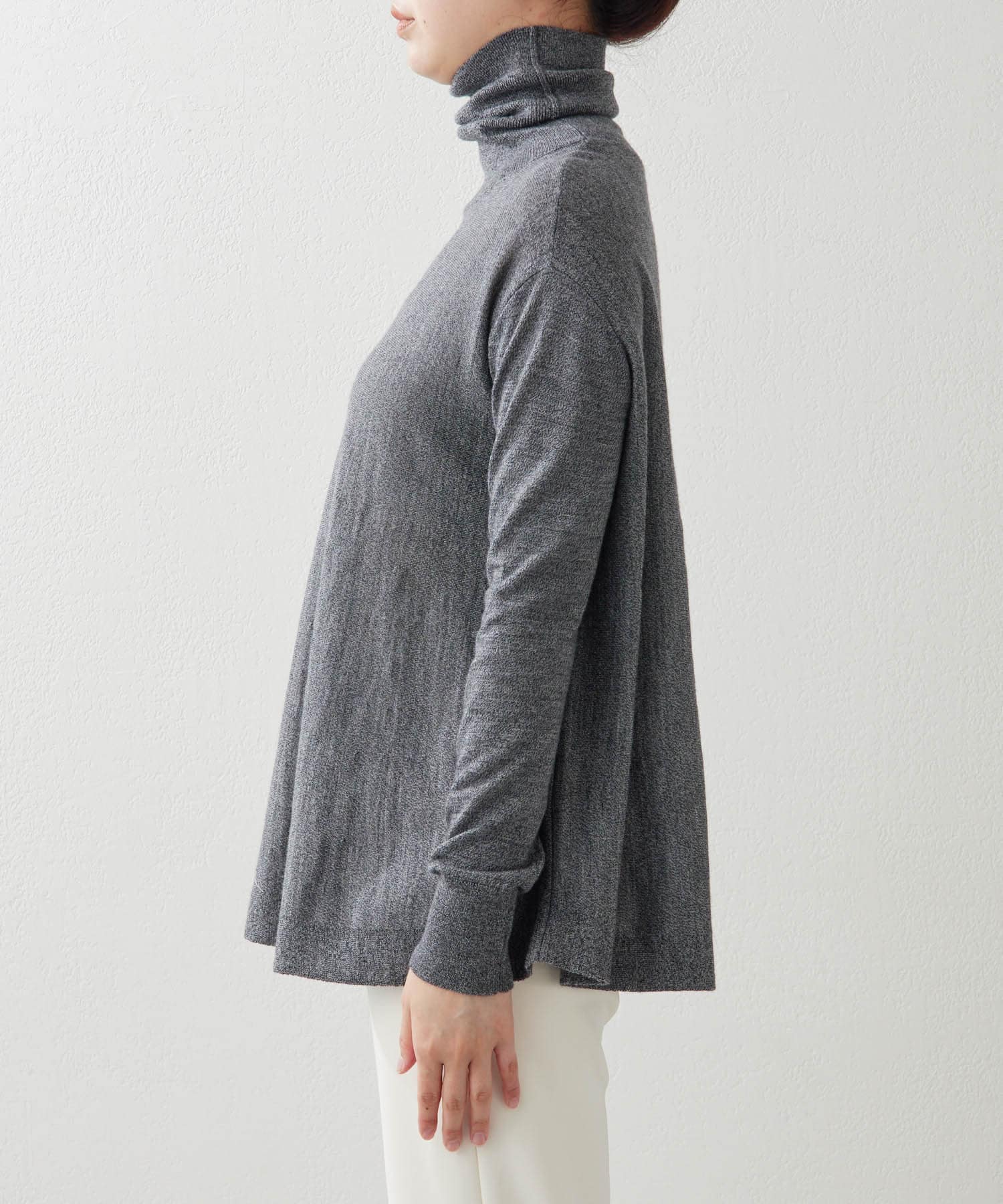 ■裾に向かって広がるAラインシルエットのタートルニットプルオーバー。