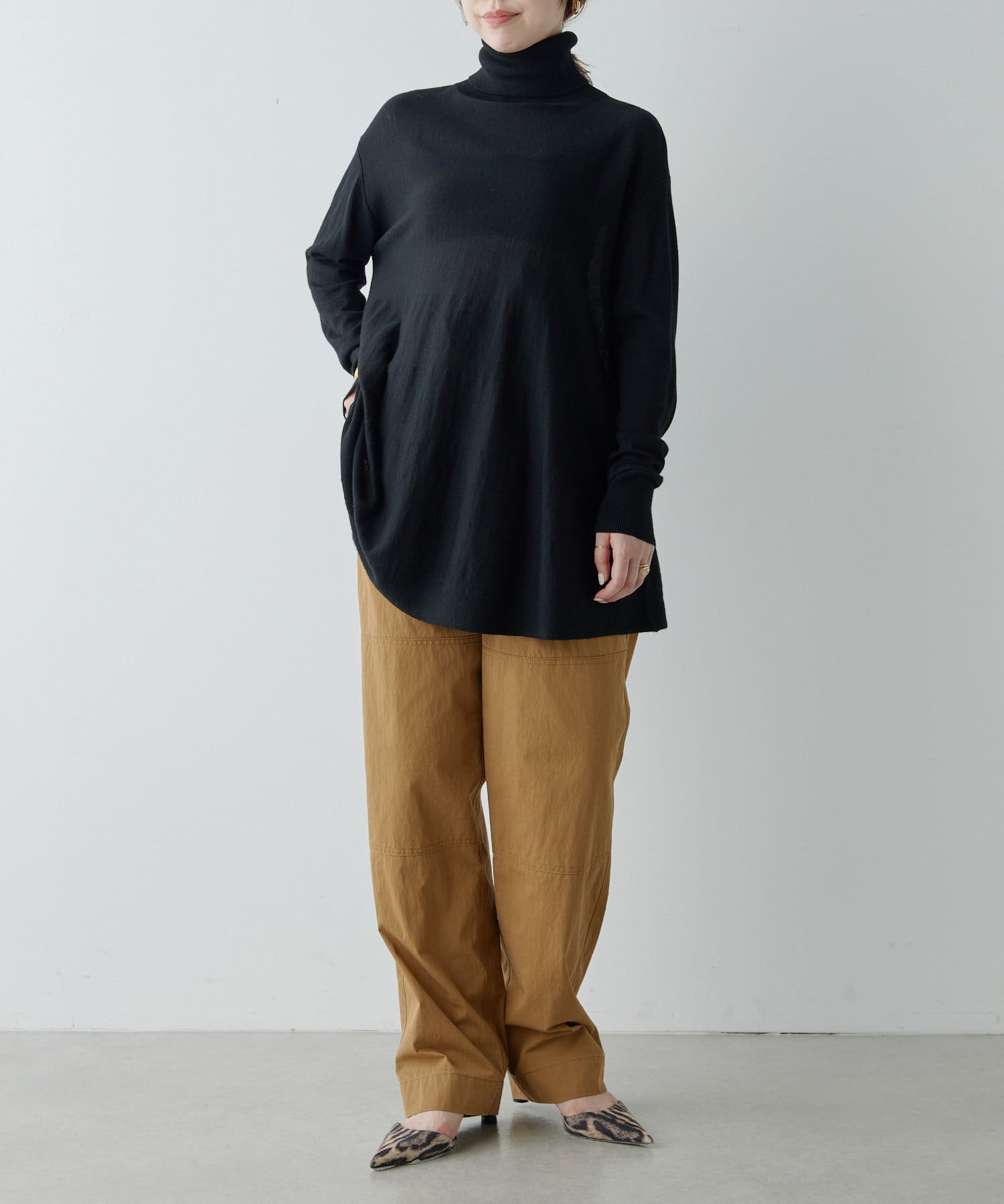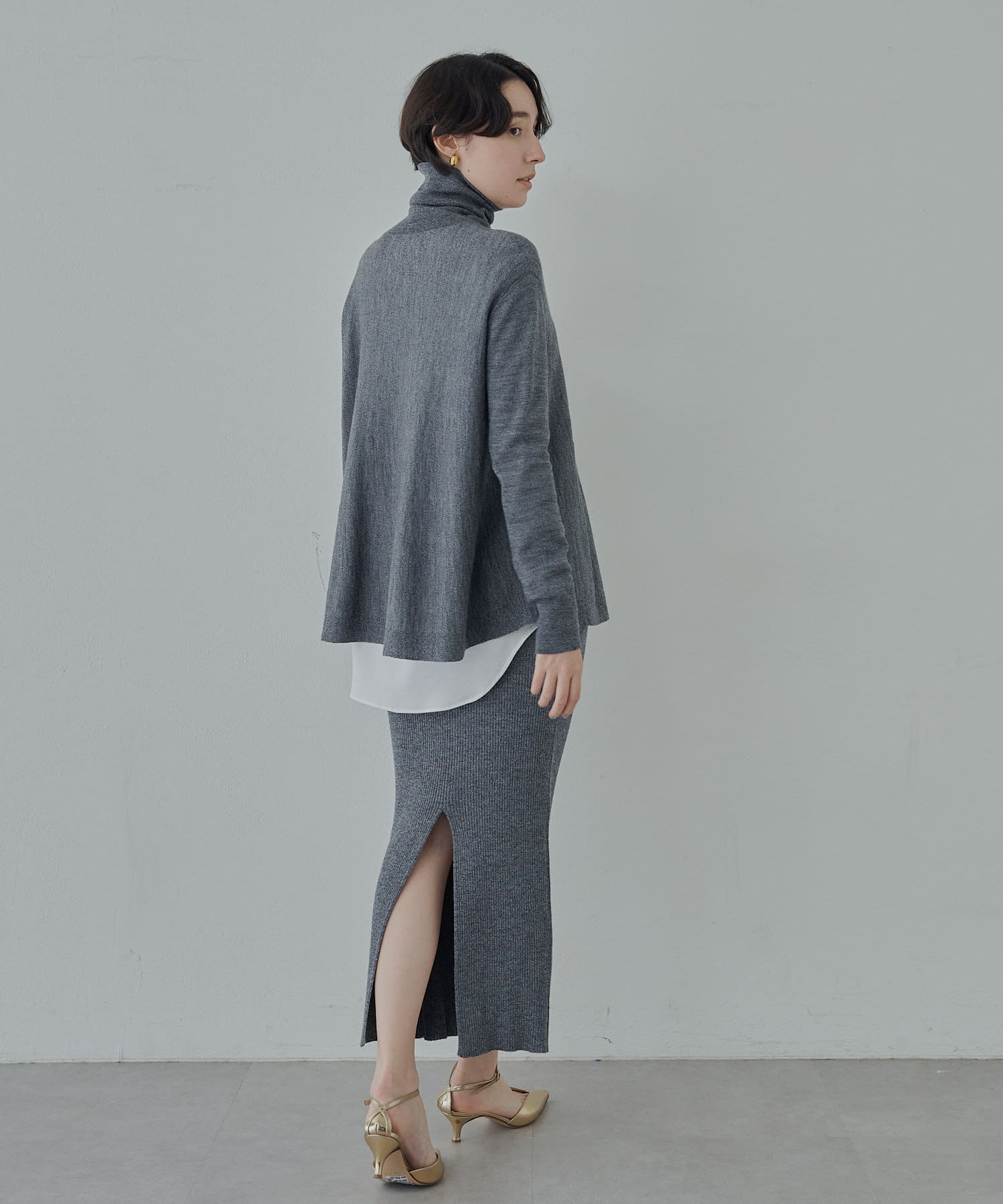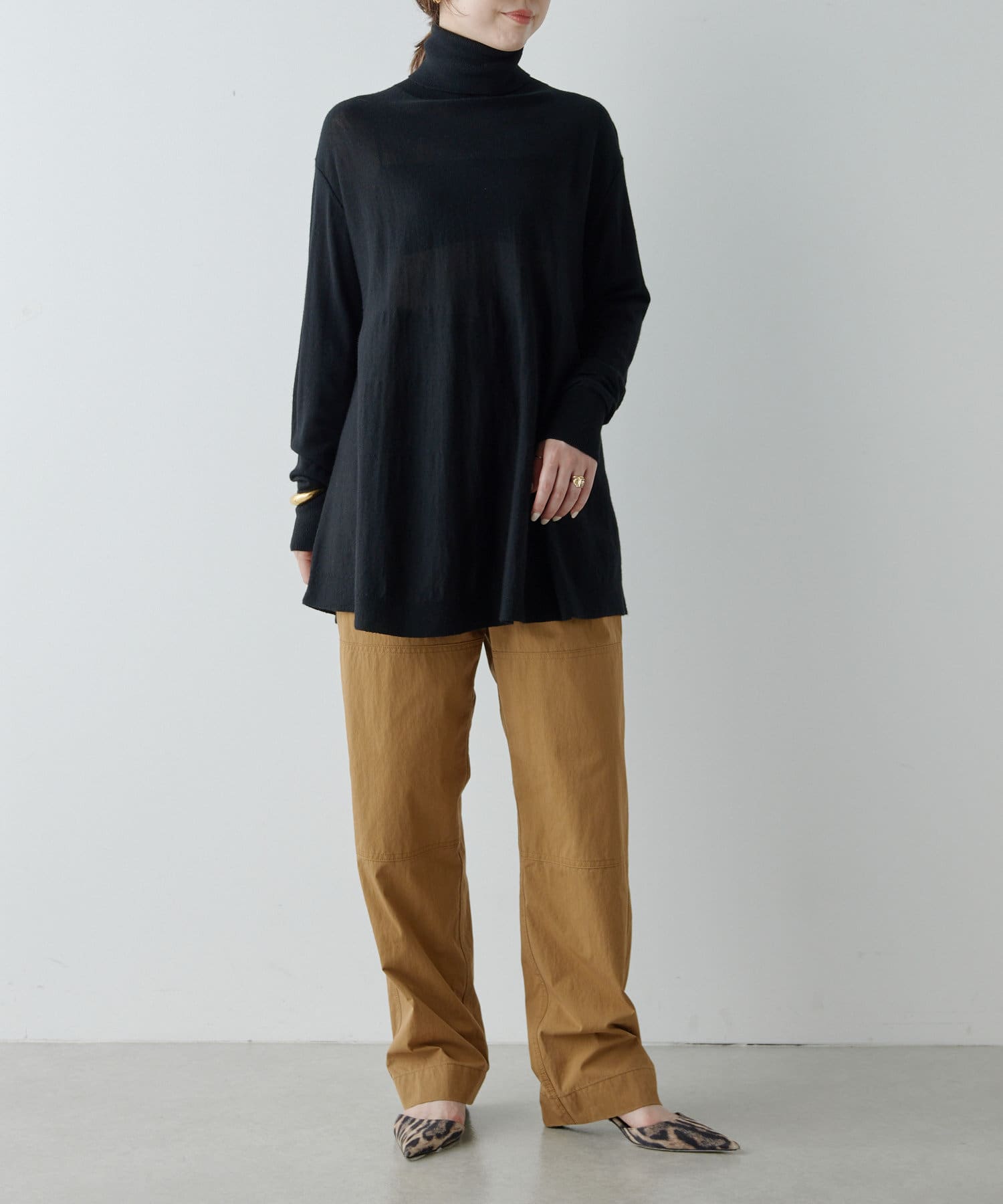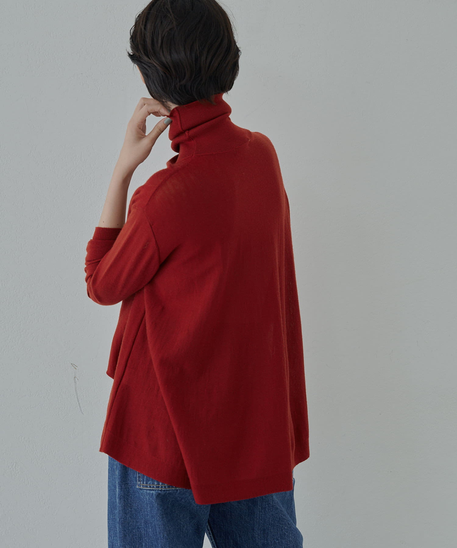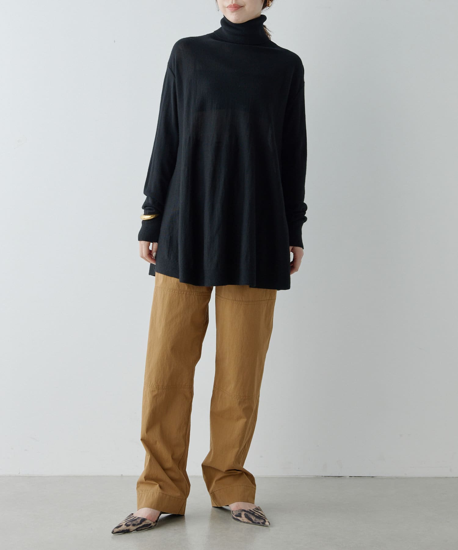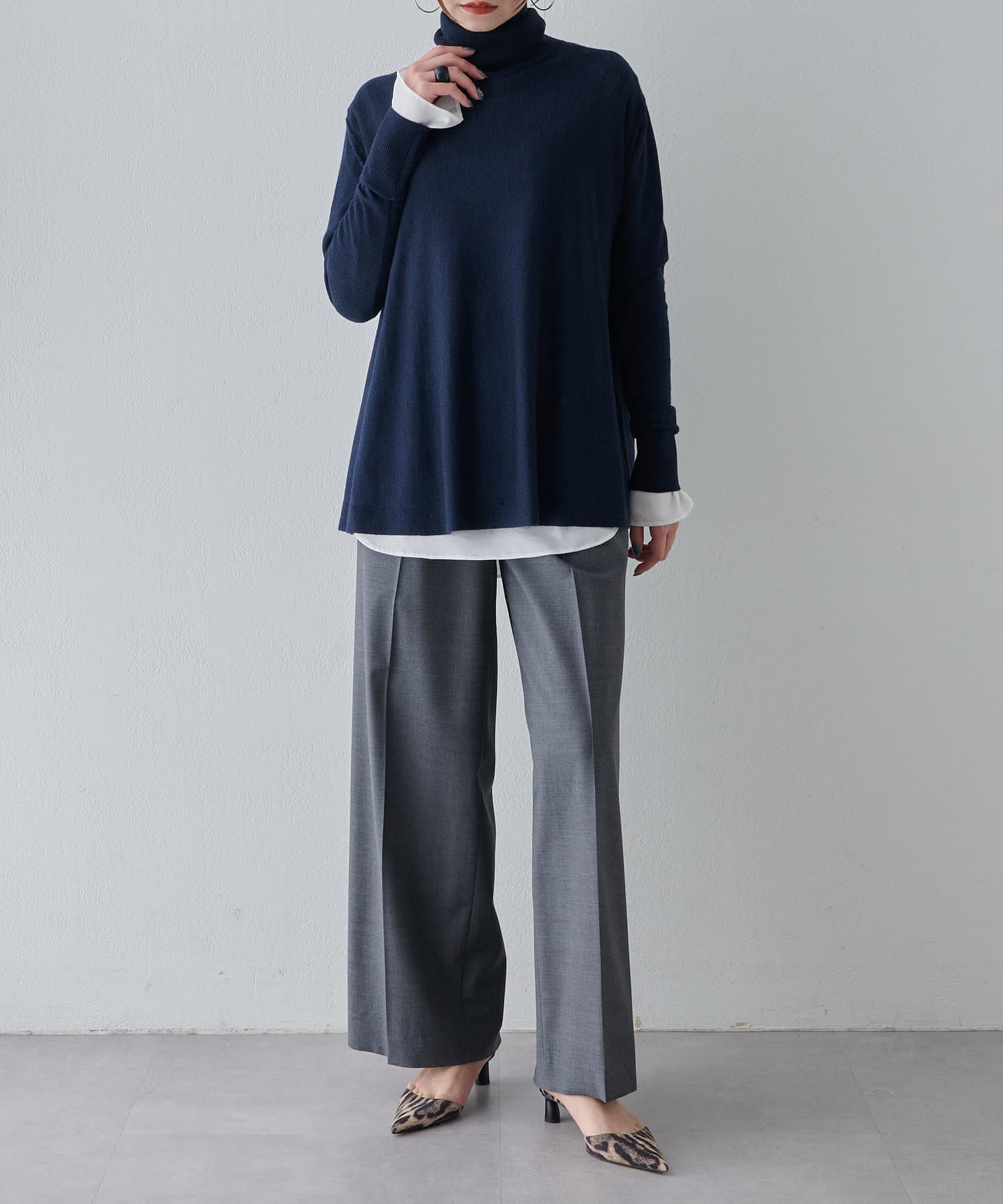 ■裾に向かって広がるAラインシルエットのタートルニットプルオーバー。
