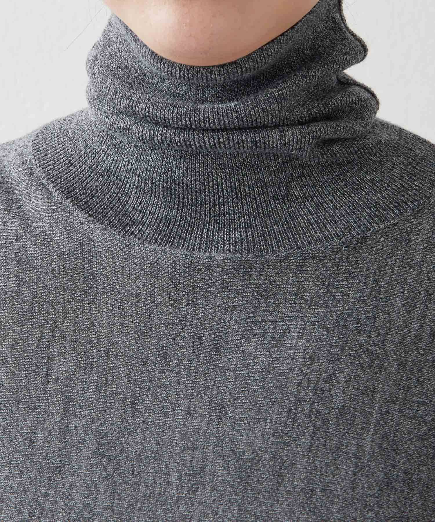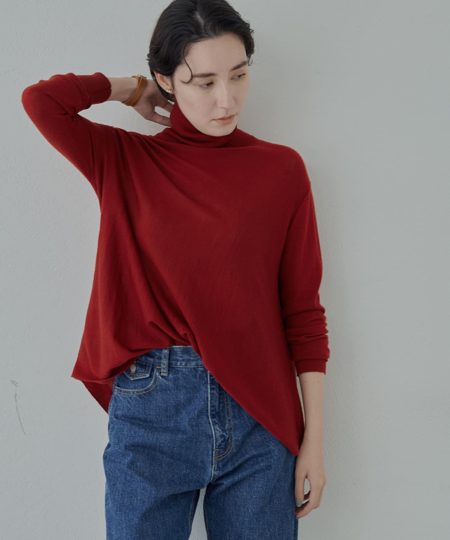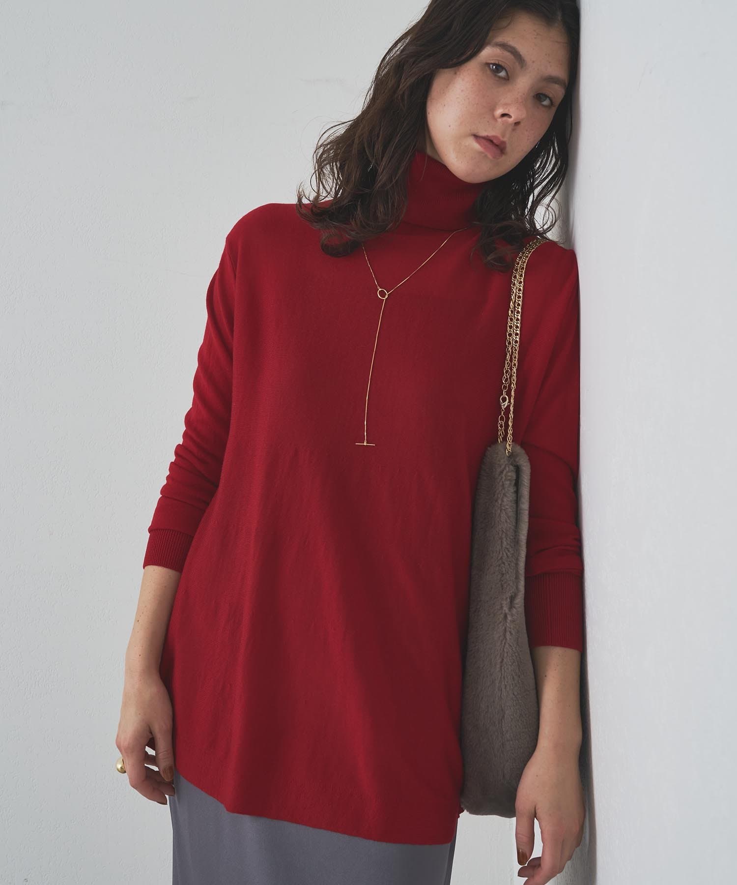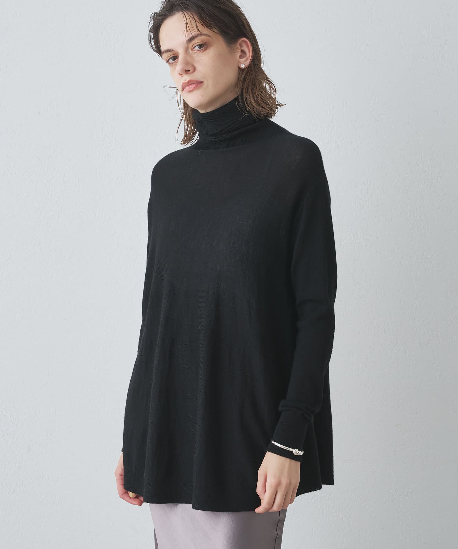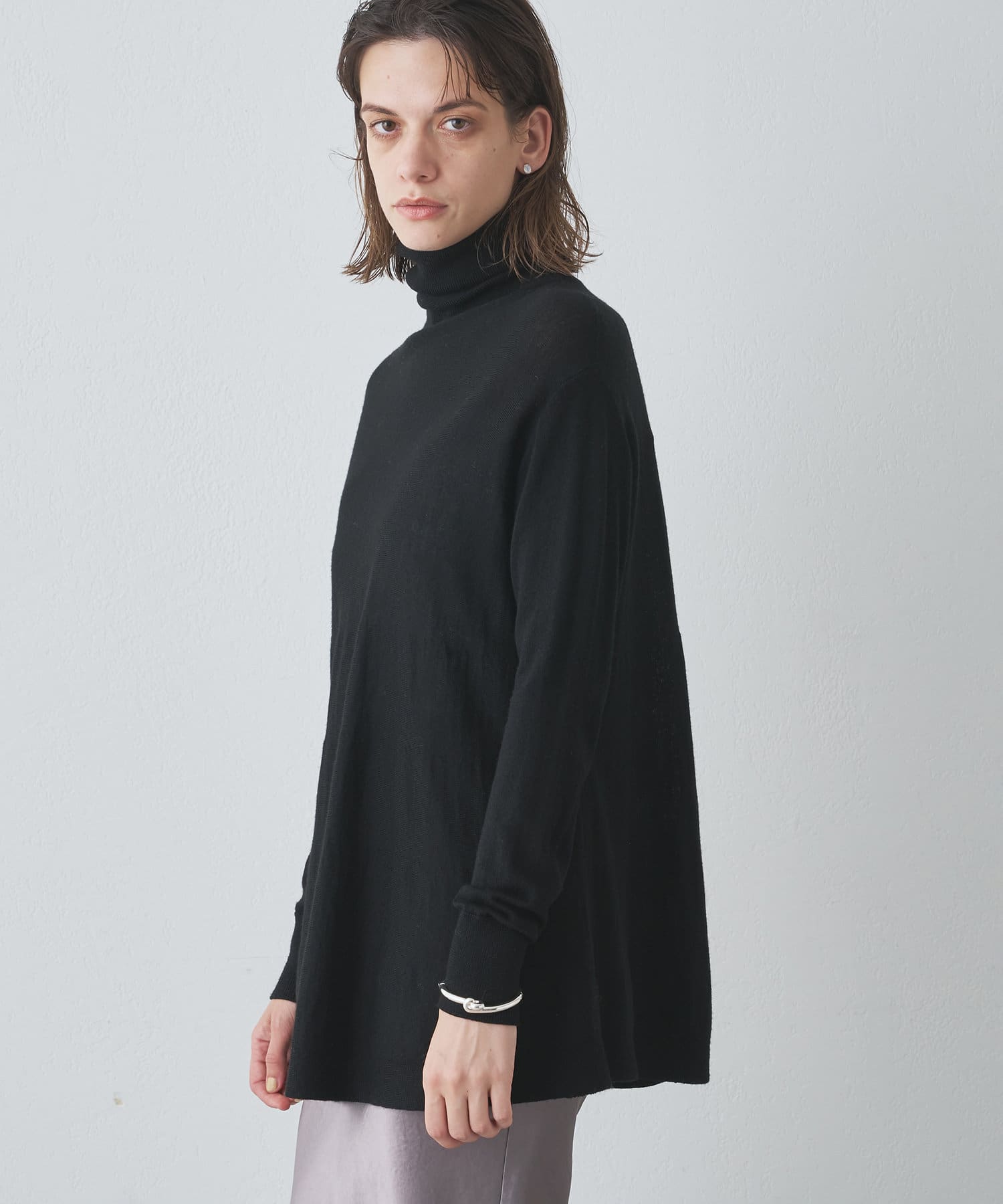 ■裾に向かって広がるAラインシルエットのタートルニットプルオーバー。