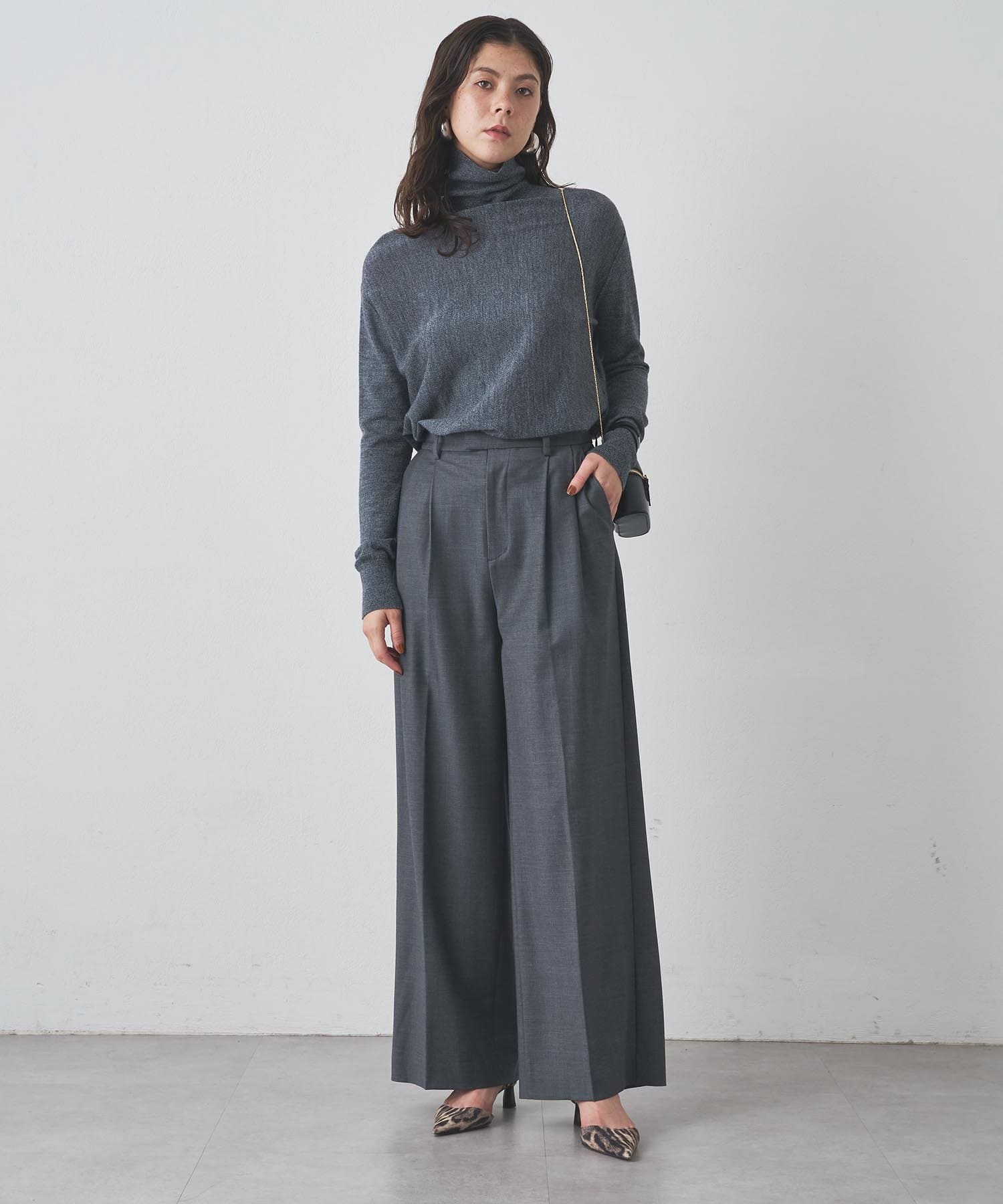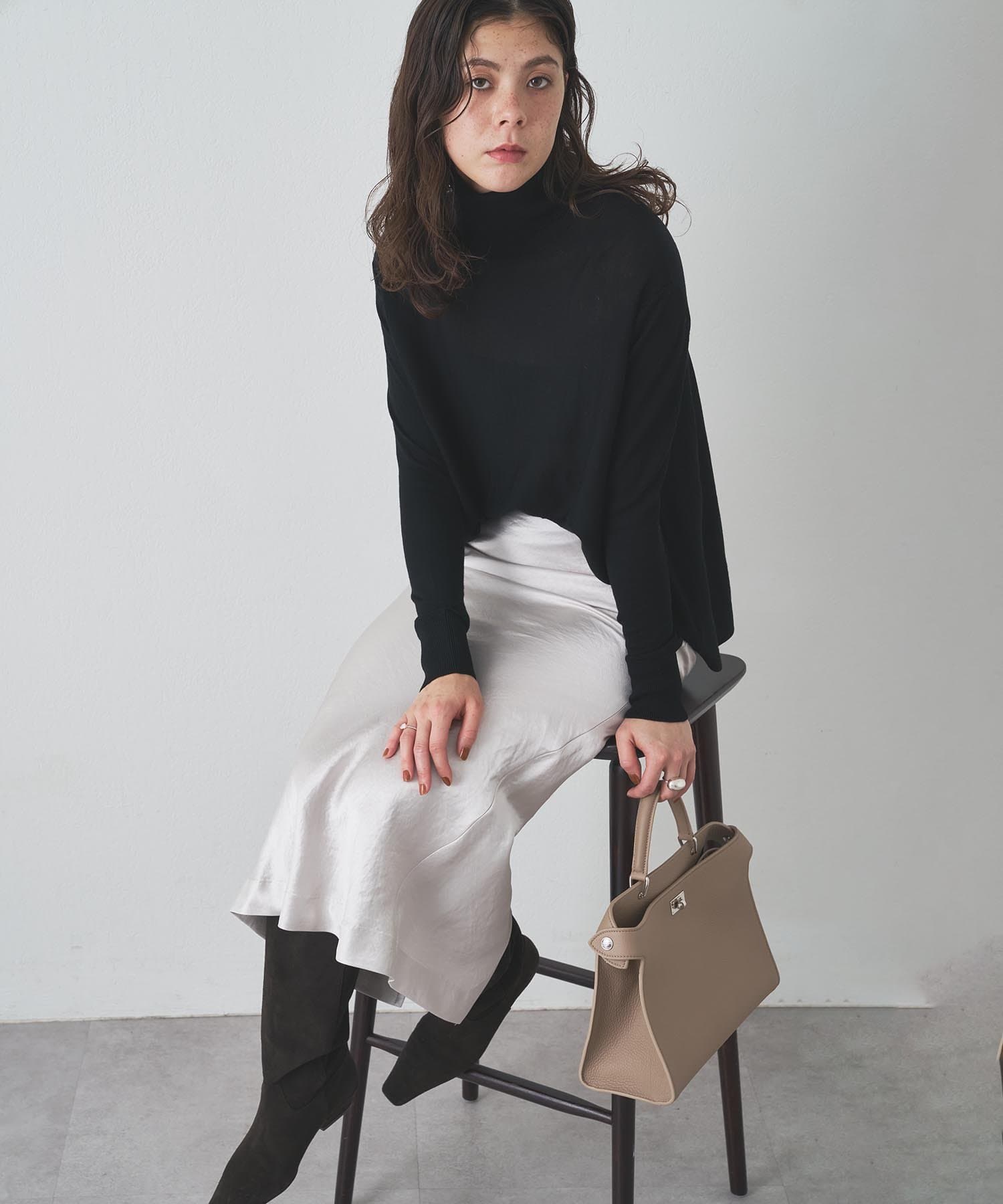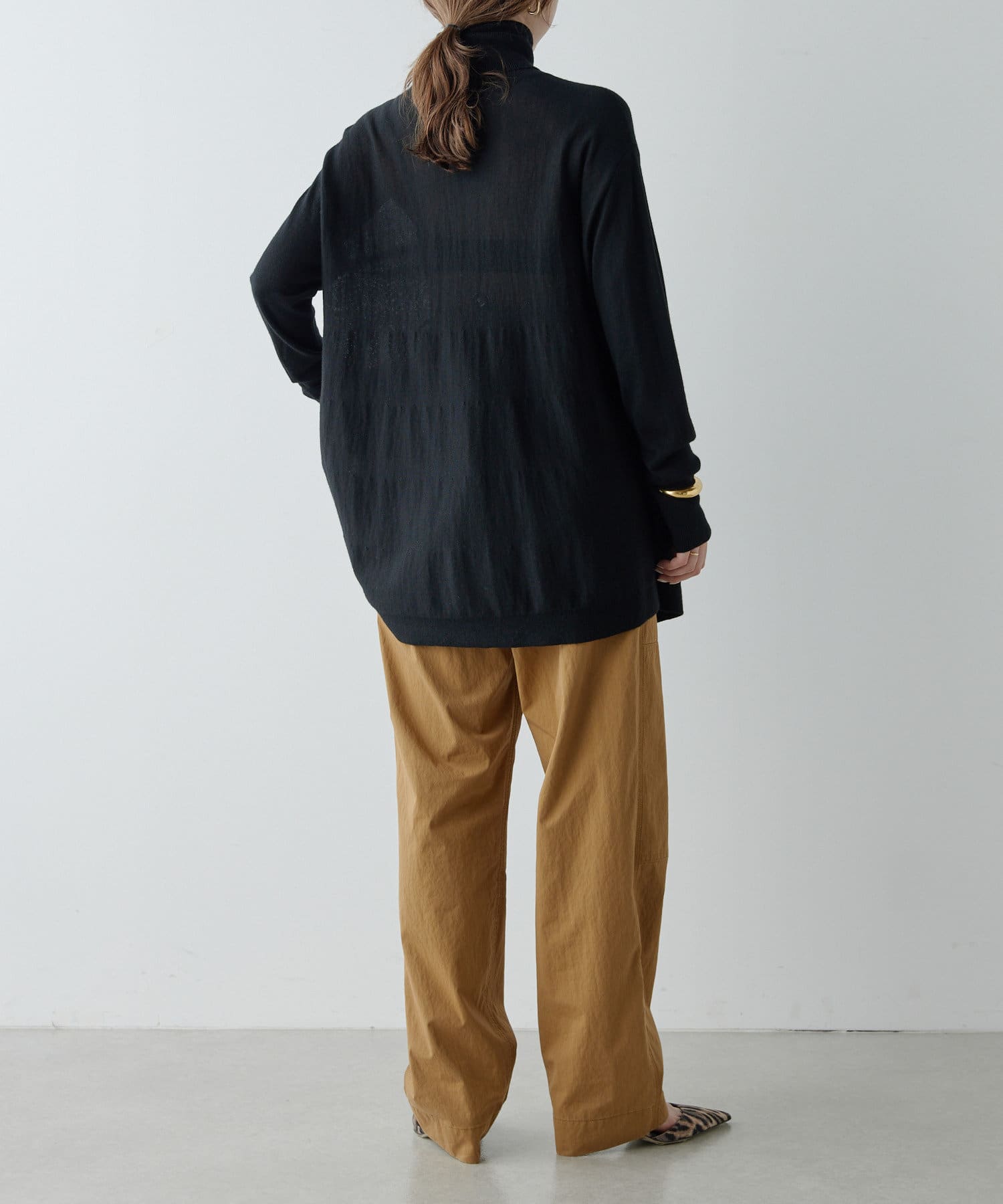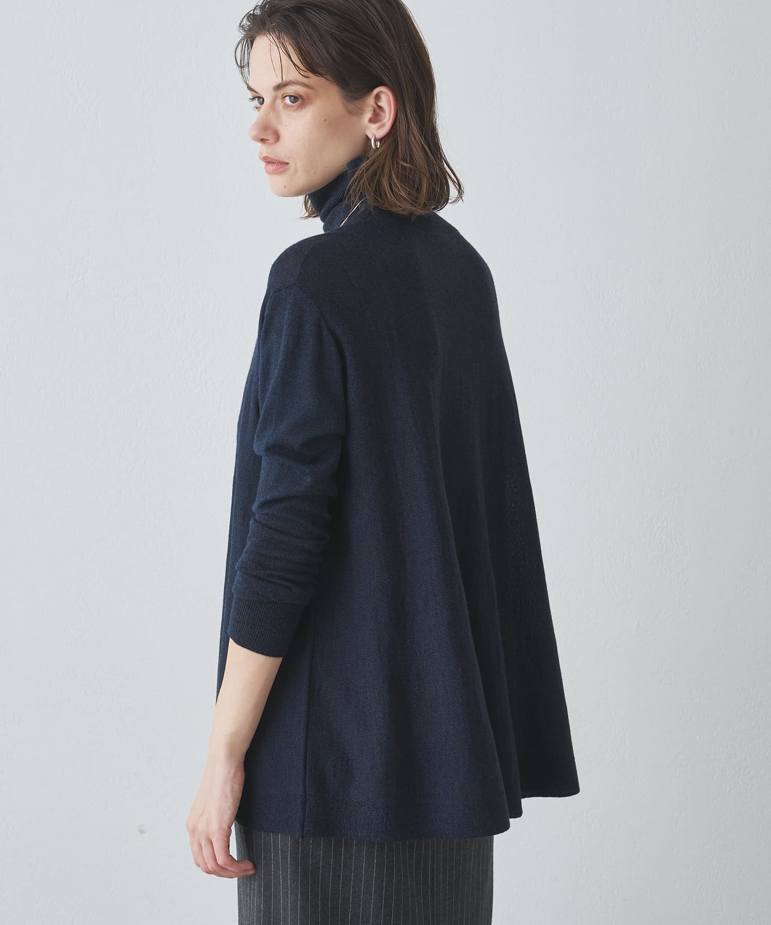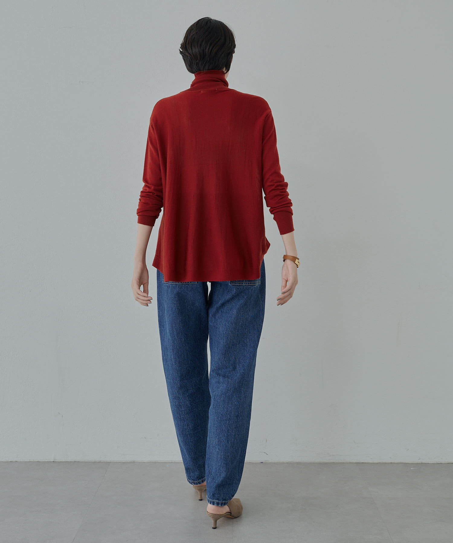 ■裾に向かって広がるAラインシルエットのタートルニットプルオーバー。