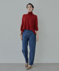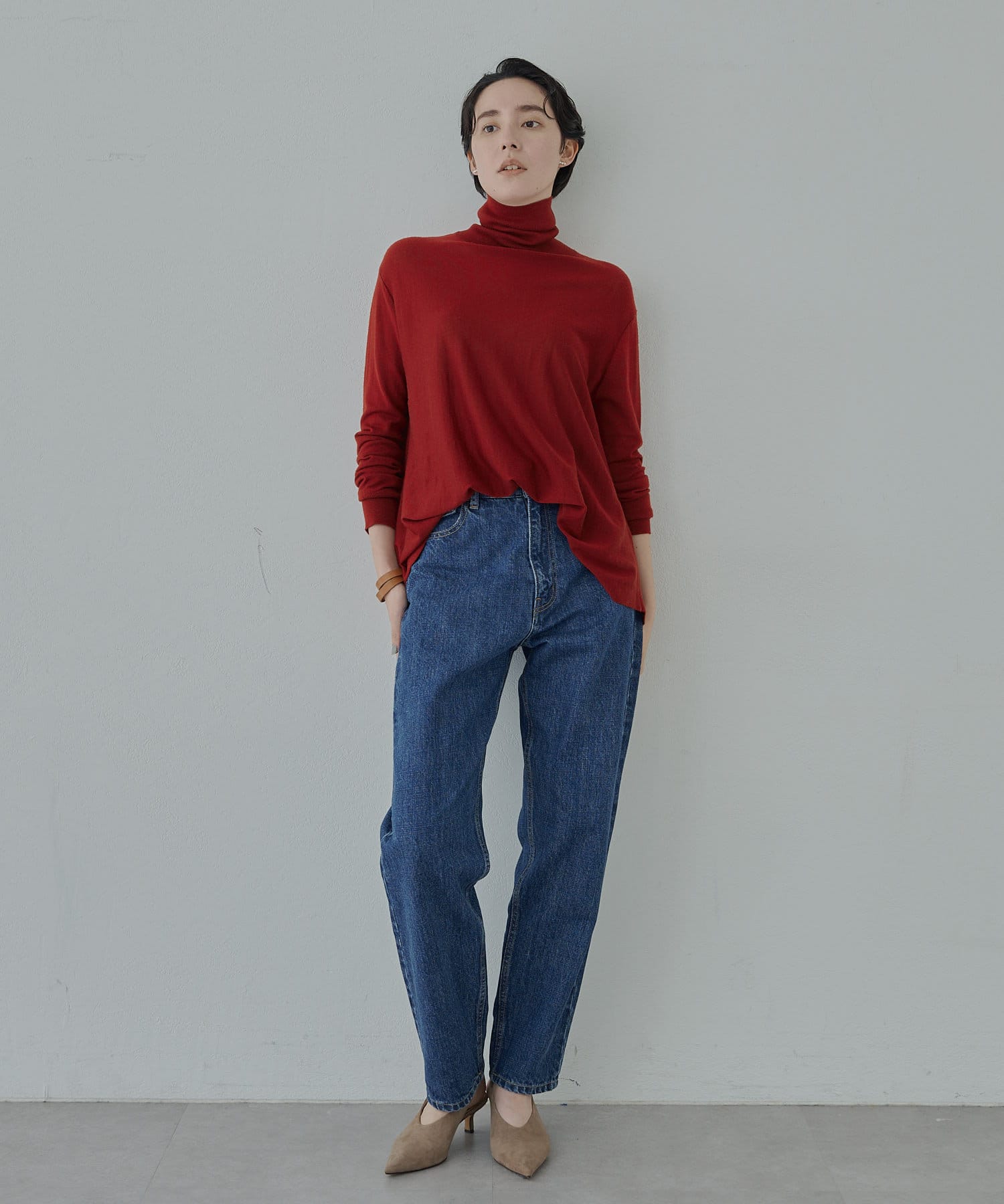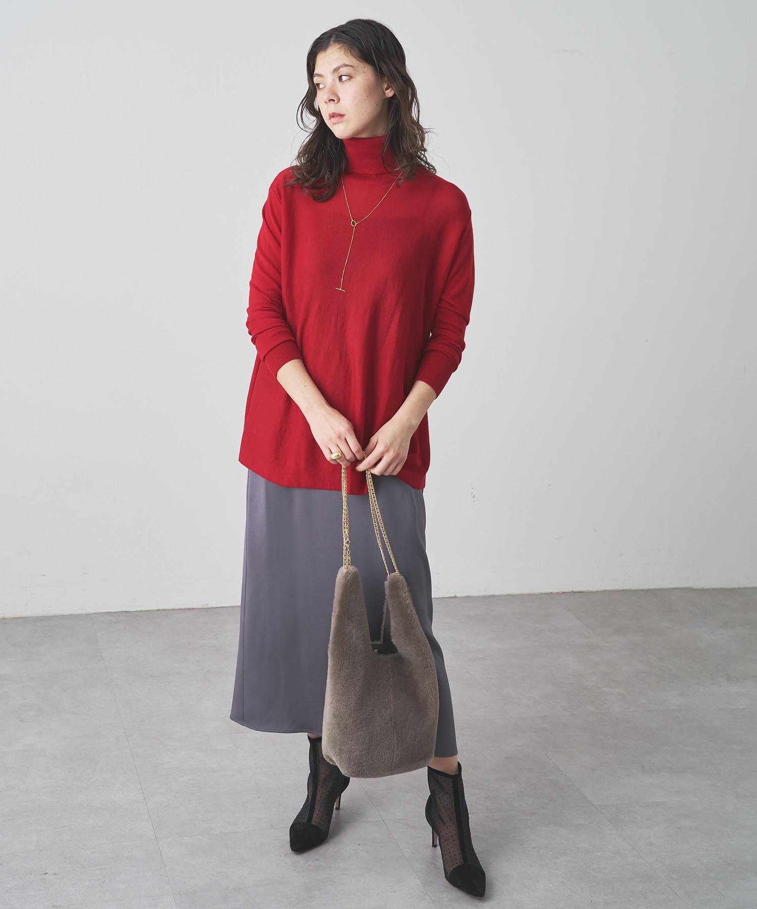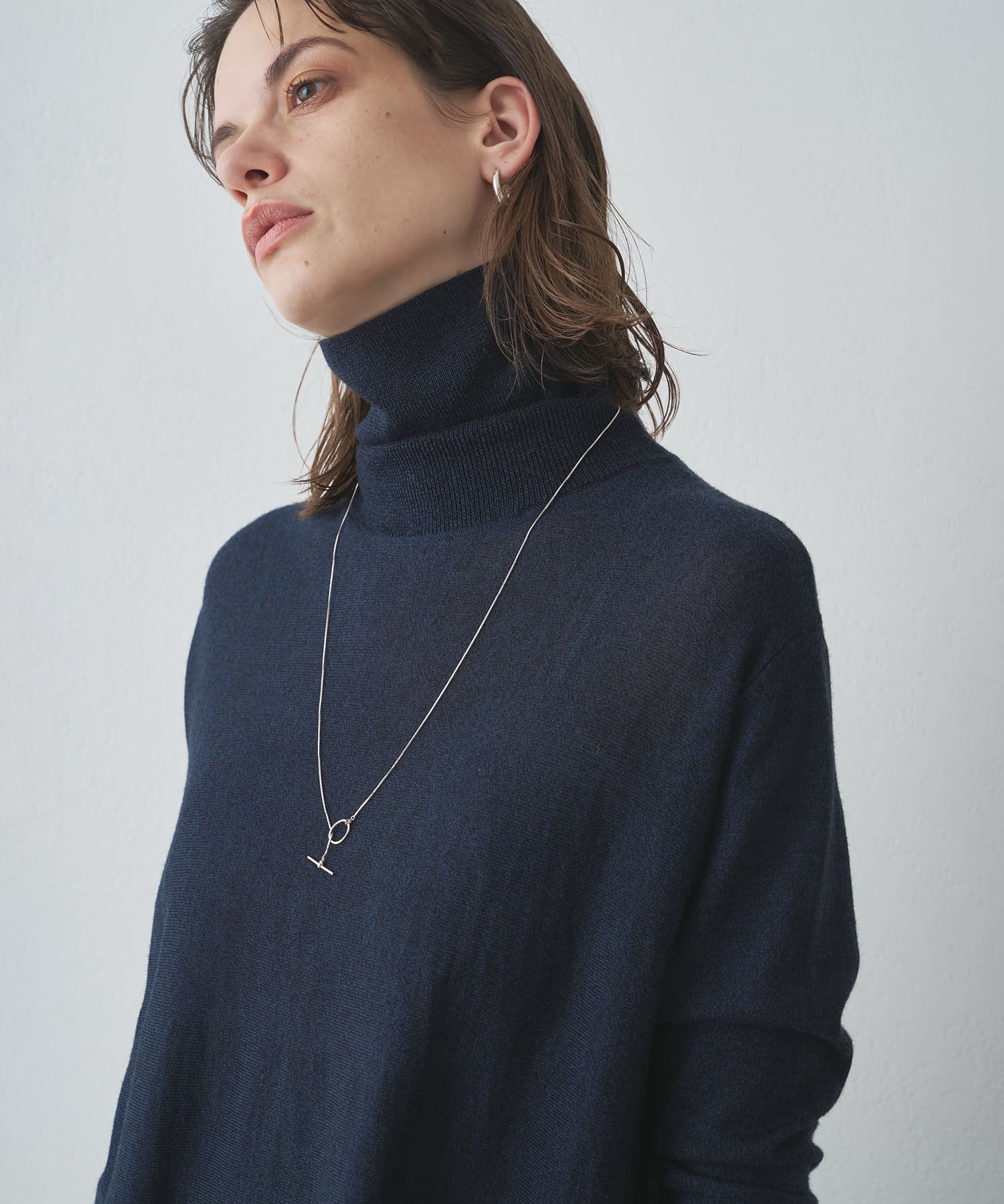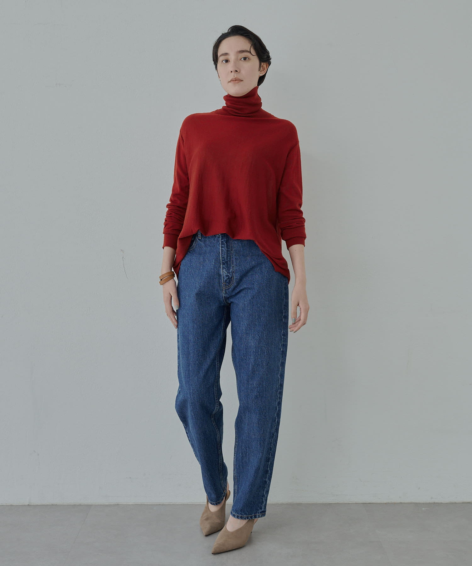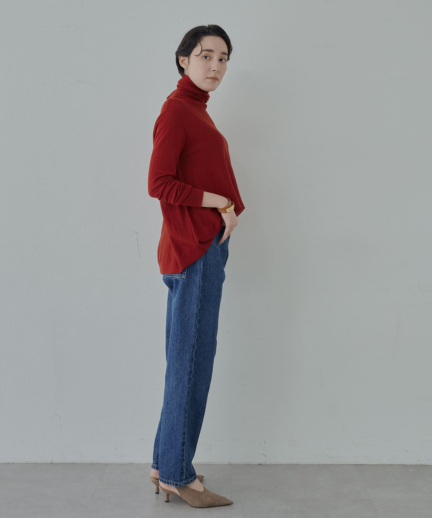 ■裾に向かって広がるAラインシルエットのタートルニットプルオーバー。