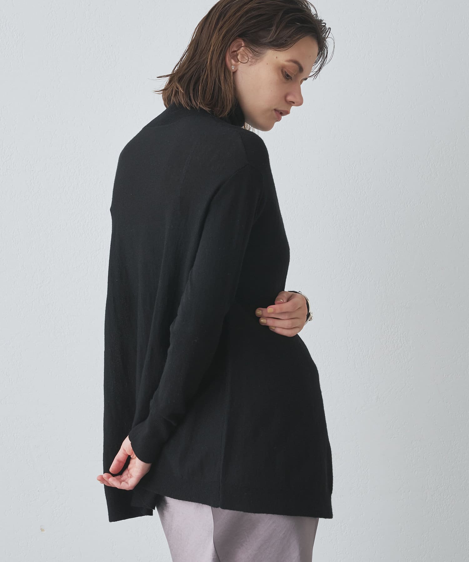 裾が揺れるようなデザインなので動きが出せる新鮮なニット。腕周りは程よくフィットするので細身なアウターも羽織れます。ヒップがまで隠れる丈感ですが、薄手なのでボトムスも細身でもワイドでも相性がとても良いです!