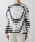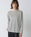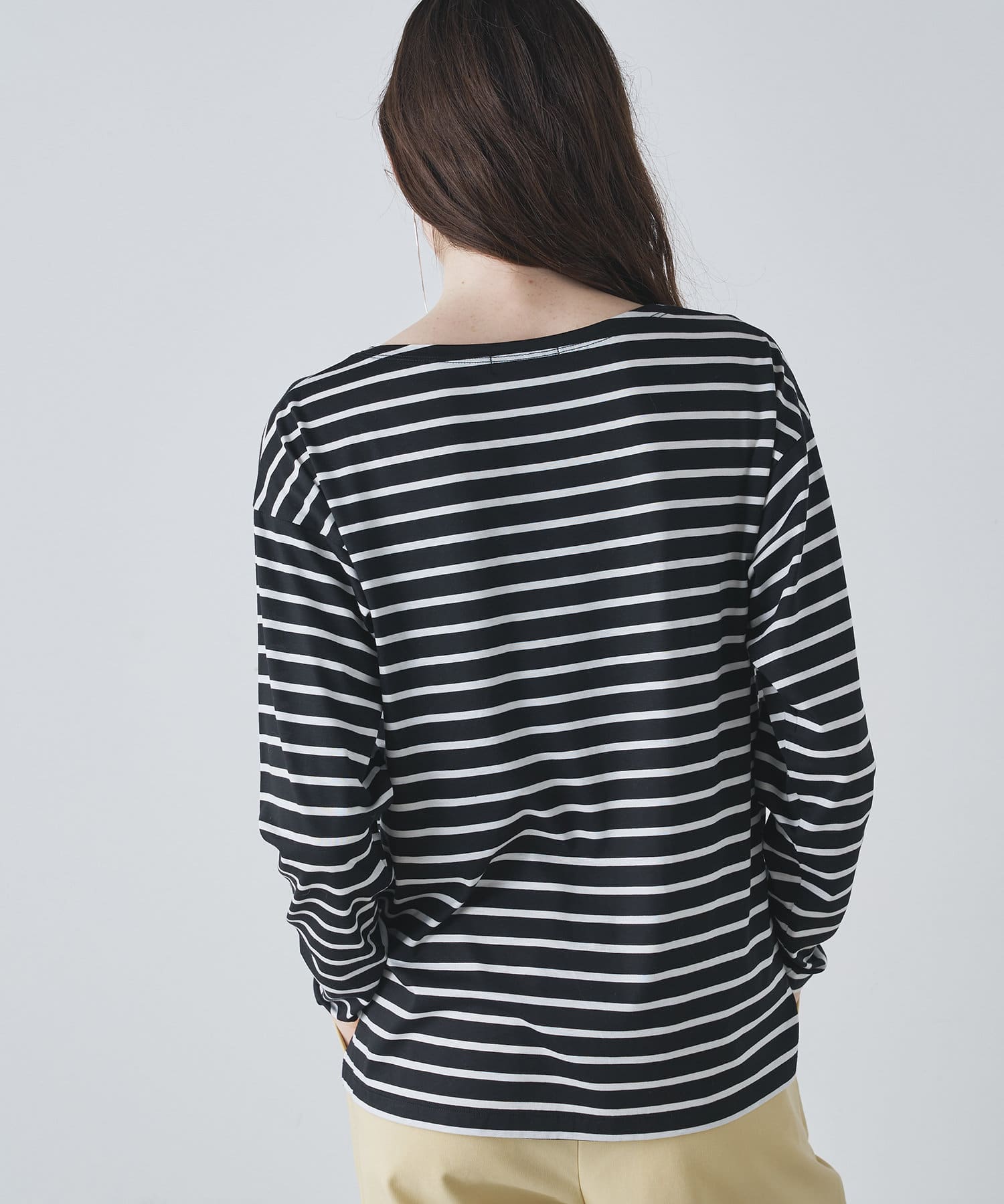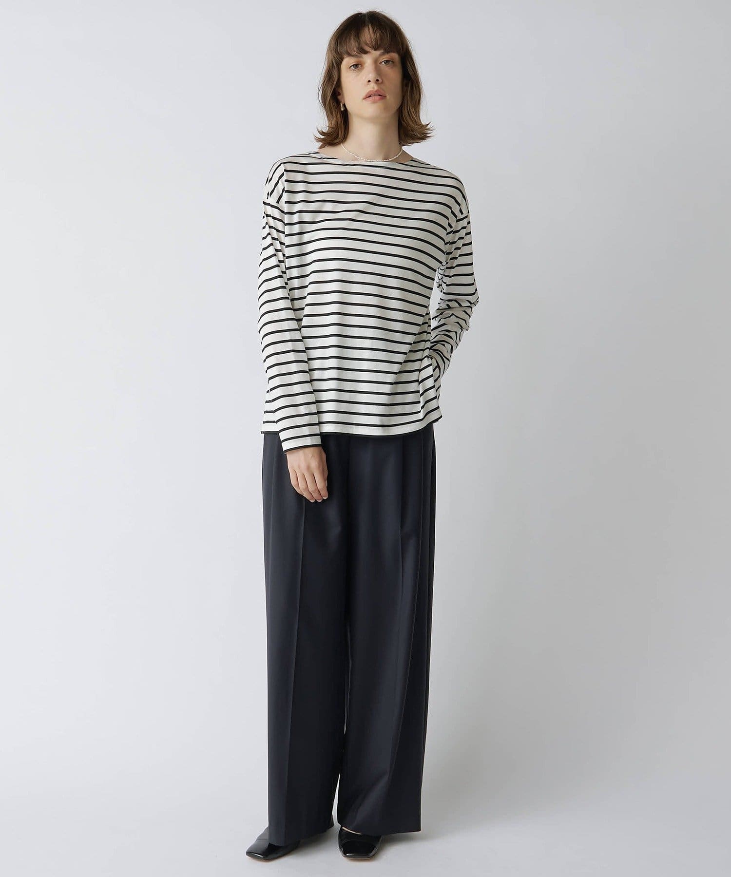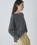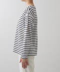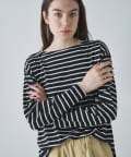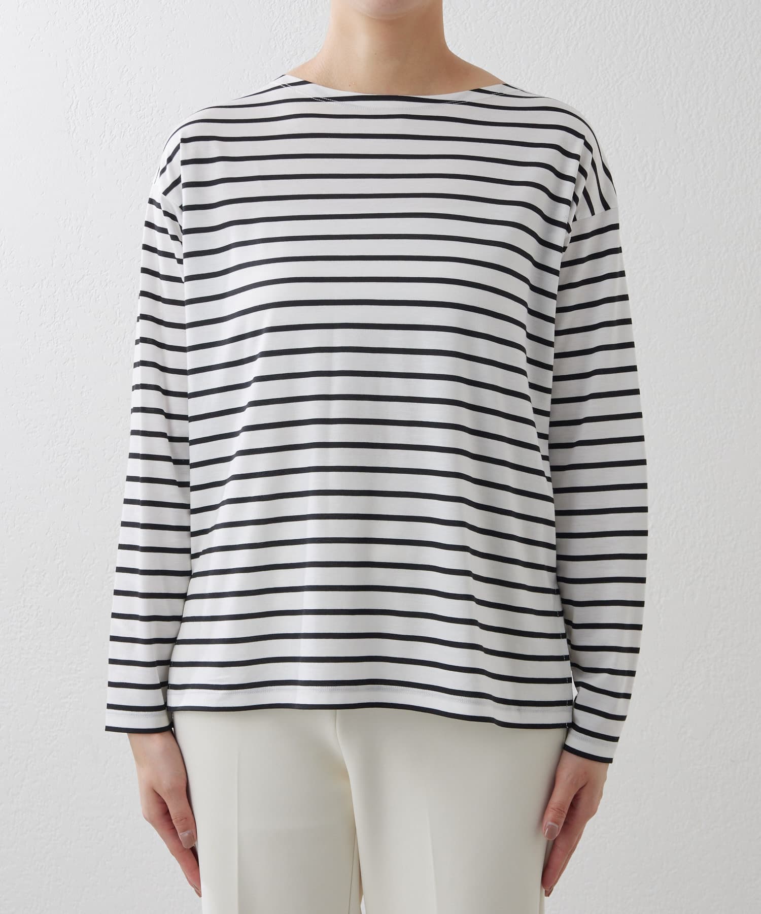 横に開いた襟ぐりと、くたっとたっぷり感のある生地に、絶妙な太さのボーダーが、綺麗に着られるポイント◎
