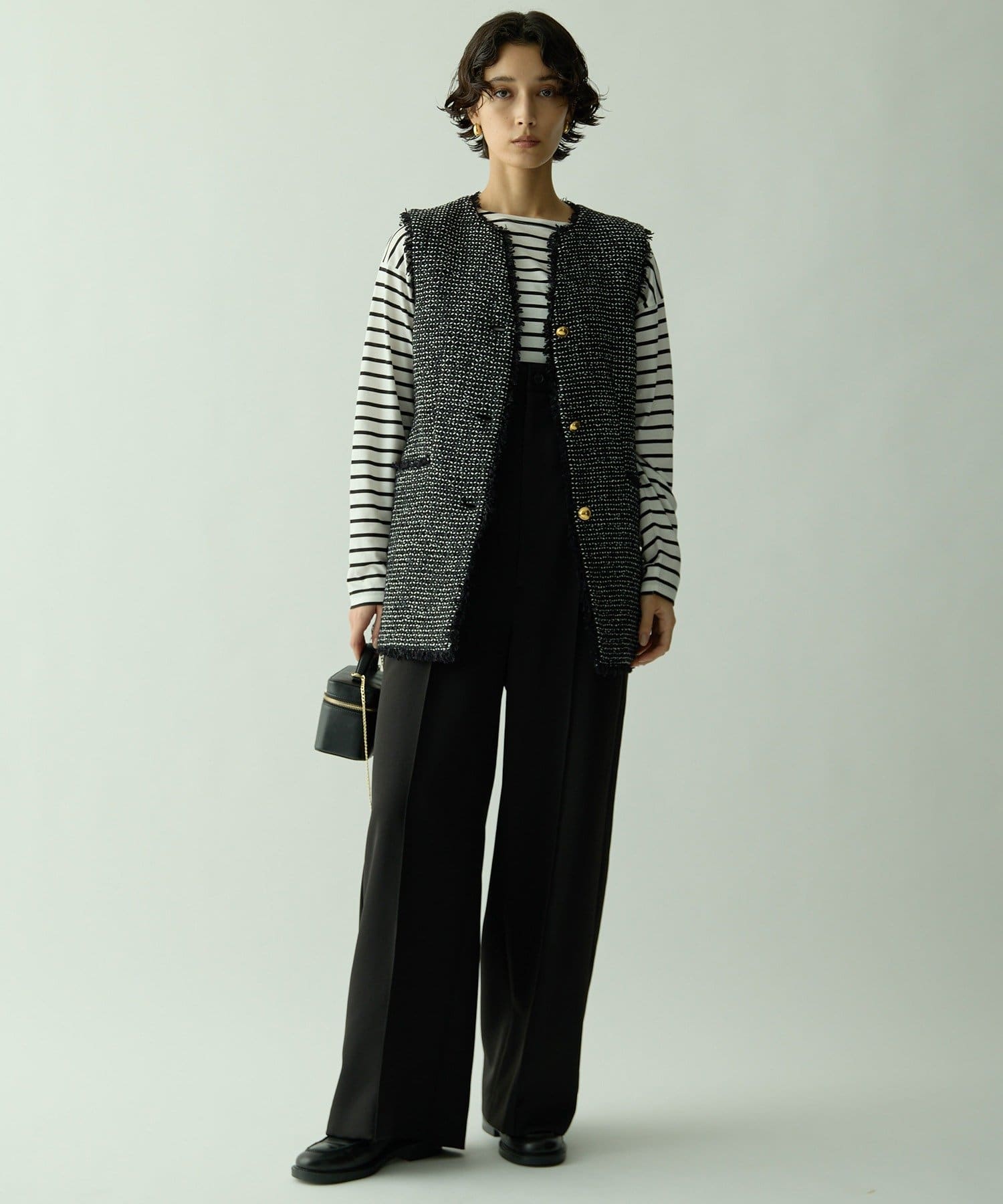 ■横に開いたボートネックがカジュアル感を抑えて女性らしさをプラス。