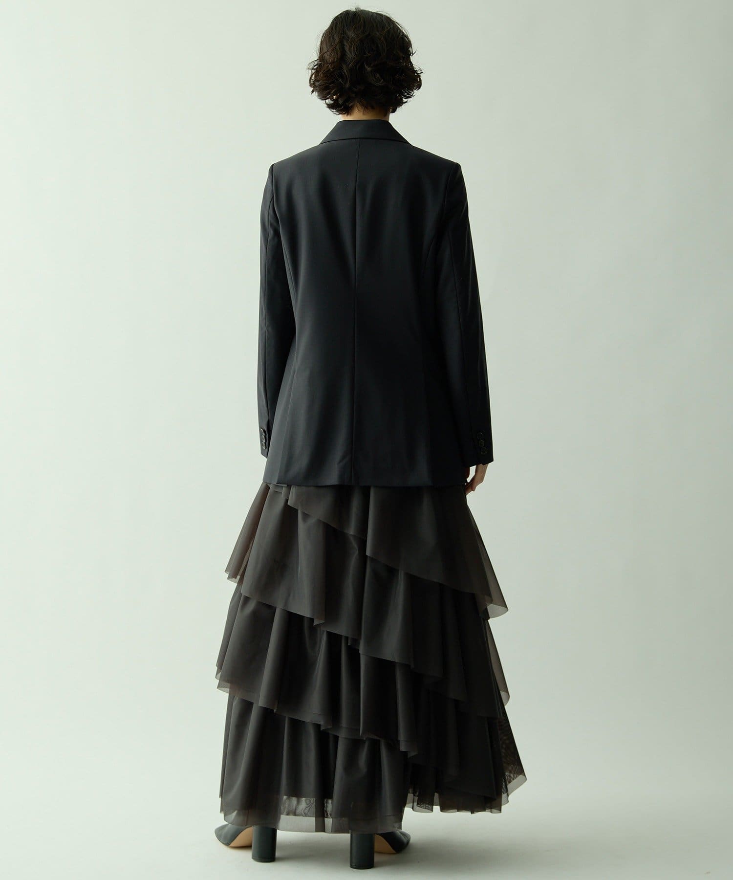 ■後ろはサイドベンツを入れることでボトムシルエットを選ばず、エレガントなムードをプラス。