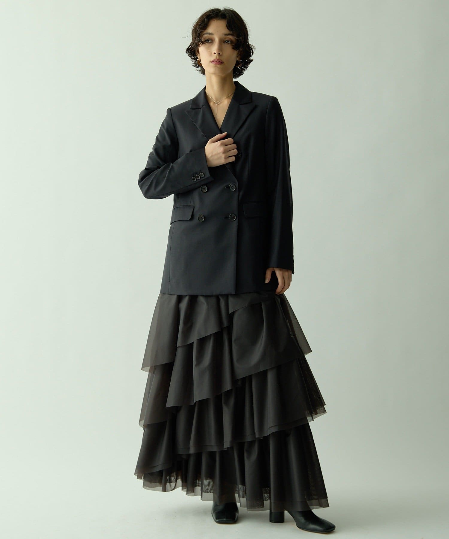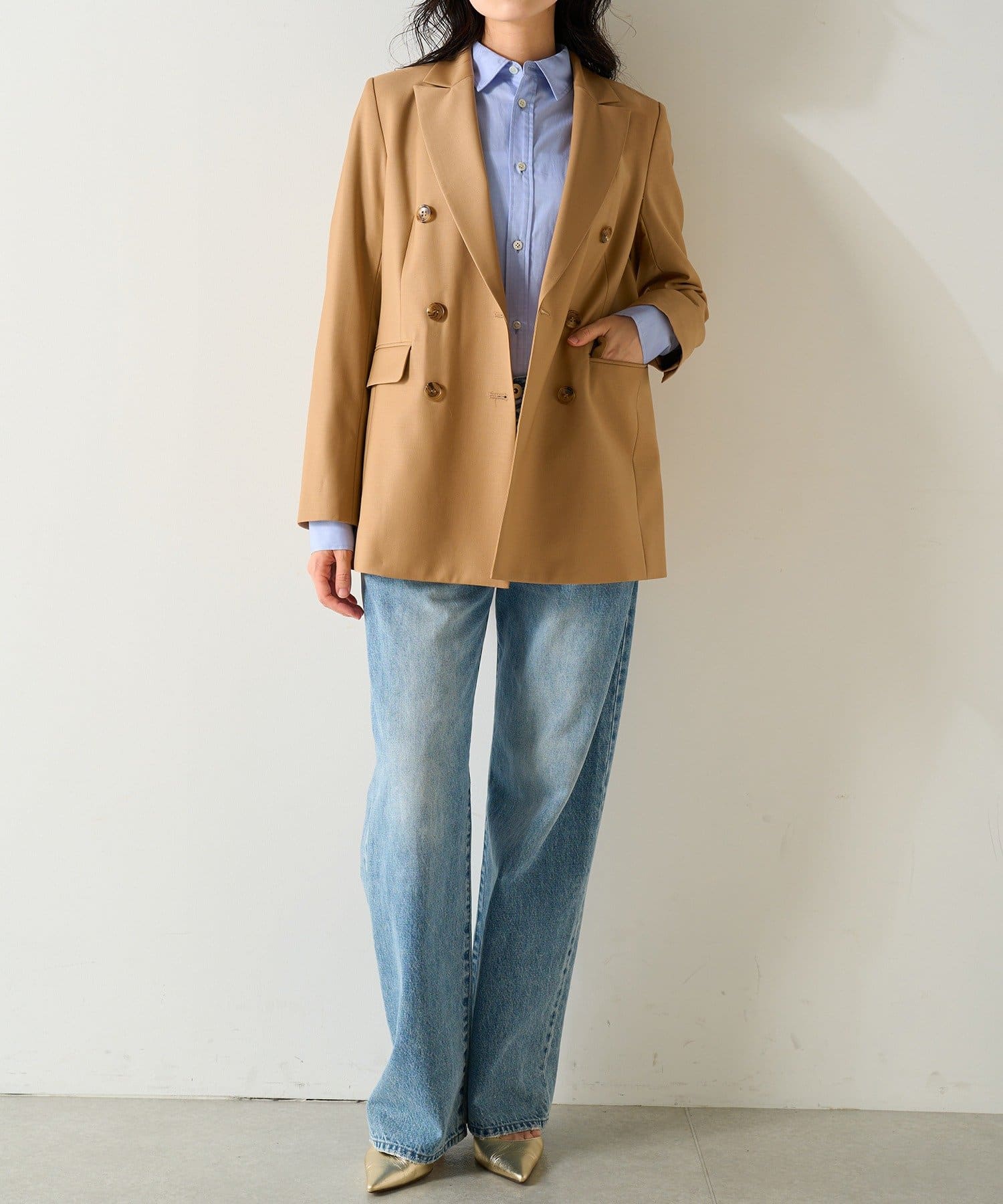 ■クラシカルな佇まいのピークドラペルダブルジャケット。