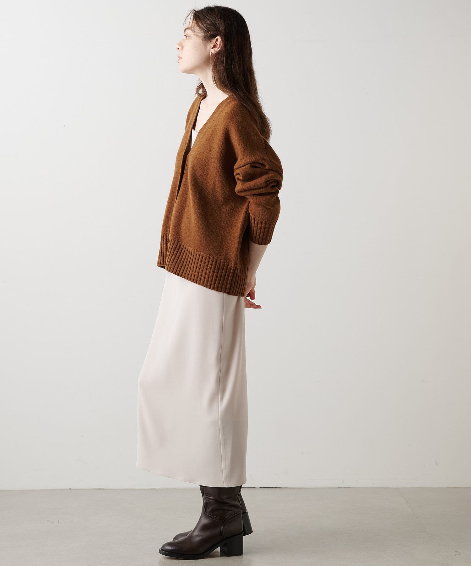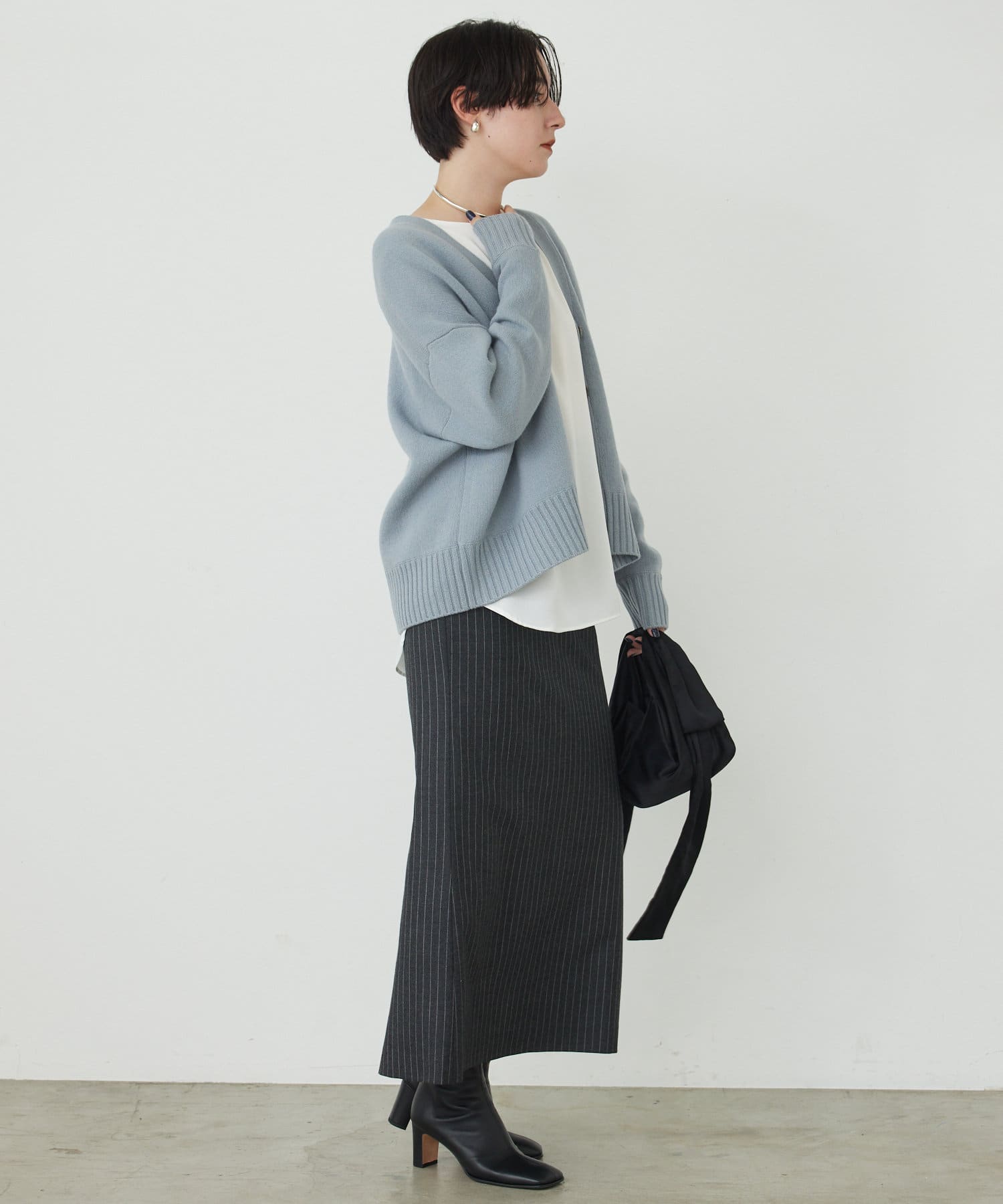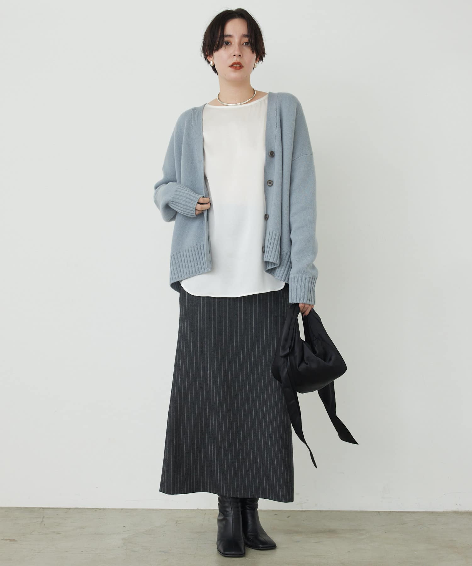 ■腰周りをカバーしつつバランス良く見える、軽くヒップにかかる着丈もポイント。