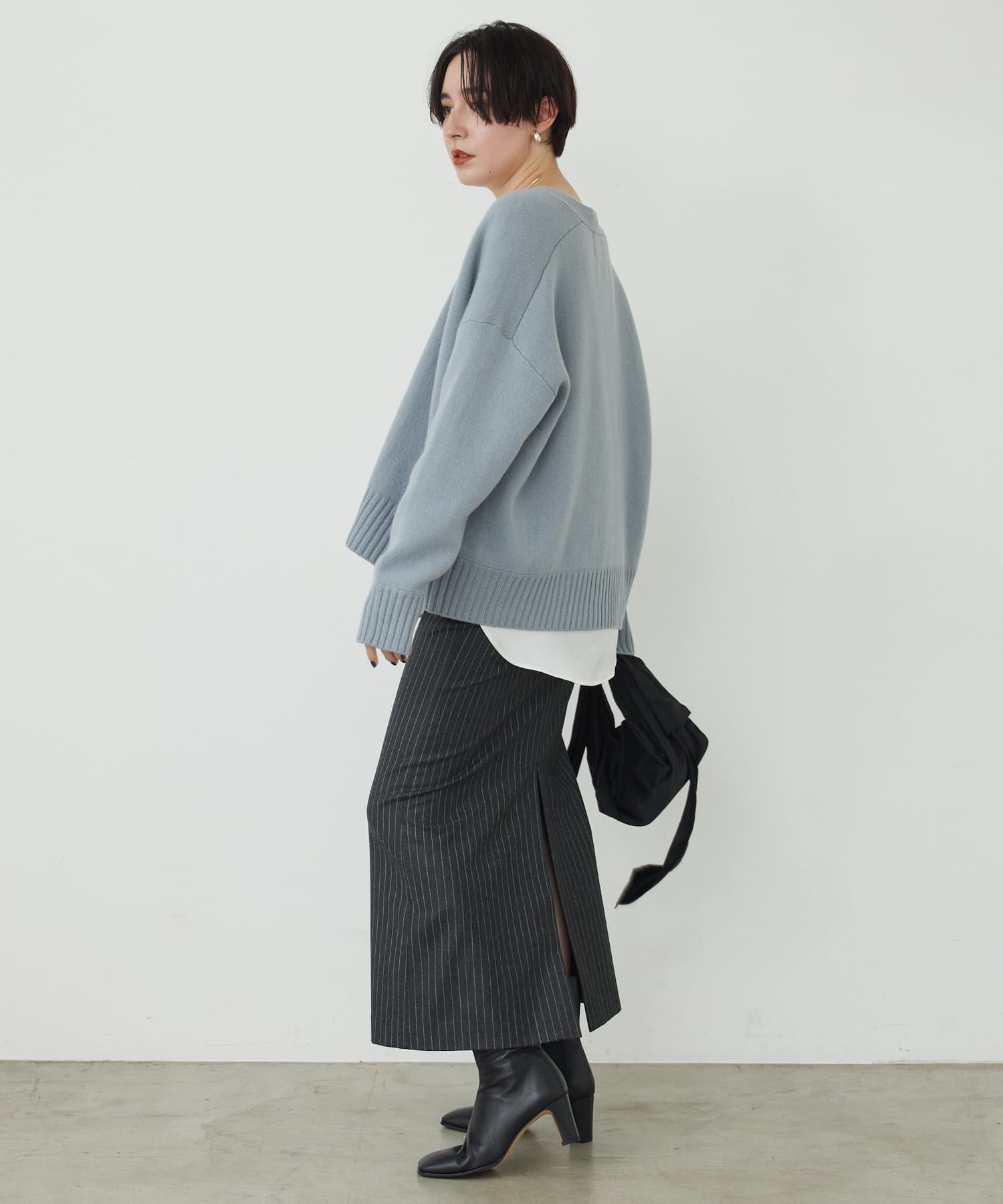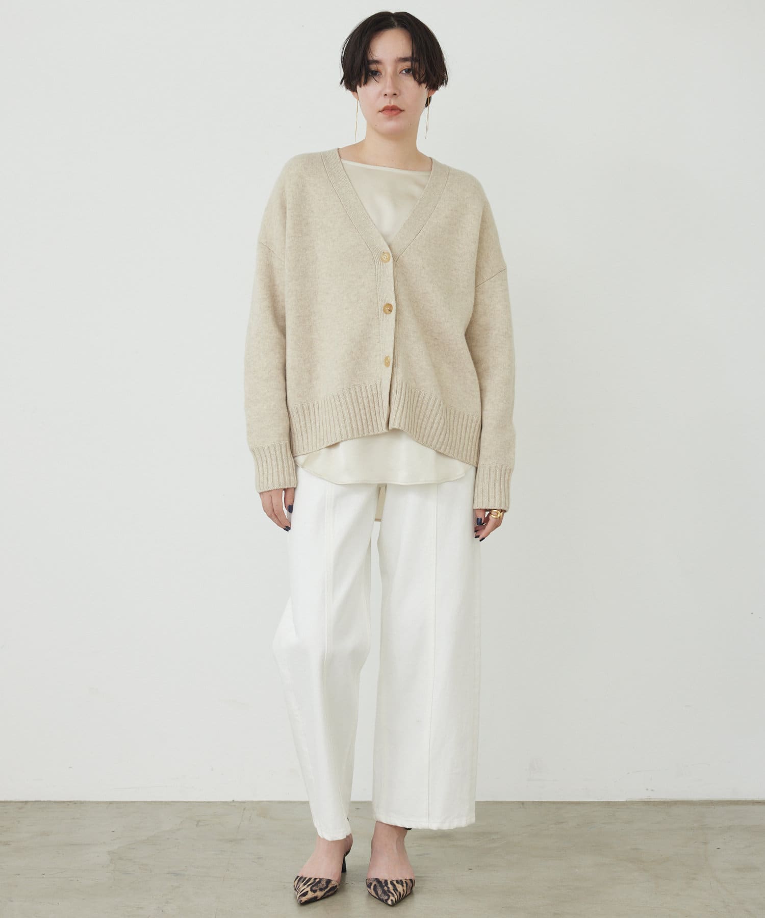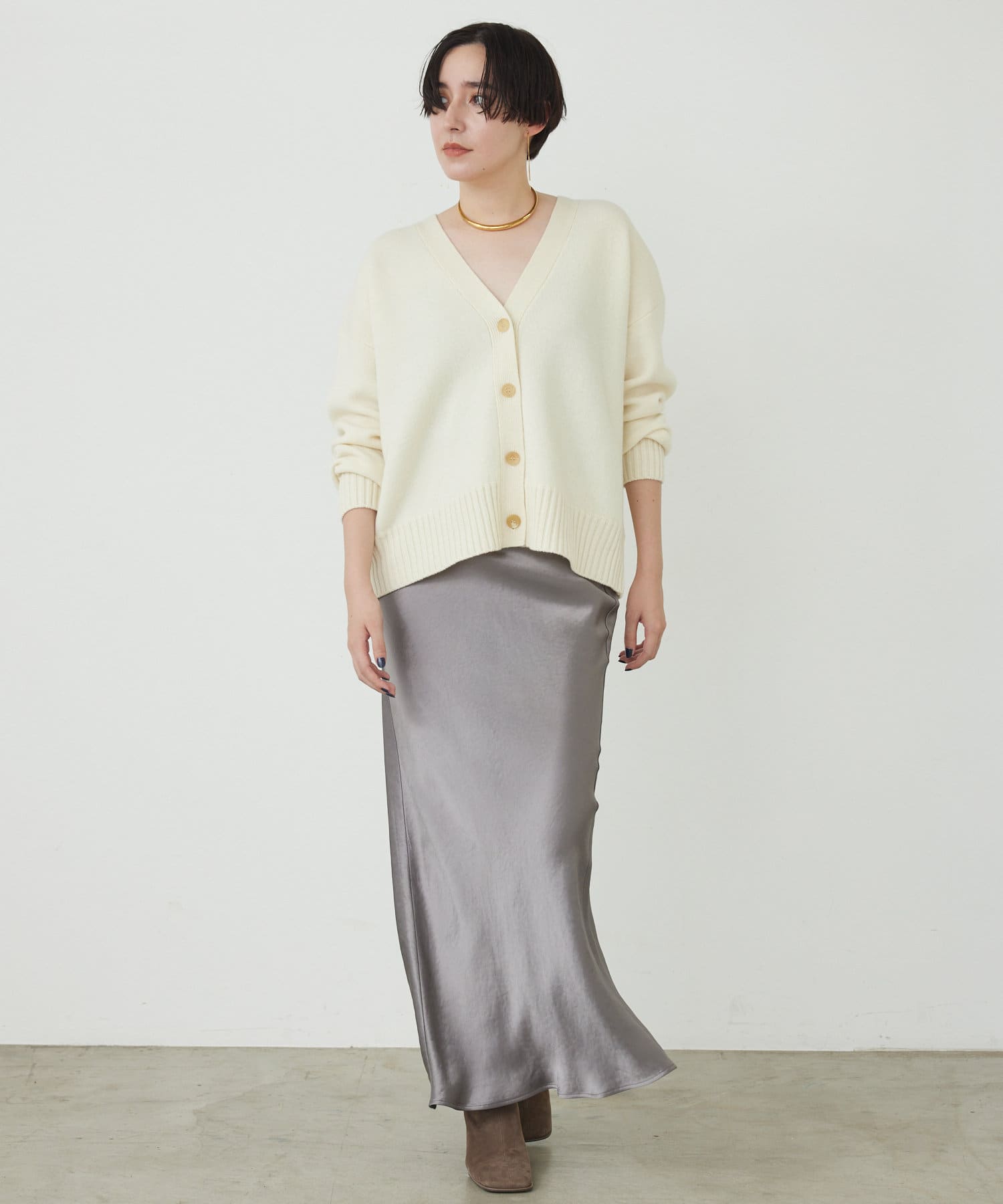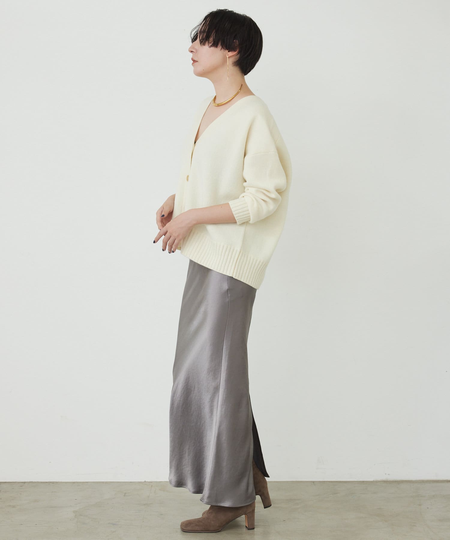 ■腰周りをカバーしつつバランス良く見える、軽くヒップにかかる着丈もポイント。