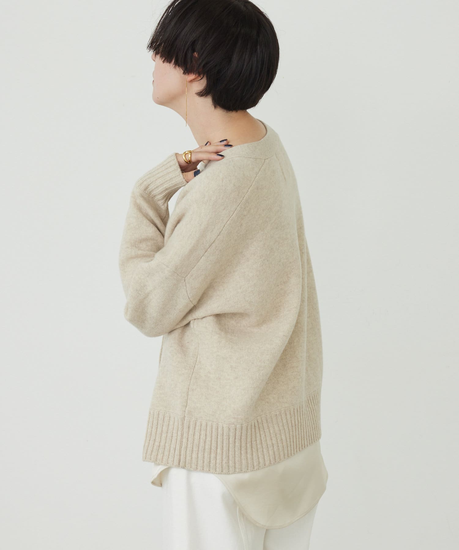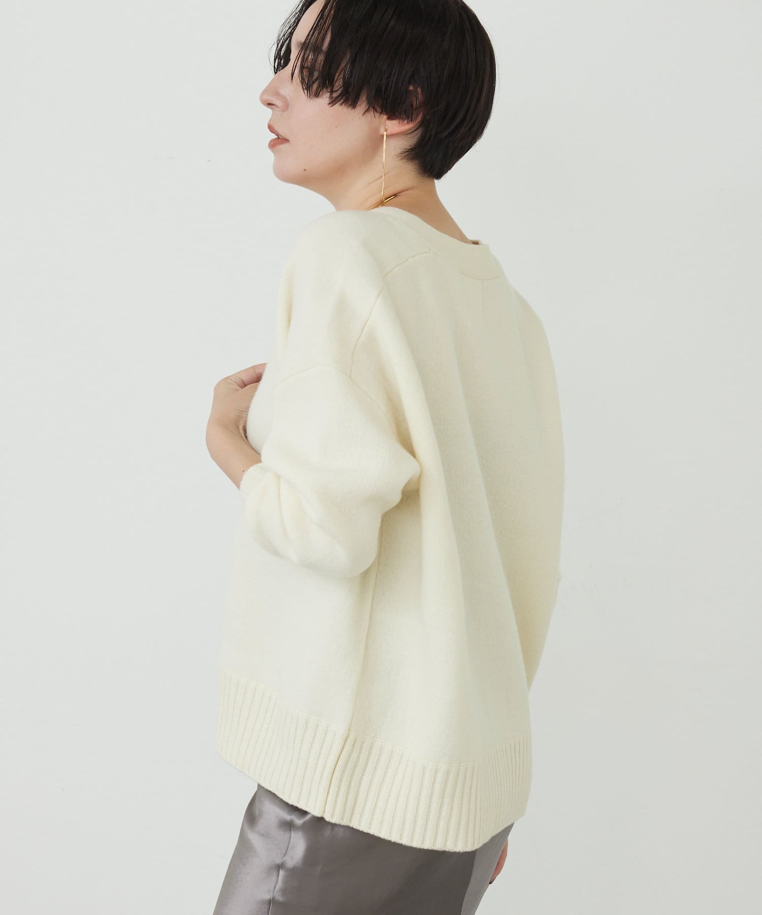 ■編地は接結編みにすることで立体感が生まれ、カジュアルながらも大人の定番ニットに。