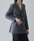 ■クラシカルな佇まいのピークドラペルダブルジャケット。