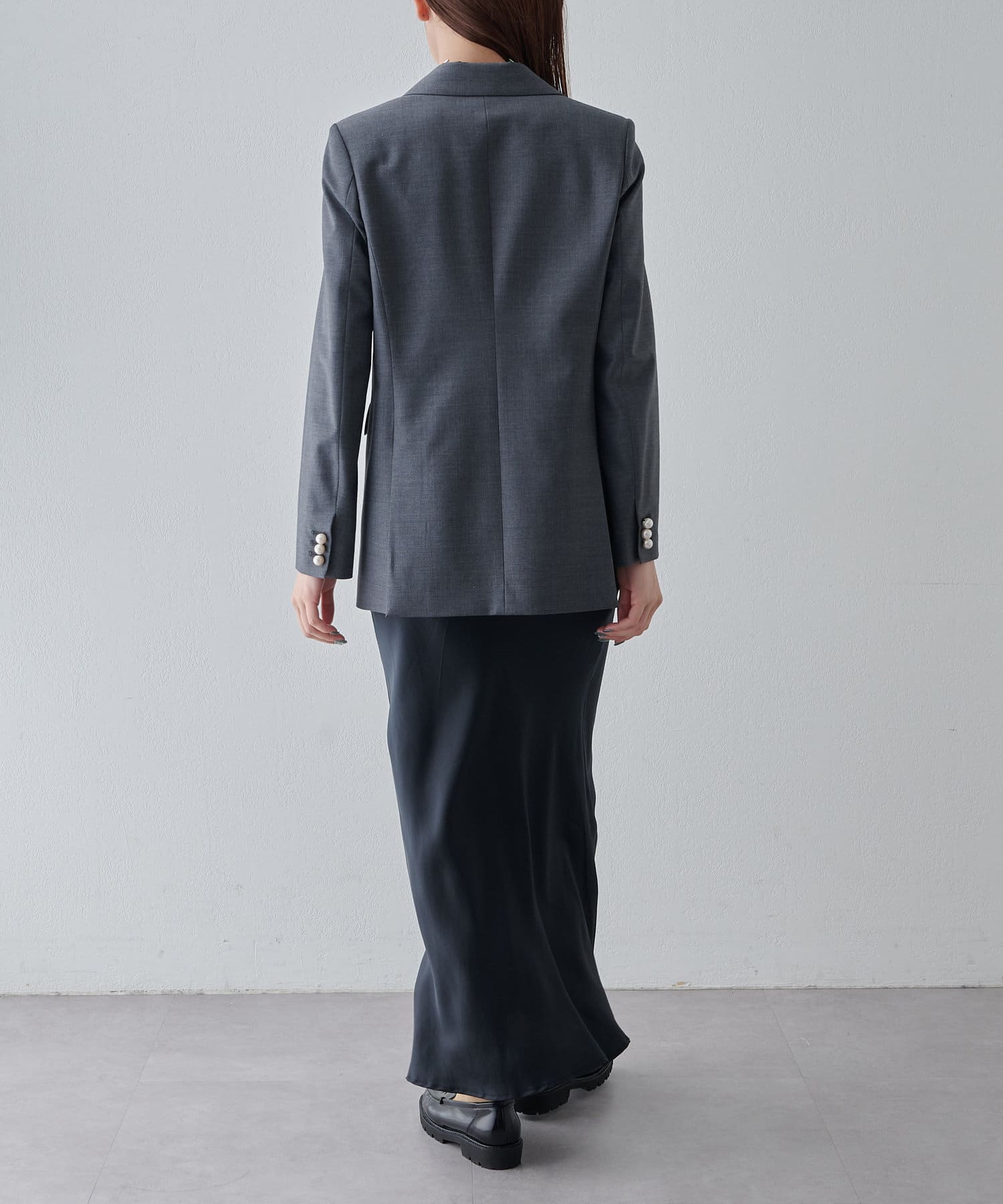 ■後ろはサイドベンツを入れることでボトムシルエットを選ばず、エレガントなムードをプラス。