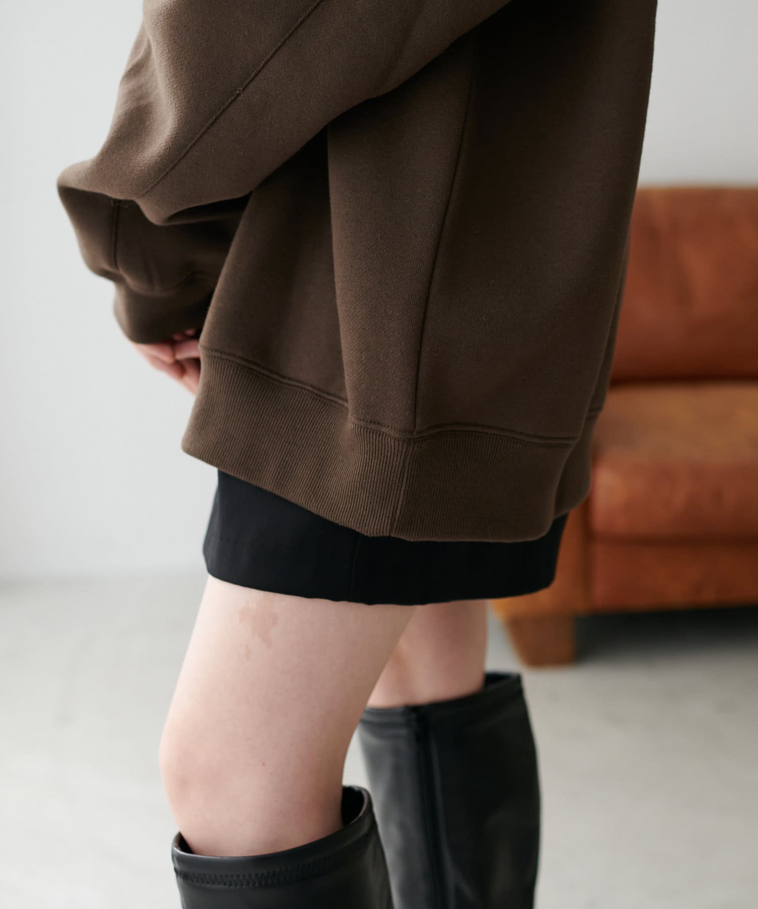 購入場所:パルクローゼットダボッとしたシルエットのスウェットが欲しくて買いました。着てみると全体的にゆったりお尻もすっぽり隠れました。裏起毛で温かく着れそうです。