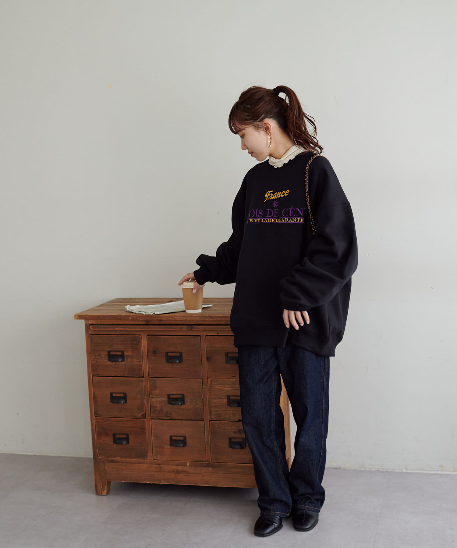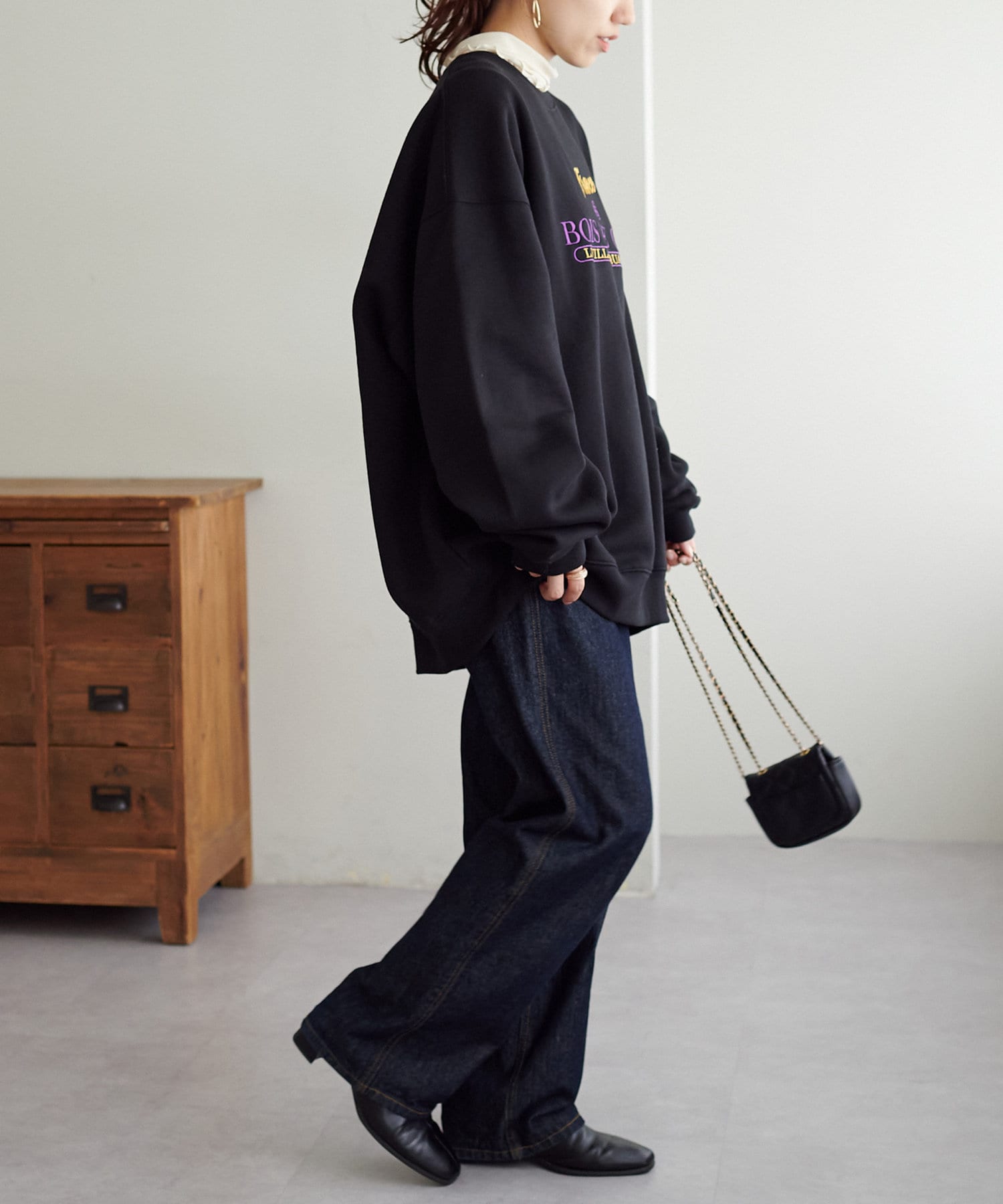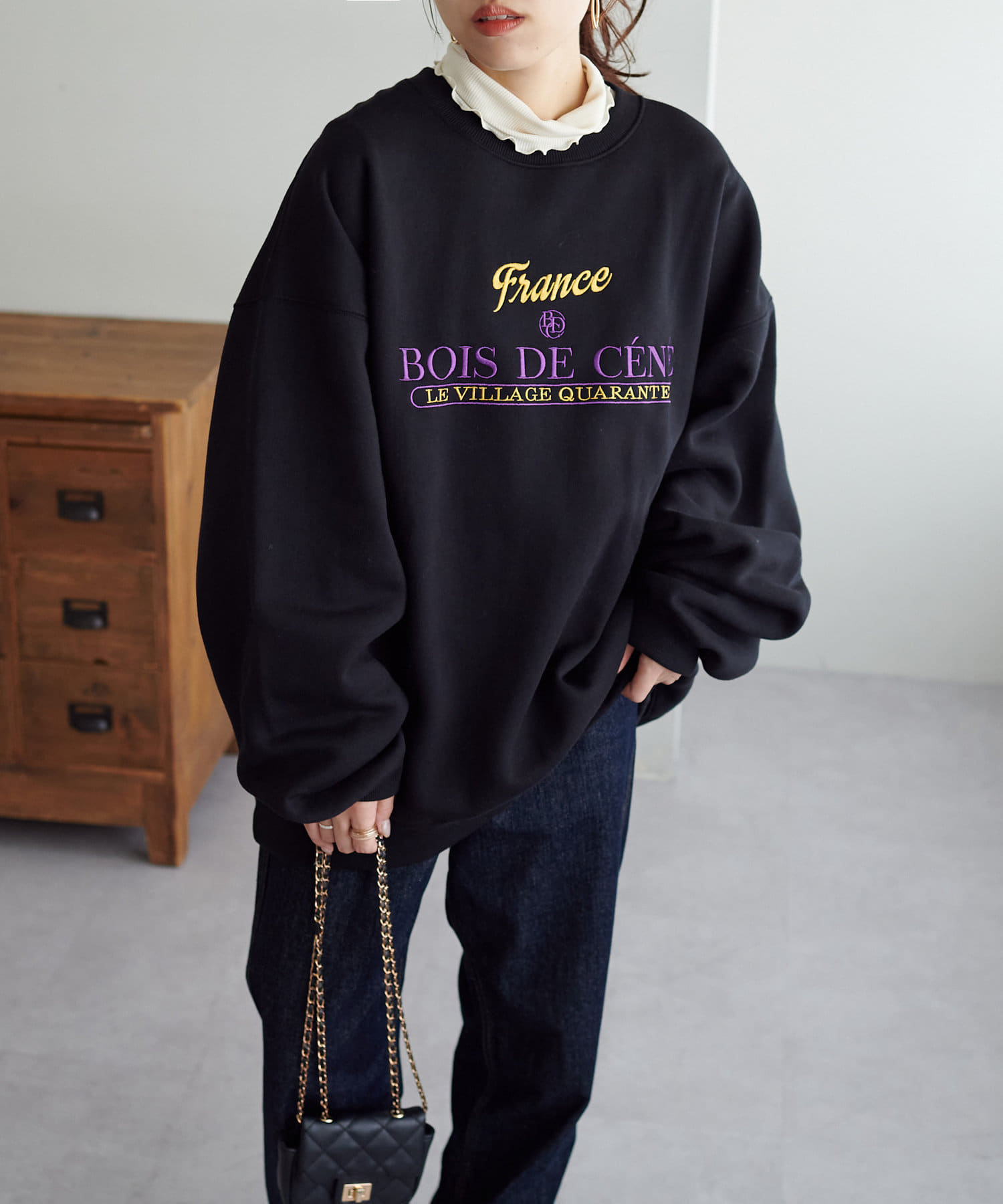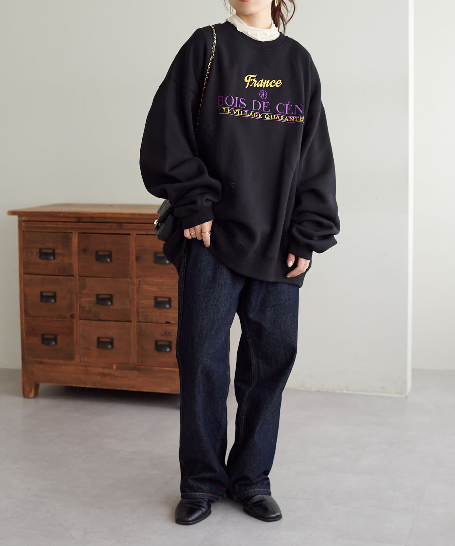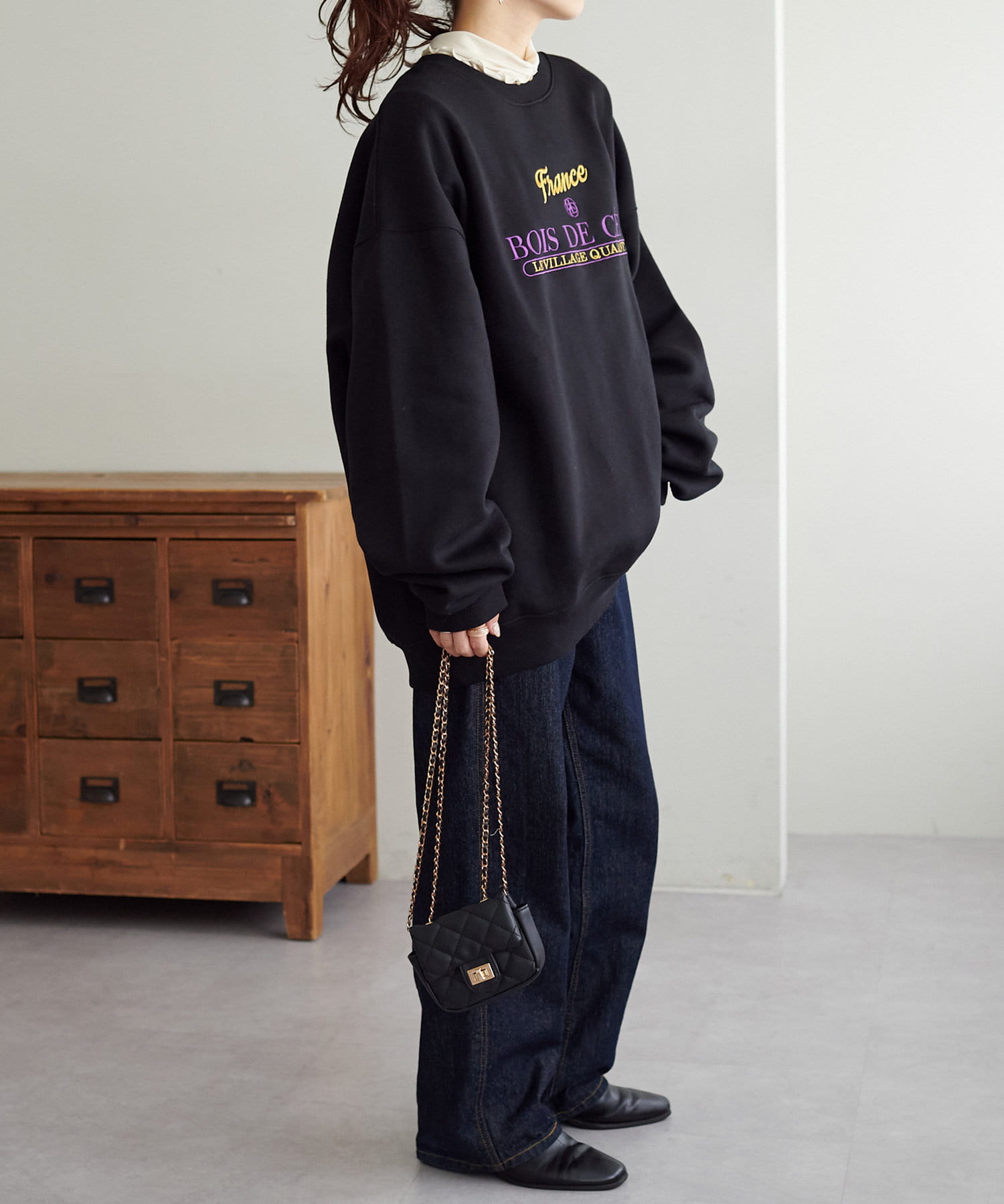購入場所:パルクローゼットユニセックスなのでかなり大きめかなあと思いましたがゆったりと着れるし、カラーのあるインナーと合わせても可愛いです。フロントの刺繍の3色の色味も気に入っています。パンツ、スカートどちらにも合うのでシーンに分けてこの秋冬、大活躍しそうです!