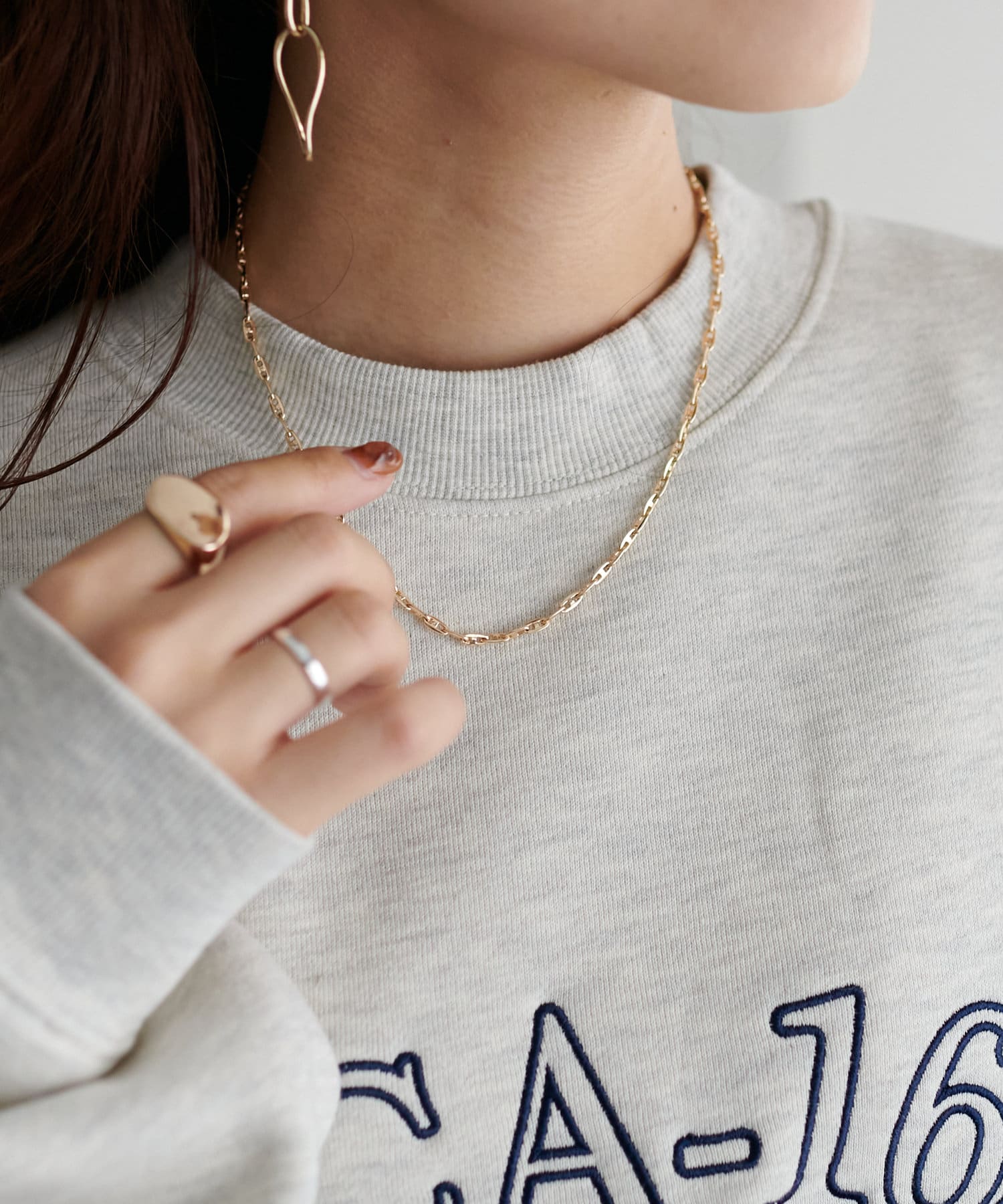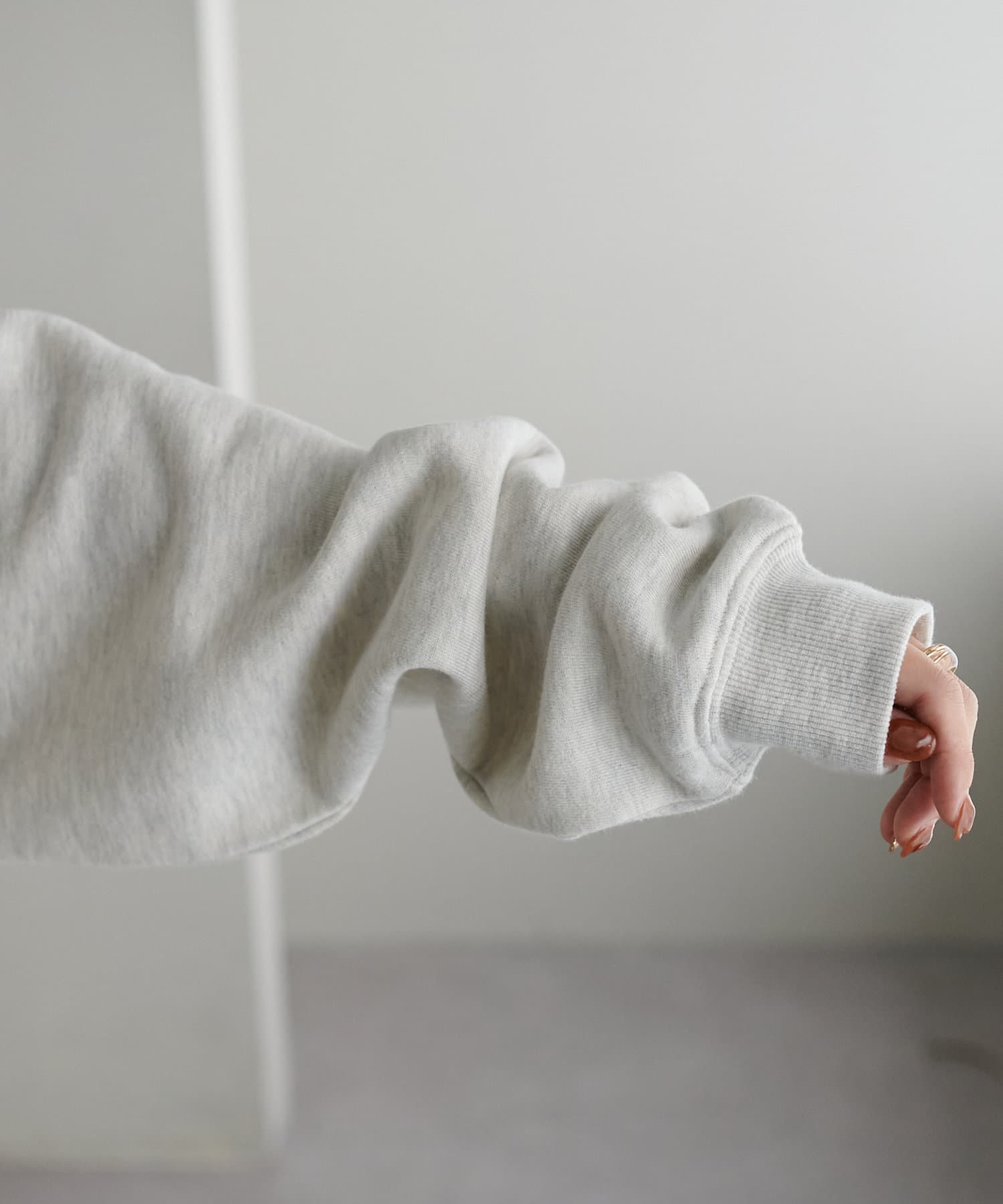 購入場所:パルクローゼット首元が詰まってるタイプのスウェットなので、髪をアップにしてのコーデが最高に可愛いです!サイズ感もゆったりしていて、裏起毛なので重宝しています。
