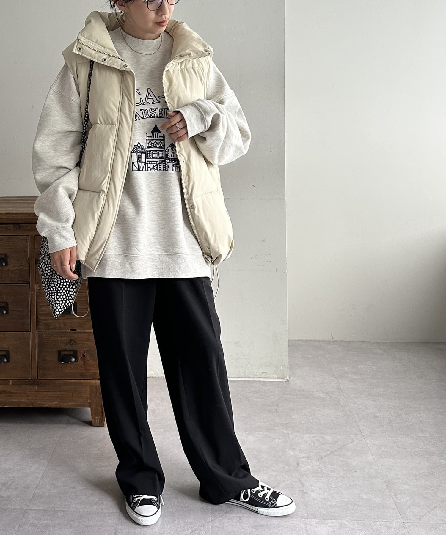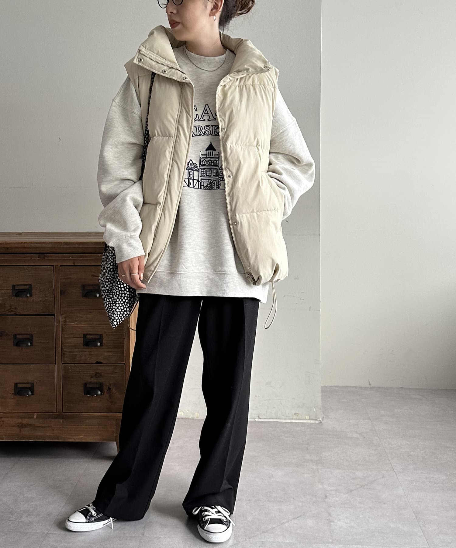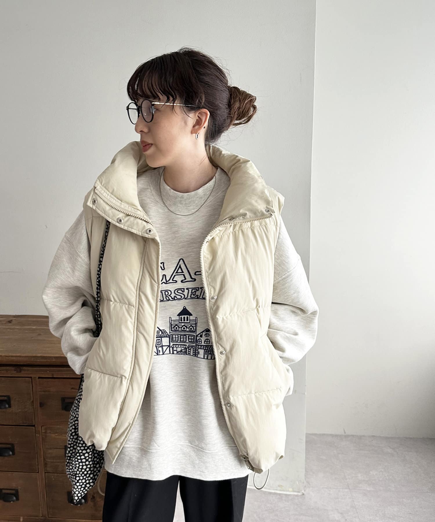 ユニセックスでも着用可能な程よいオーバーサイズで、ハイネックやシャツアイテムとのレイヤードコーデもしやすいサイズ感なのも魅力の一つです♪