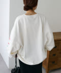 購入場所:パルクローゼットロゴと袖のプリントがポイントで可愛く一目惚れで購入しました^ ^レイヤードにタートルネックやシャツを合わせて好評です‼︎