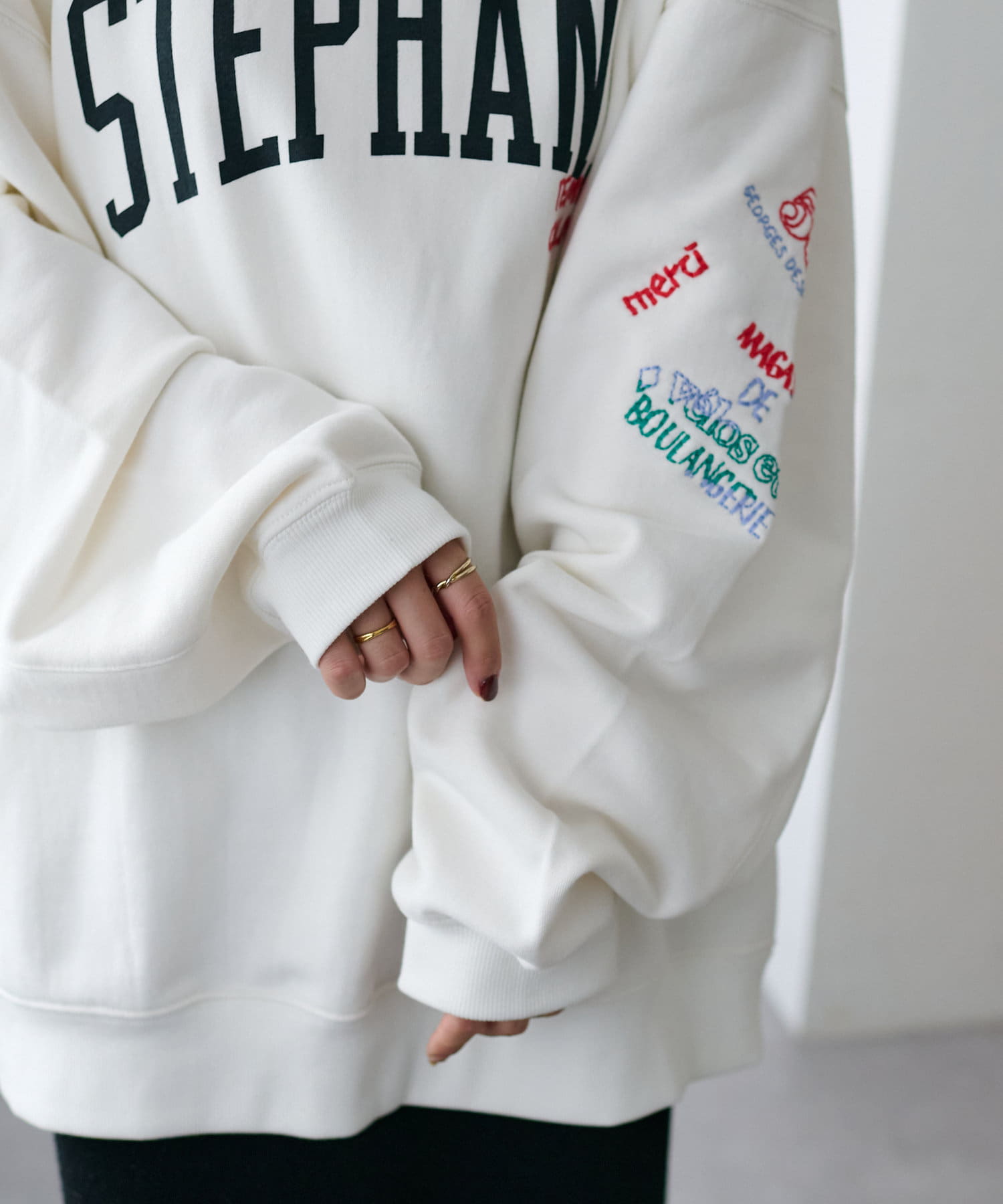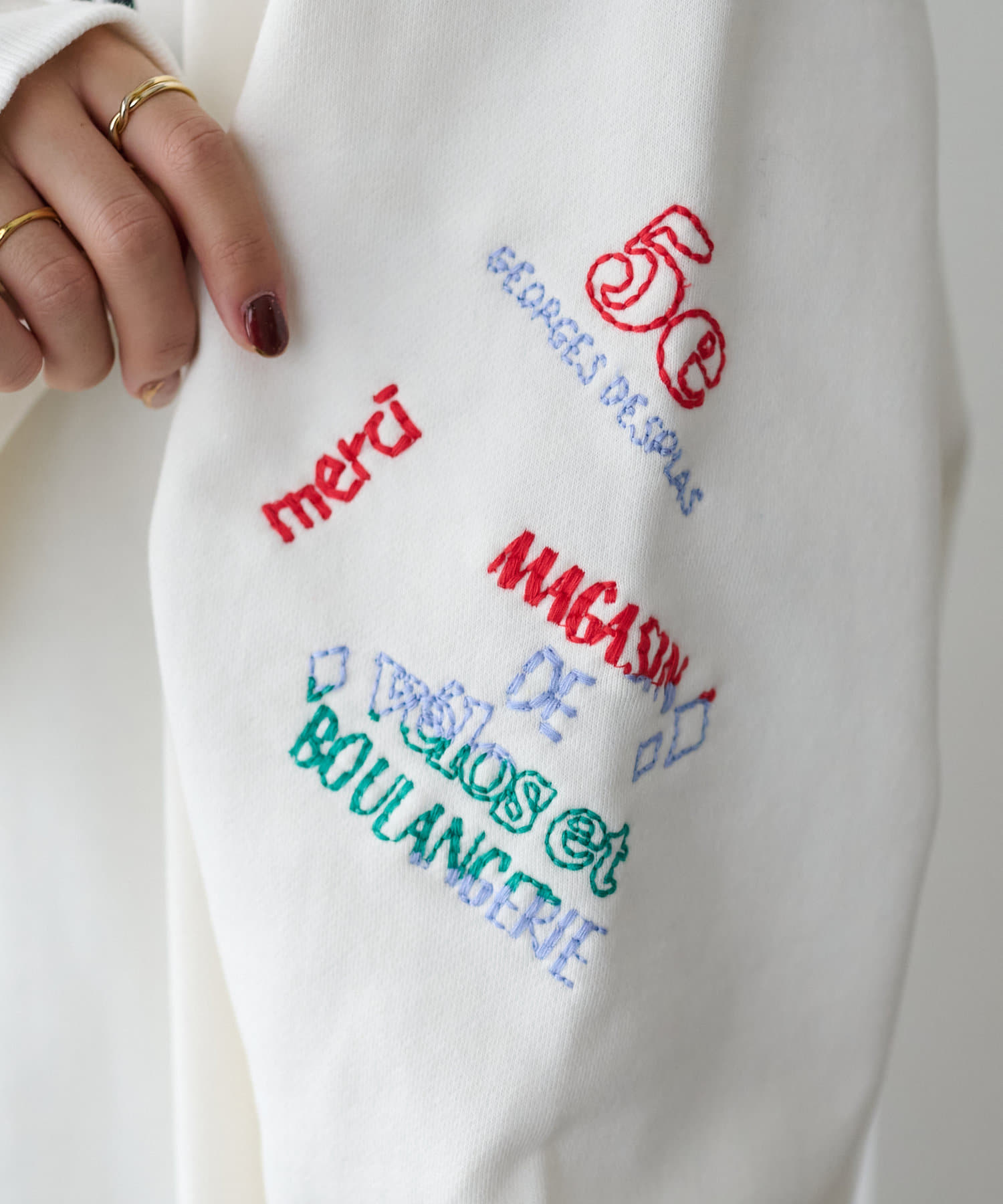 様々なカラー糸で縫製された細かな刺繍がポイントのリメイクスウェット。
