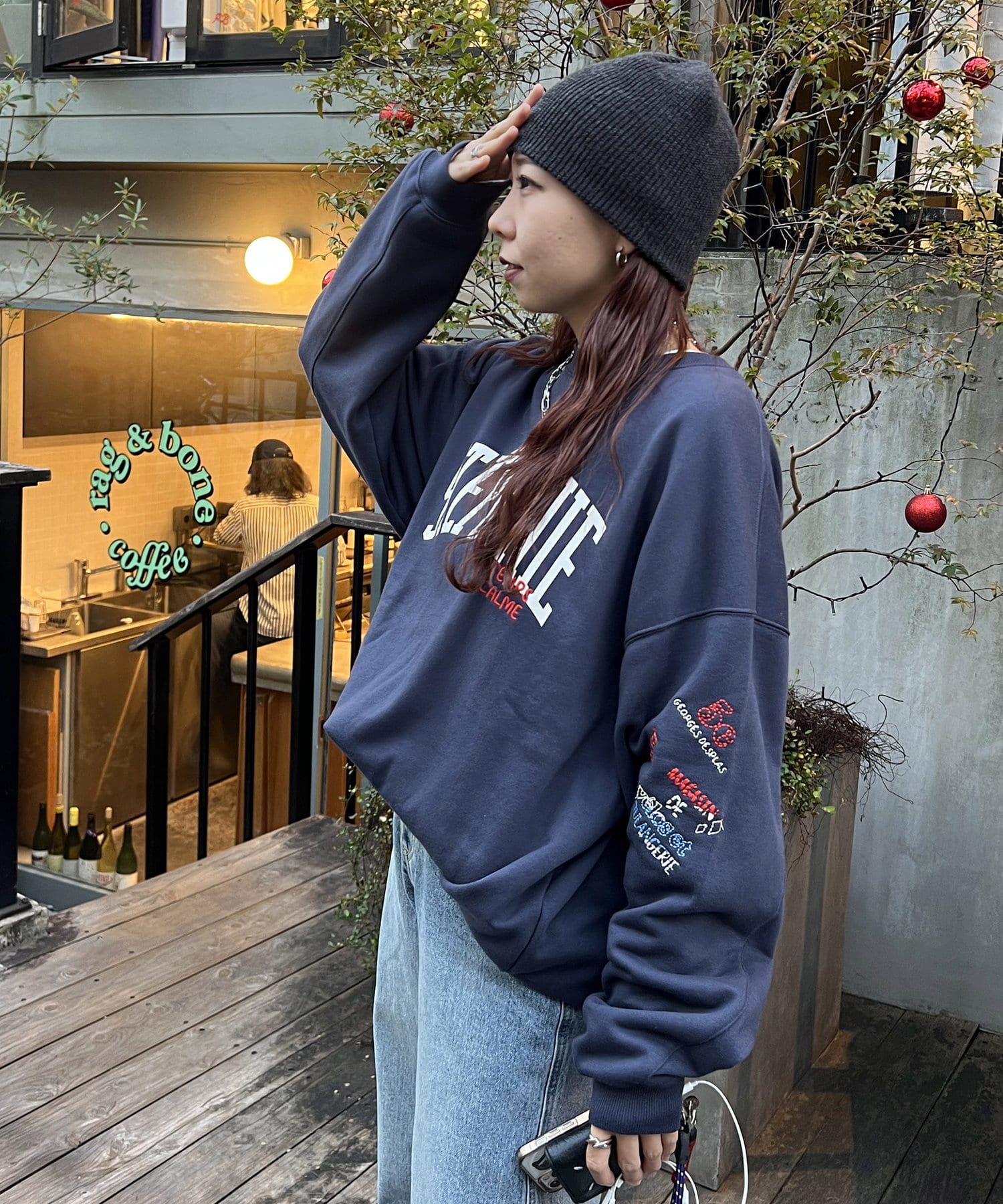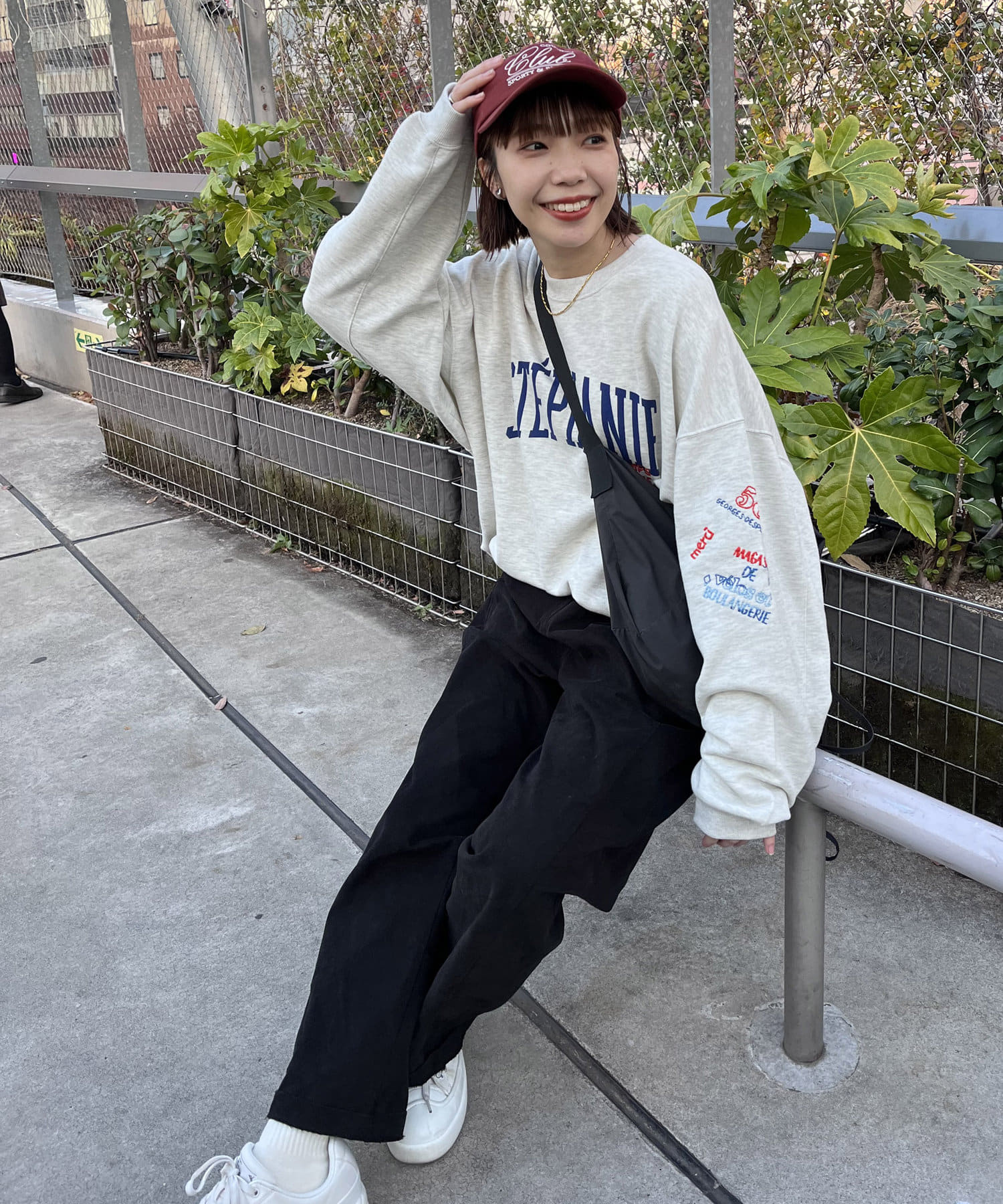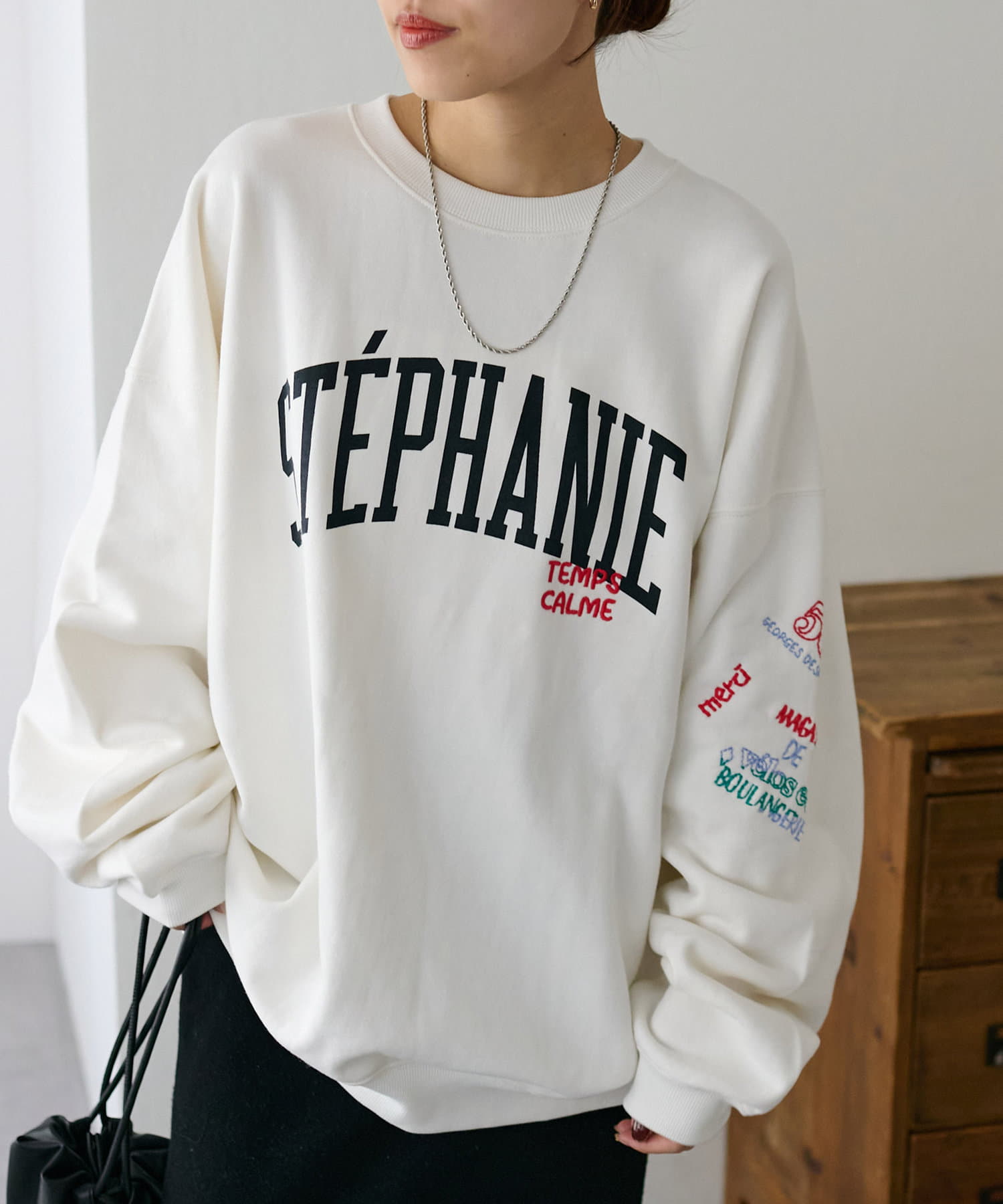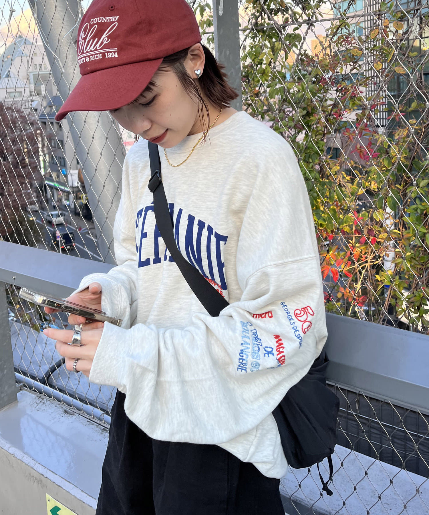 ほどよくワンポイントになるデザインが1枚着でもこなれ感のある着こなしに◎冬物のスウェットほど厚みはなく裏起毛ではない為、暑がりさんも春先にもぴったりのアイテムです。ユニセックスなのでペアルックでの着用もおすすめです♪